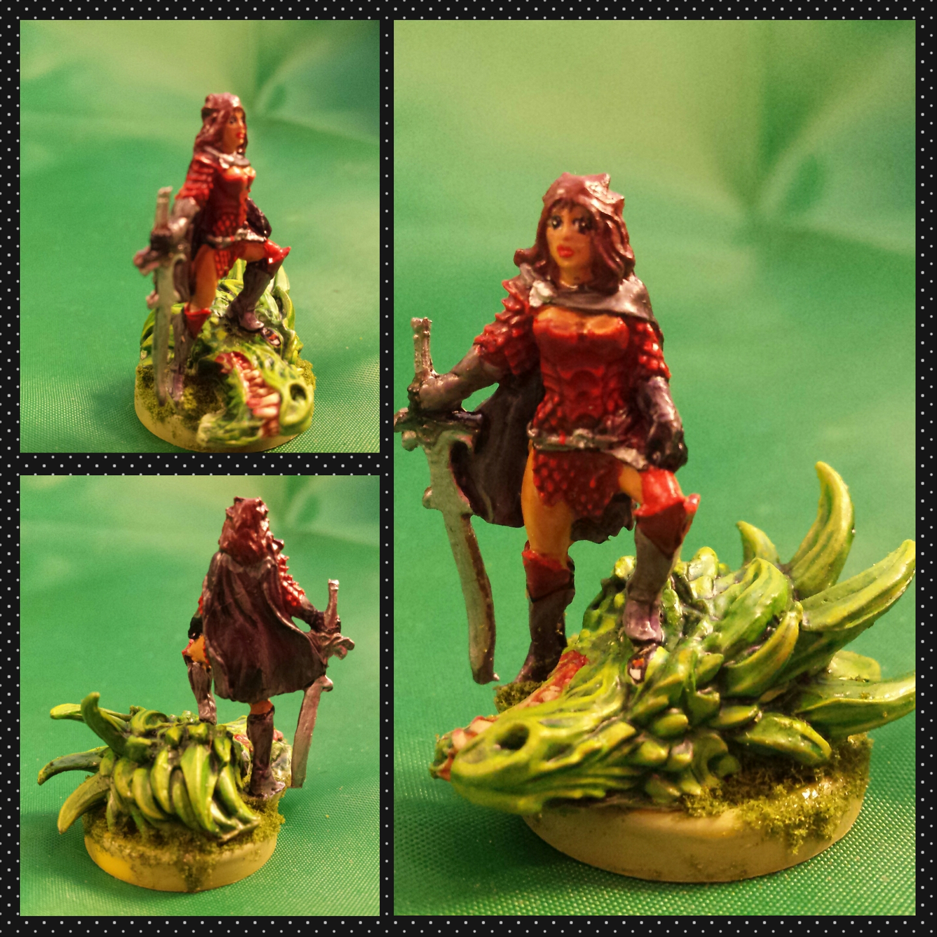 This is my dragonslayer! I love her! I’m not sure what was going on with her hair. Is that a crown? Is it hair pointies? I have no idea. But I thought the Dragon came out well!
