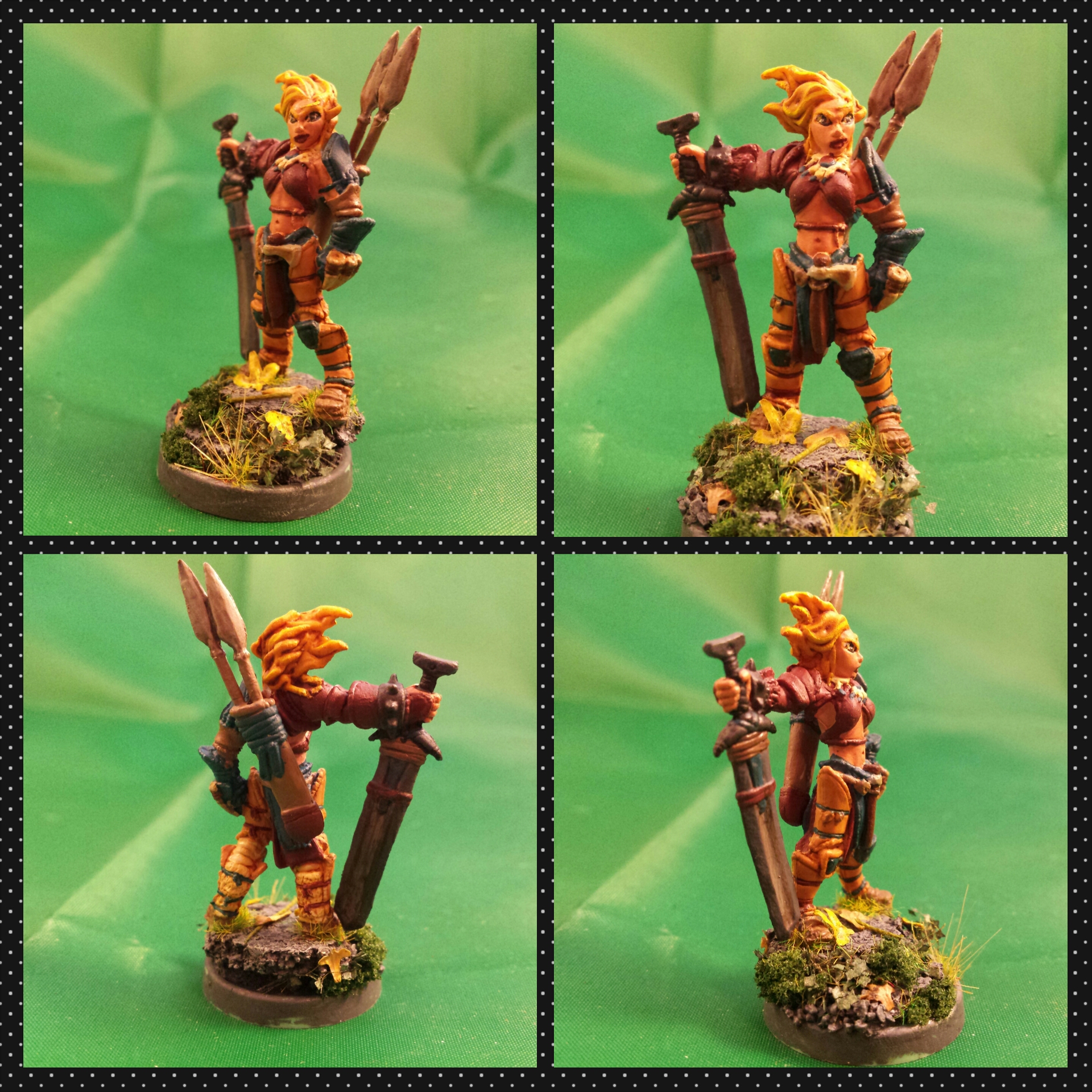 This is my barbarian, Birgitte. She is a beast on paper and on her mini. I need to work on my non-metallic metals (NMM), right now they’re just lazy. She is based on a conglomeration of cork and most of the different basing materials I have. I kind of just had a ball.