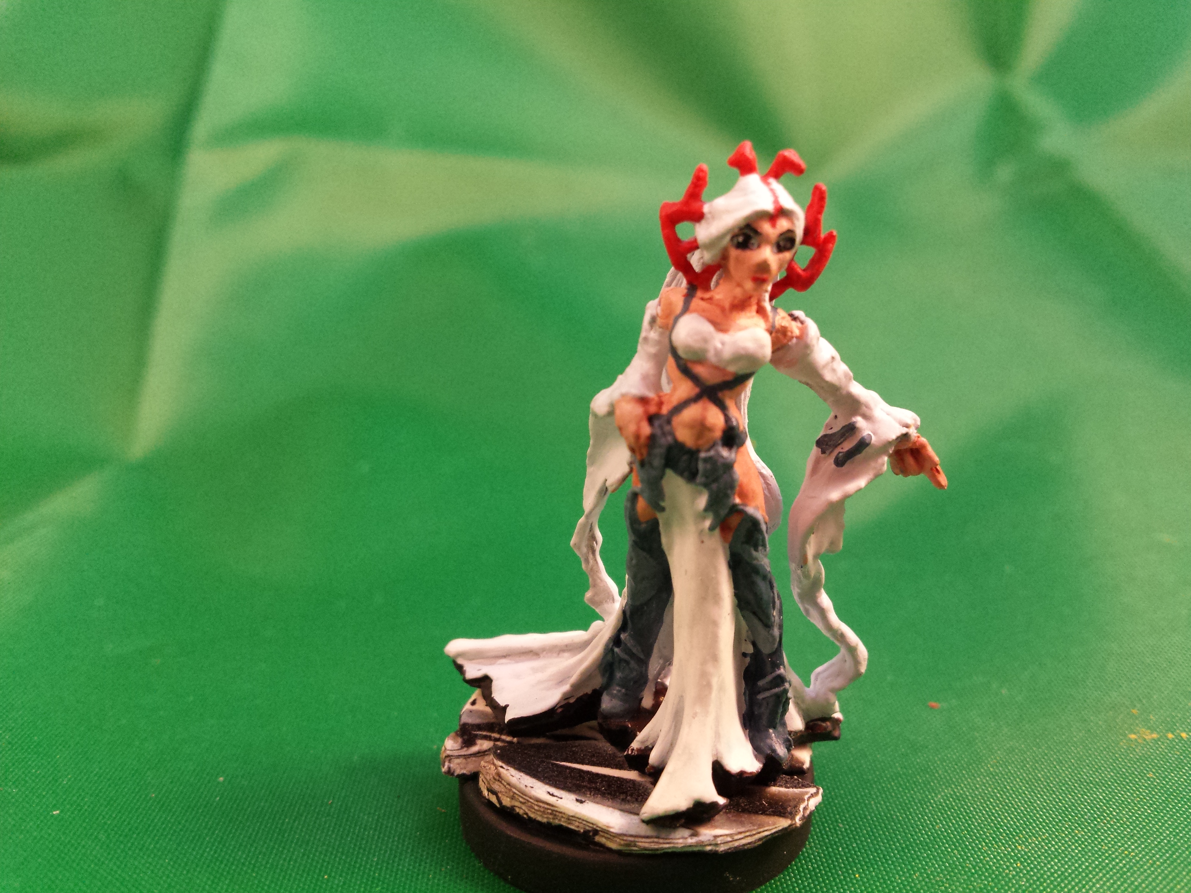 This is my wuxia-inspired, “Bride with white hair” miniature. I posted her to Miniatures Monday last week. I’ve been working on white now for a couple minis. The white here is a ‘cold white’ so it starts with the dark blue that is on her pants, and works up to white. It was an interesting process, and takes like 10 coats. I thought her anime eyes worked out particularly well.