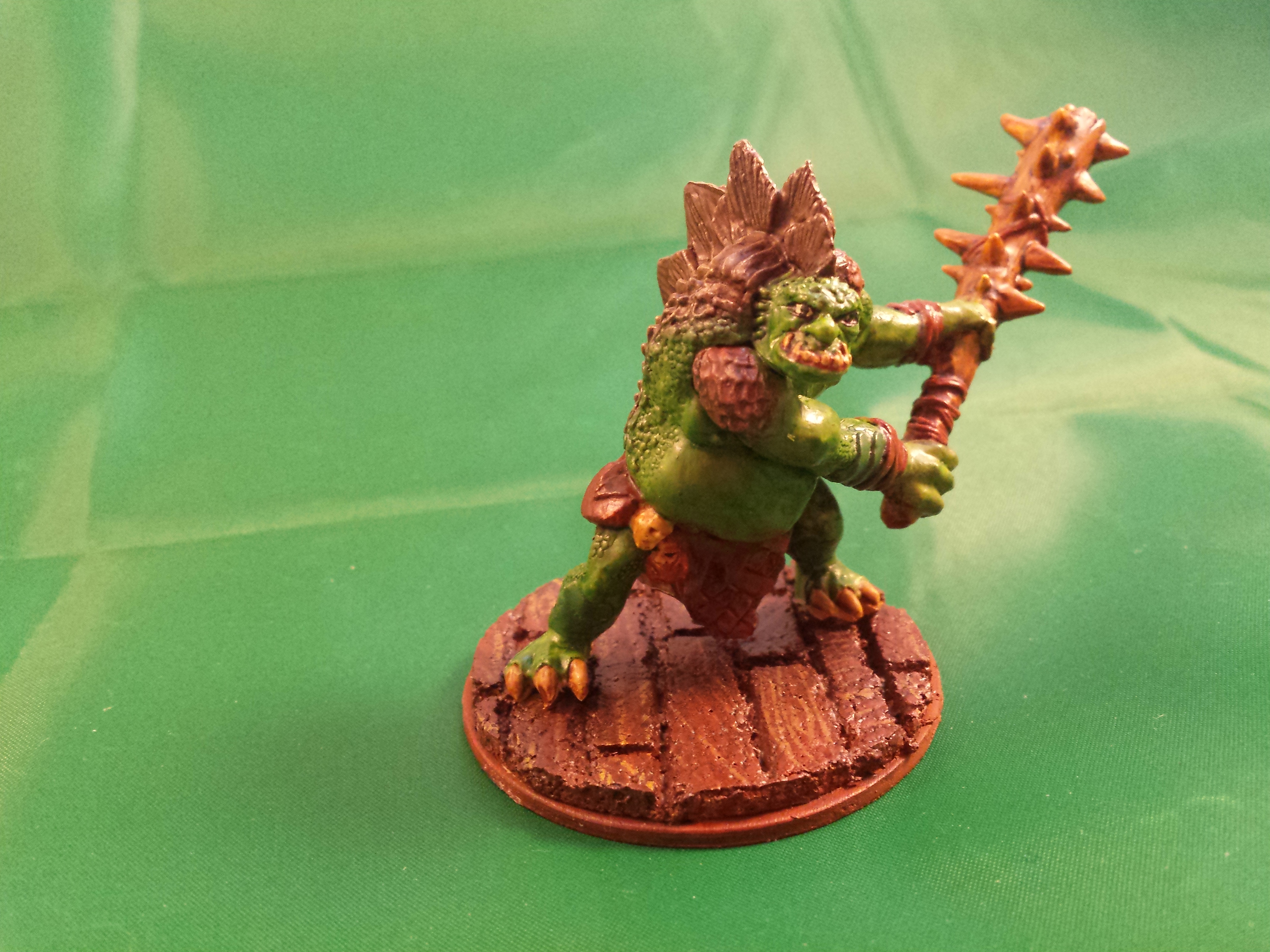 This is my Troll King! He’s a big guy, and was a great time to paint! I ended up pulling his arms off and then painted him, then reattached it. His base is a wooden disc I got from hobby lobby and cork cut and painted to look like planking. I really like doing that base. π