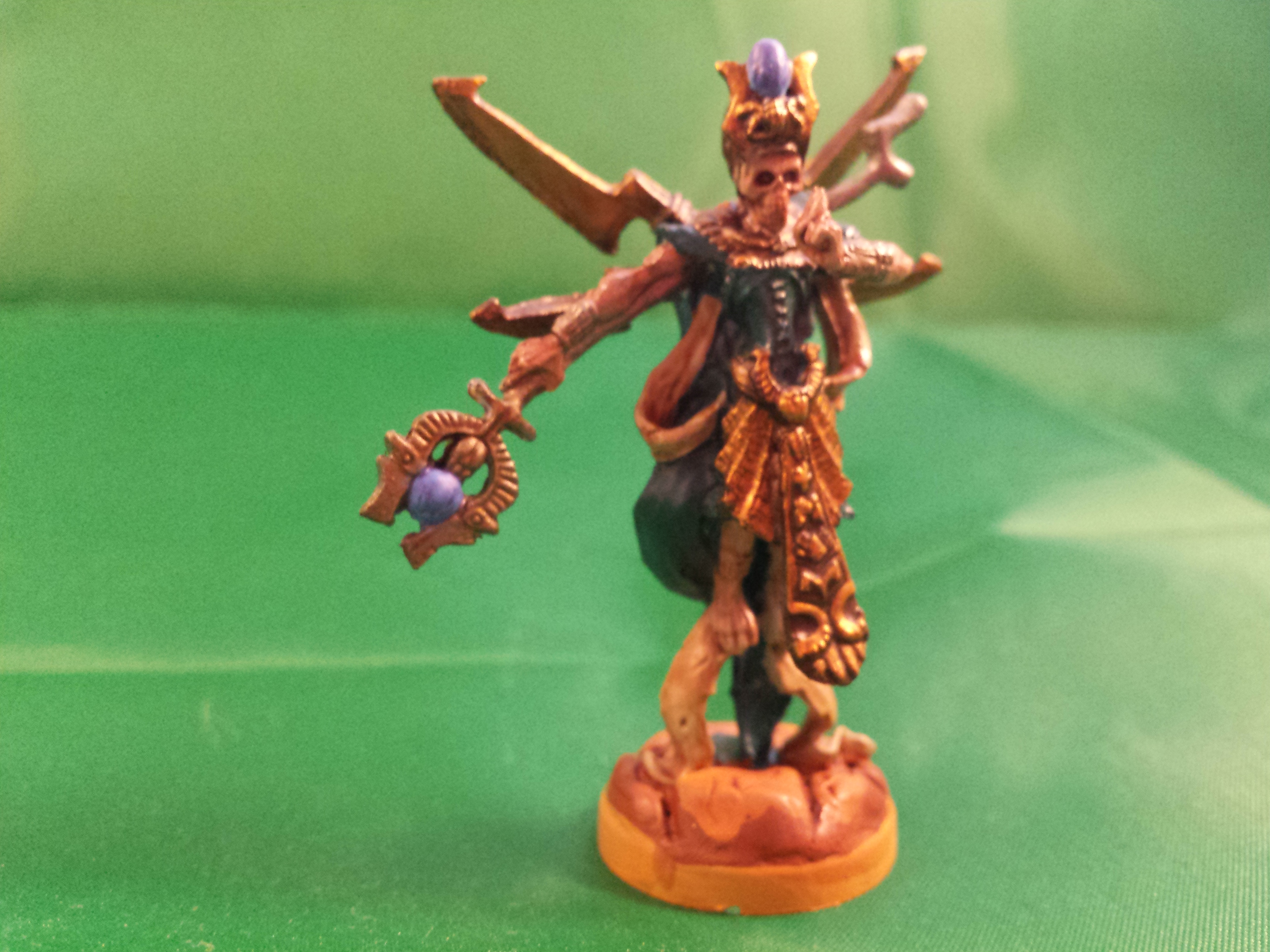 Last, but not least, this is my cool Tomb King-esque mummy Lich. He ha a scarab on his back, but I didn’t do a very good job on it… Gonna have to go back over that sometime and make it pretty. I love setting him on the table with all the other mummies I’ve painted and watching everyone freak. π