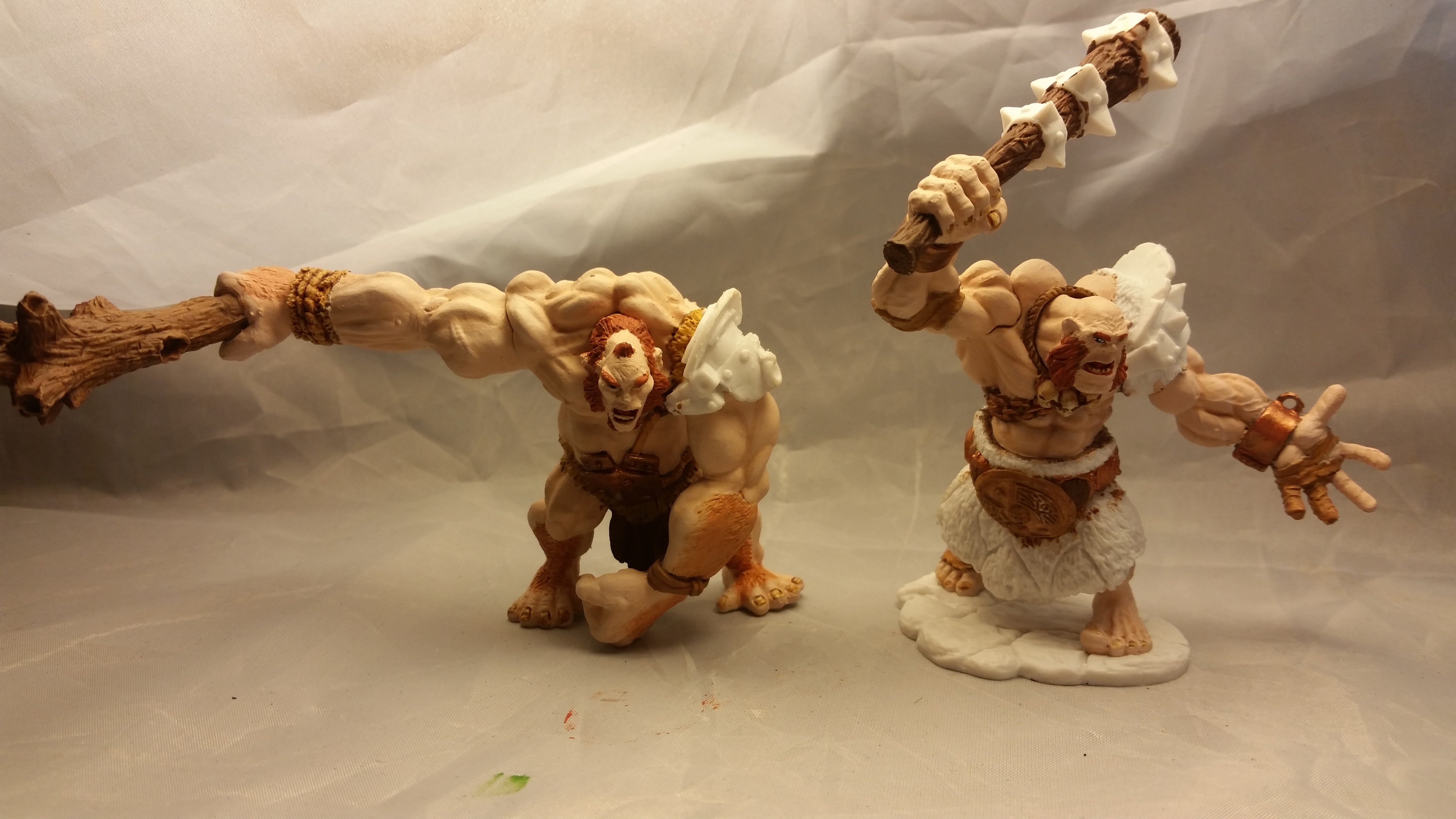 So, I’ve been working on these guys again today… I think I may have to flesh wash them, was trying to avoid it, but the Fair Skin triad just seems a little….pale? I’ve highlighted and shadowed and blended. I’m working on making them look natural, I don’t want to do the really high contrast muscles, but I do want them to pop….