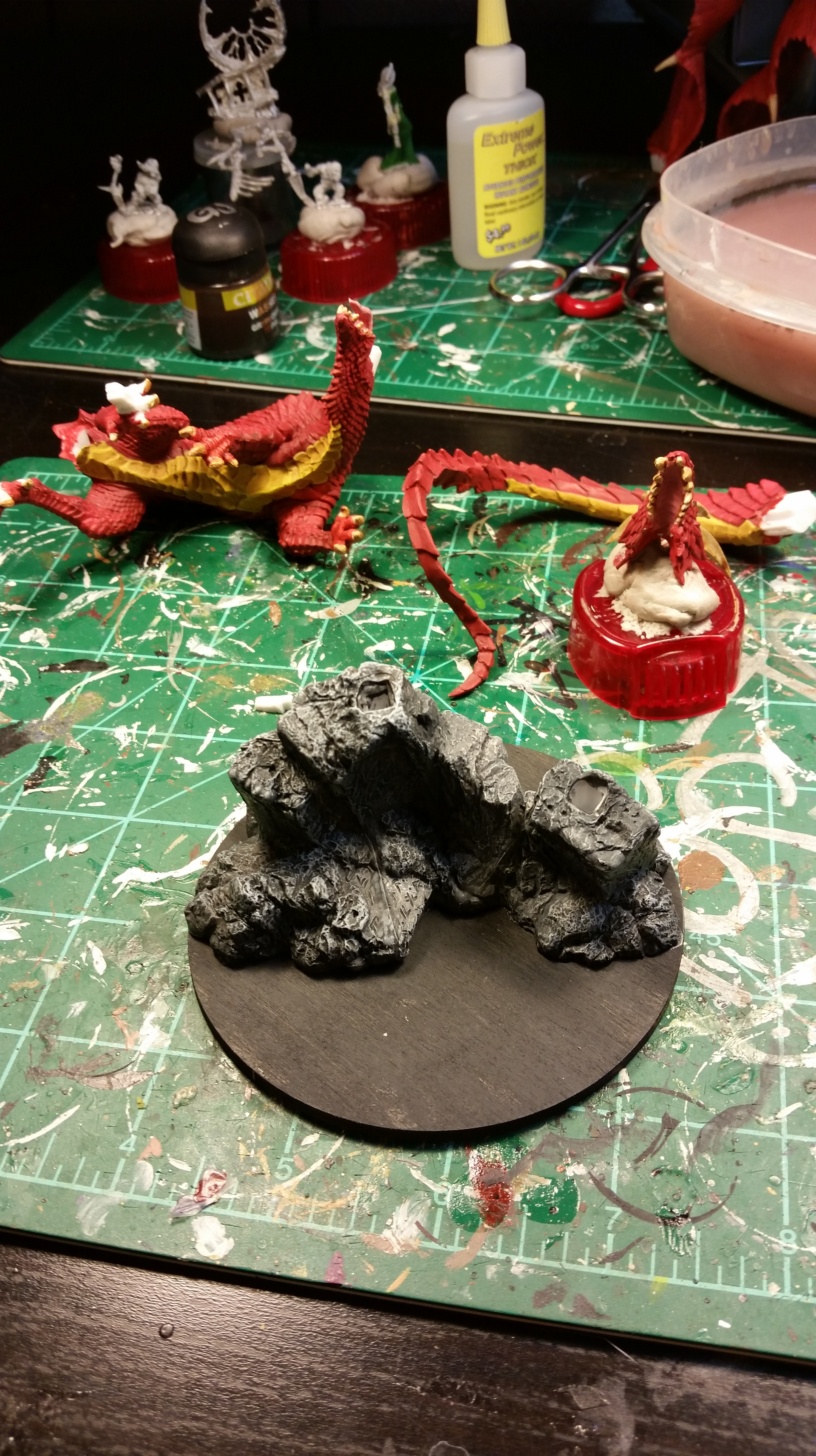 Eyes! I’m going to probably tweak them, but this is the initial look. Narthrax comes with a pretty cool base. It’s rocks and rubble and goodies, so with a liberal coating of grey liner, it looks like this!