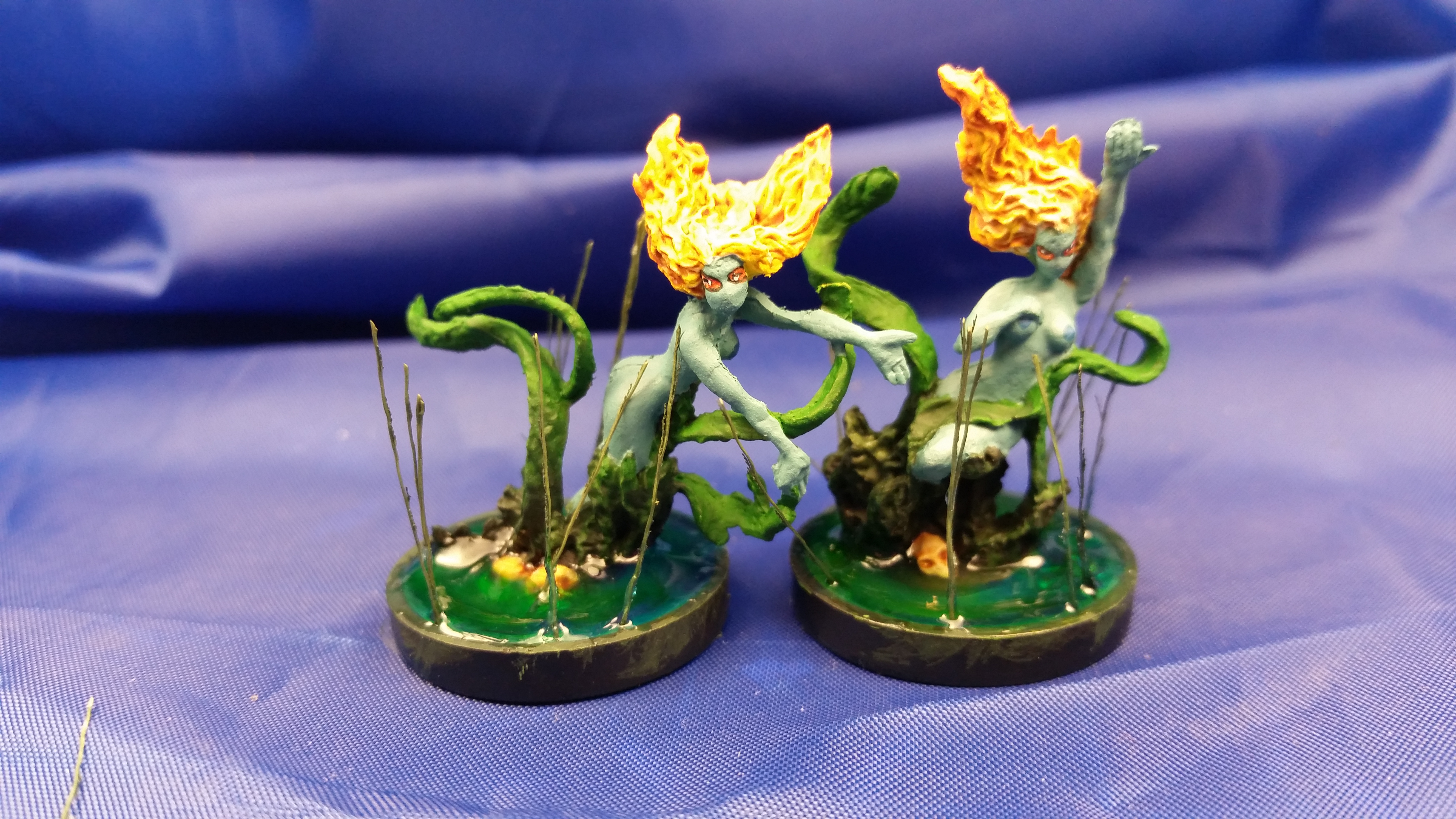 I loved these girls (and the dryad like them) when I first saw them. The looked like something I could really enjoy painting. And I did. But I learned something from them as well: never base before I’m done painting.