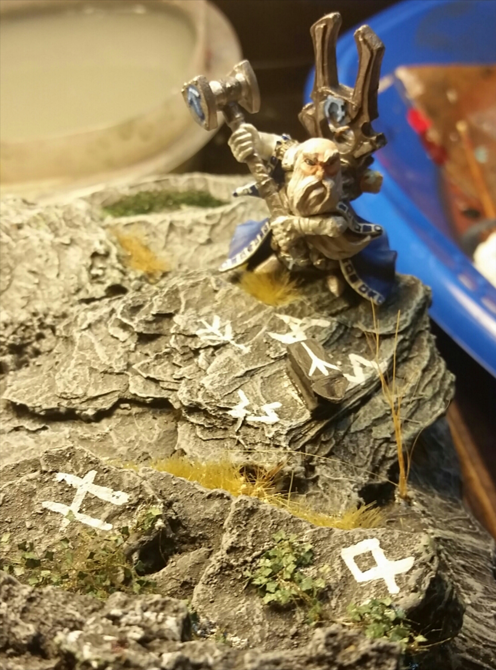 Next up is the rest of the diorama. I started painting on the runes around the male, he’s summoning Skadi.
