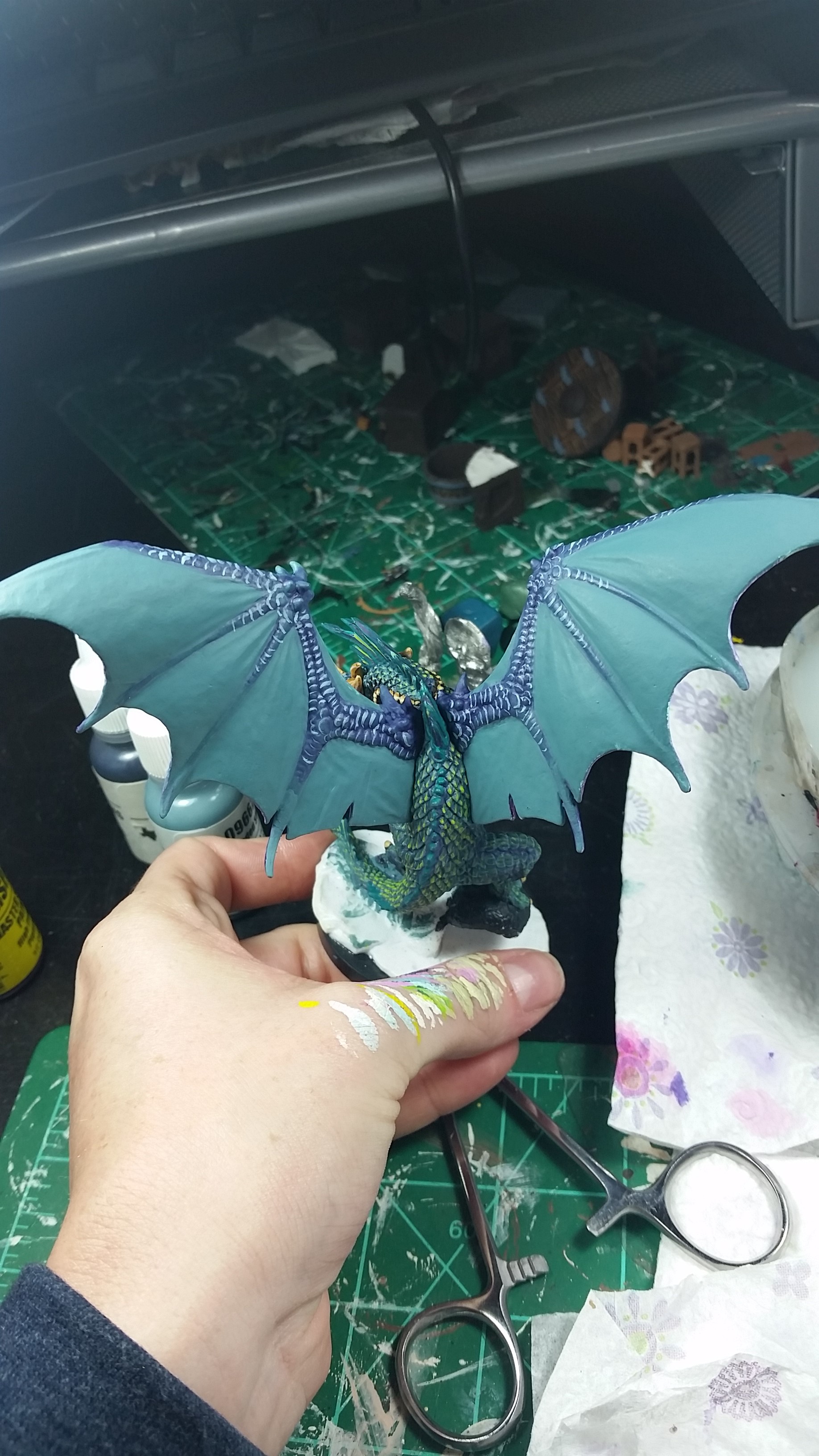 Dryfitting the wings with some updated highlights. Dreading more scales. 🙂