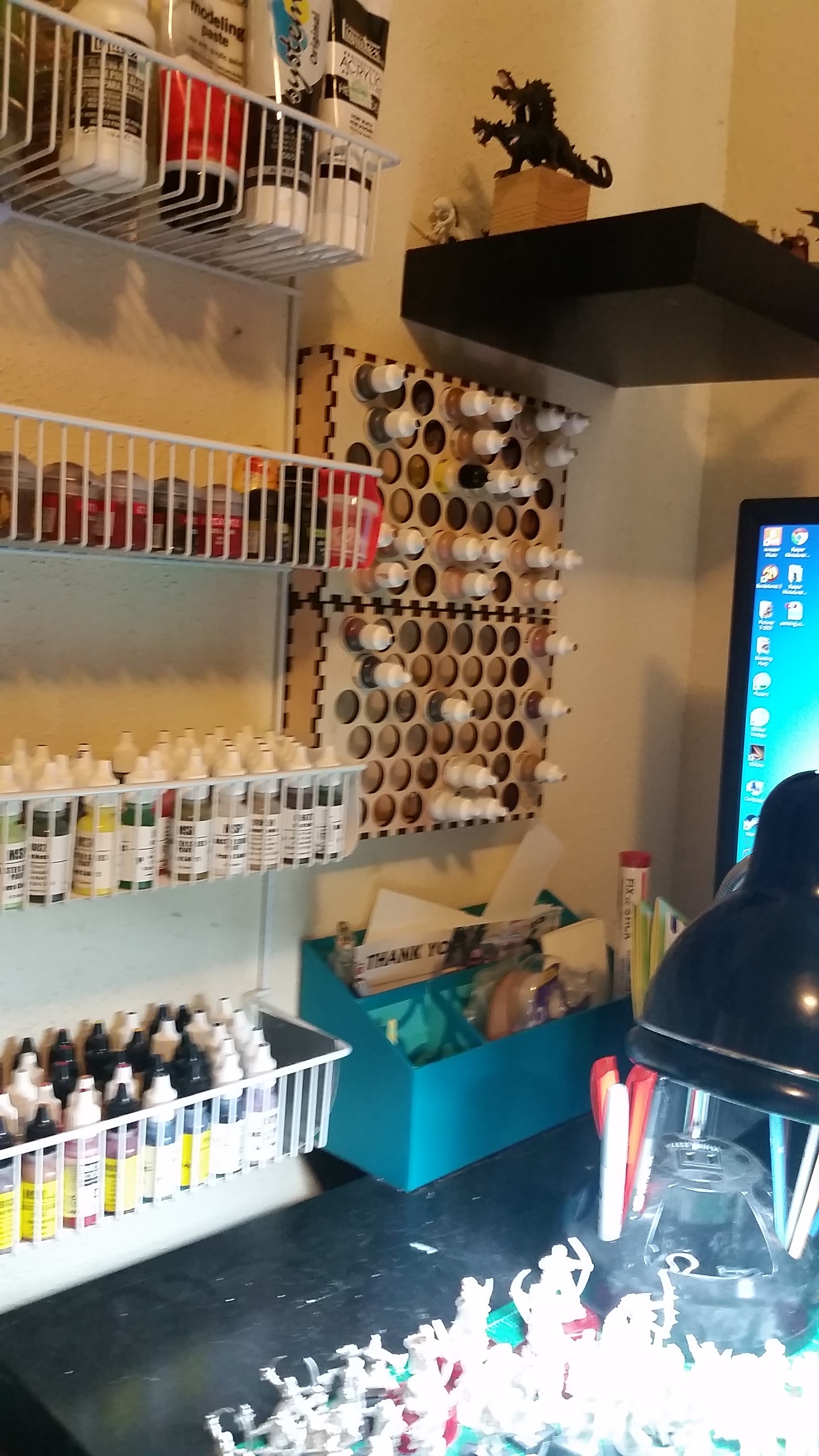 So, let’s start with the paint rack. I got the basic rack and 2 wall racks at Reapercon. Due to some weather (read:flooding forever) it took a while for them to get here, but they got here nonetheless!
