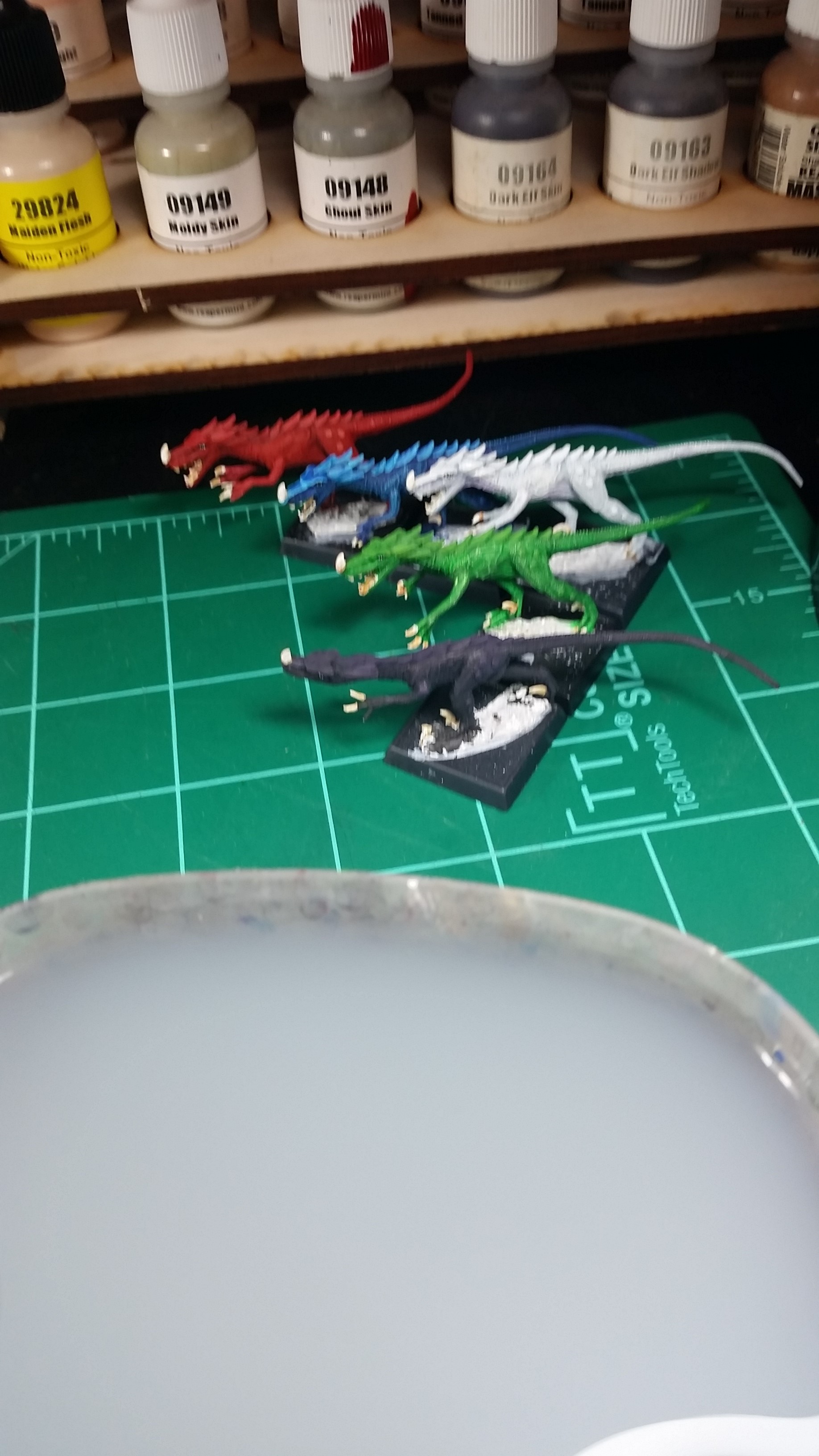 Great looking drakes. I think my favourites of them all are the three naturalistic ones (I know Chromatic is a big D&D thing, but still). Nice work on the paint racks, too. If you ever find you need more, try make-up suppliers and nail polish racks. That’s what I’ve got up in what was supposed to be my painting area. 🙂