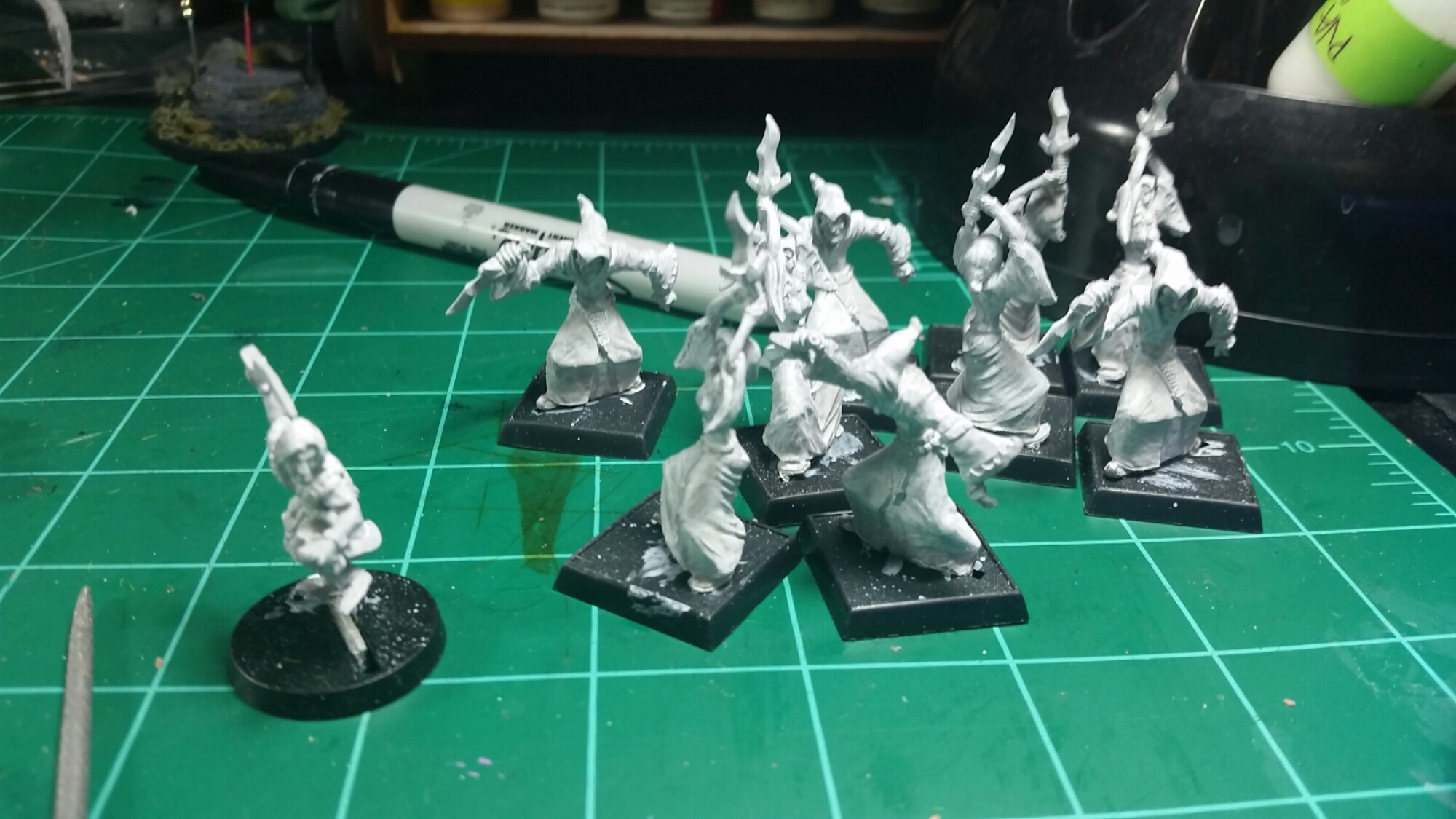 My plan last night was to clean and prime all the pewter I have left to do. I got it all cleaned, but only got the cultists primed before I got distracted.