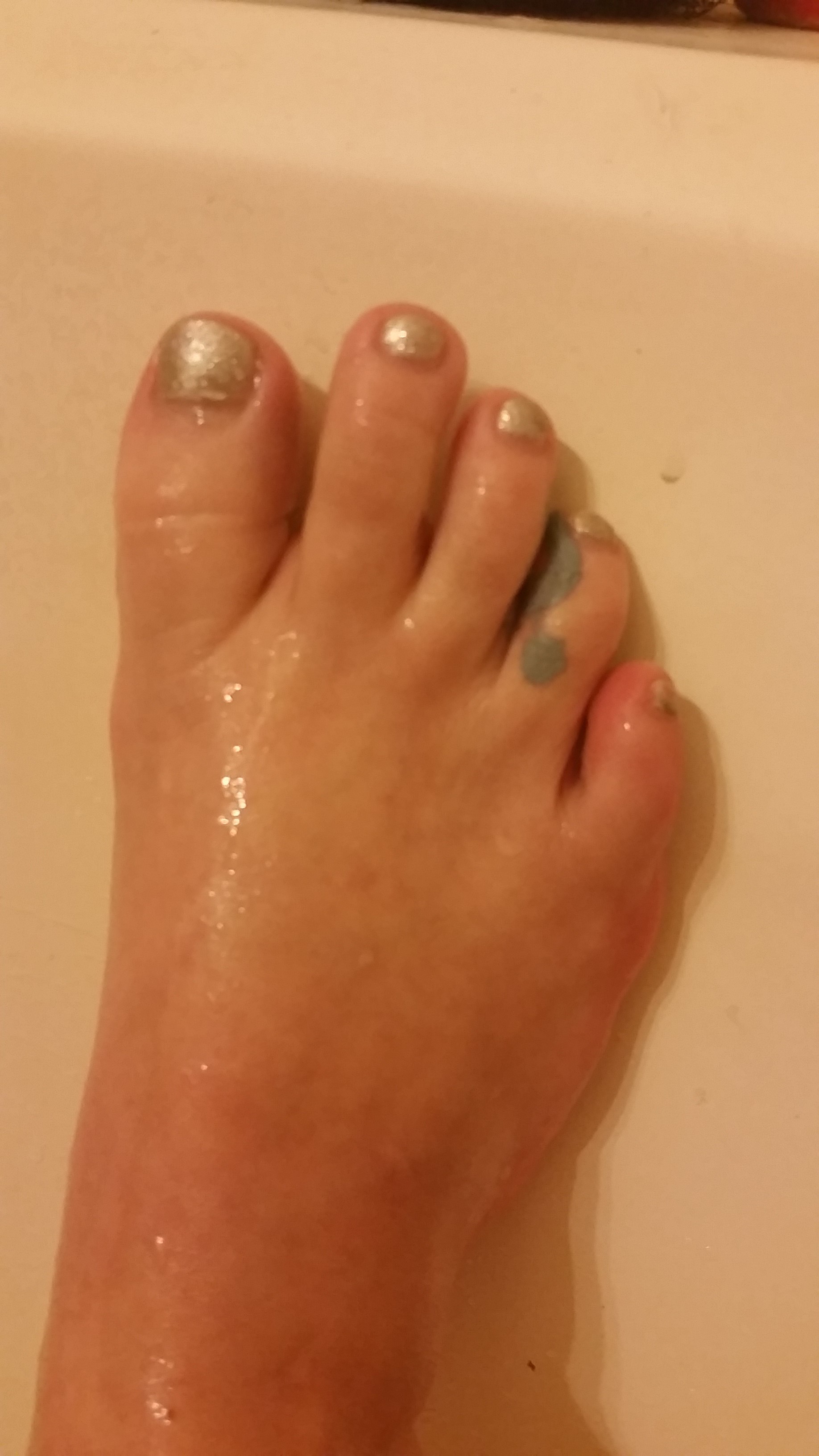 This is how bad I am at getting paint on the miniature. I usually cover my hand, but my foot!? That is just ridiculous! I played with our airbrush for the first time today, and that’s what I painted. 😉 Anyways, hope y’all enjoyed it!