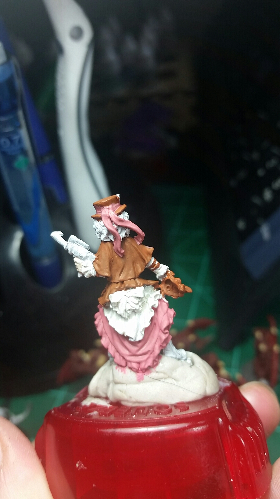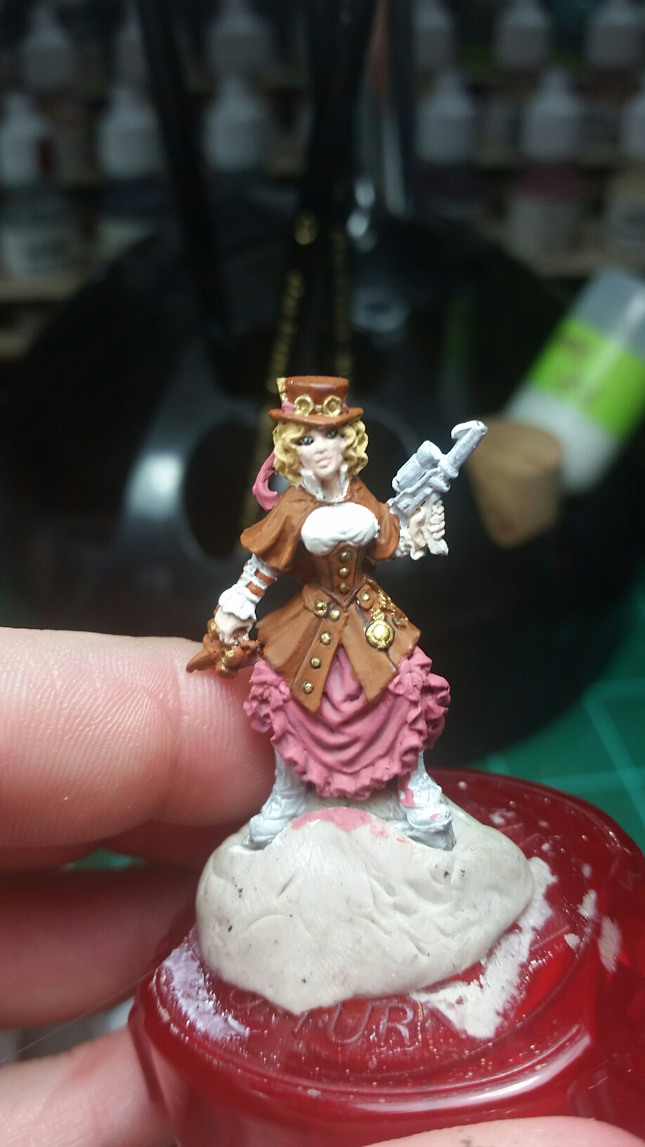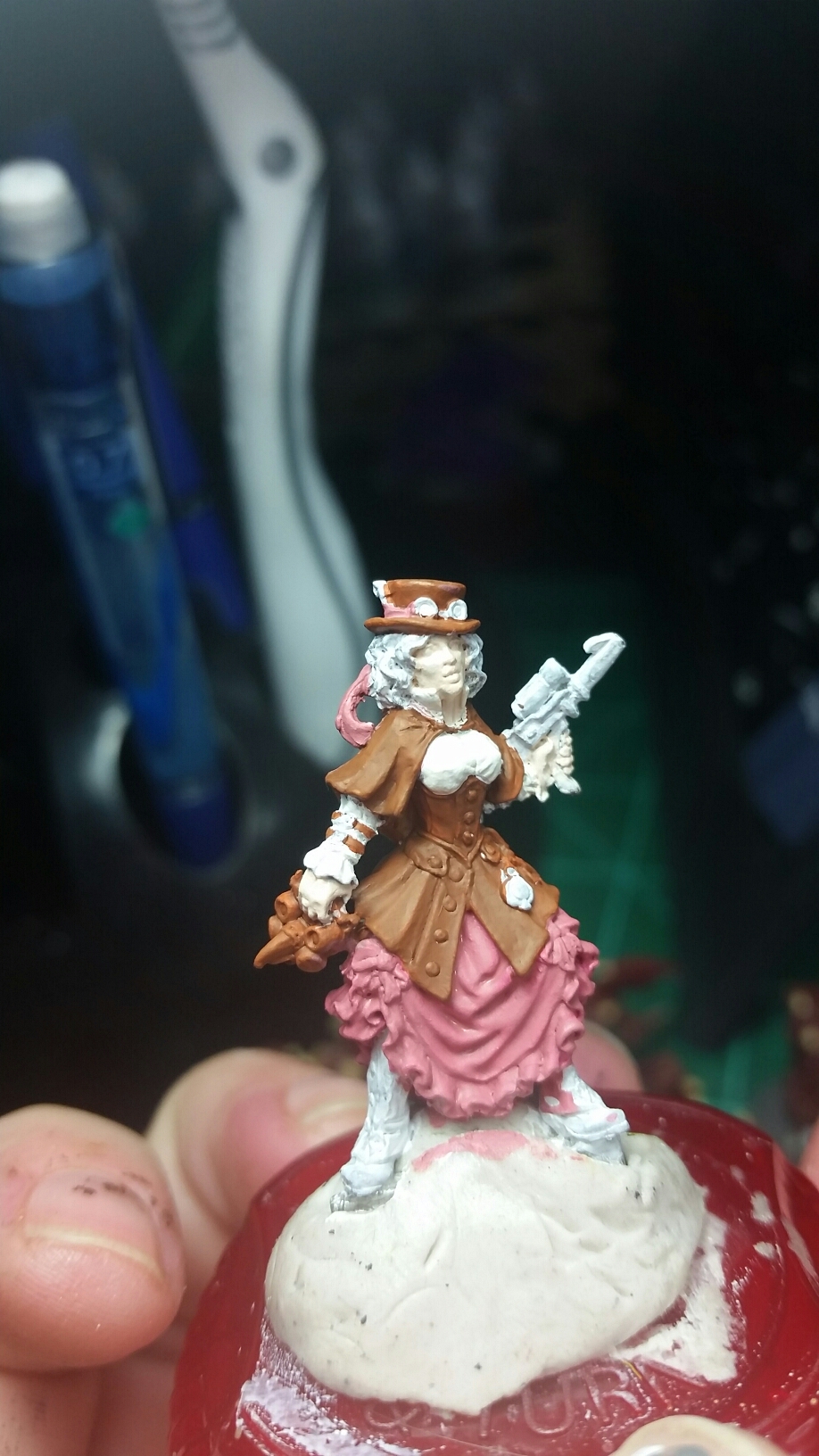 I love her! I also started on one of my exchange minis for the forums. I love this mini, but we will never use her. I always pick up some minis that j love but we can never use so I can paint them and send them off in exchanges.:) these are some wip shots of her in her steampunky goodness.