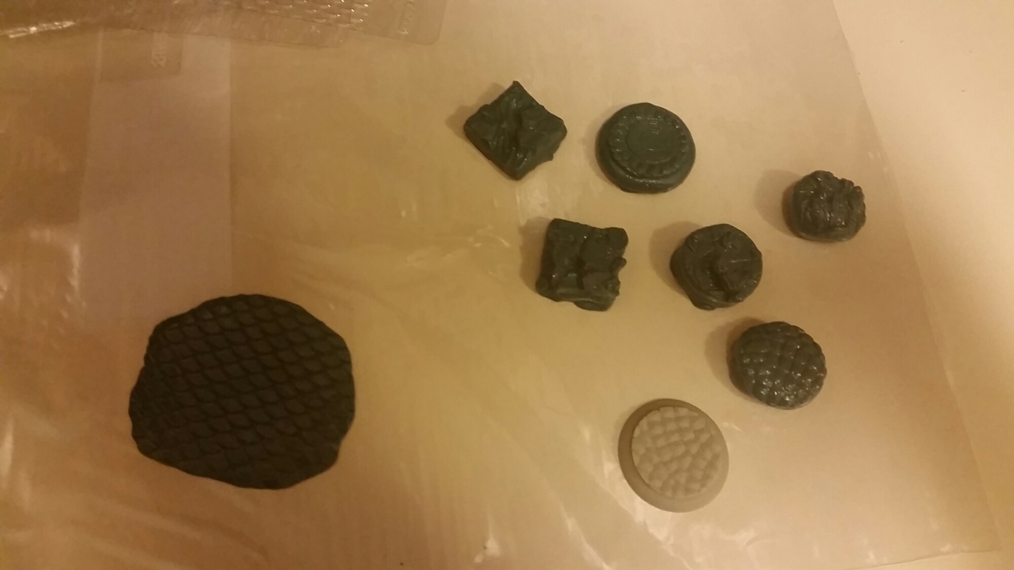For the purpose of basing my minis, I had bought some instant mold stuff to try out. It was like $12 on Amazon, so I figured I’d try it, and it worked great! You get it hot, press stuff in, put in green stuff, and voila!