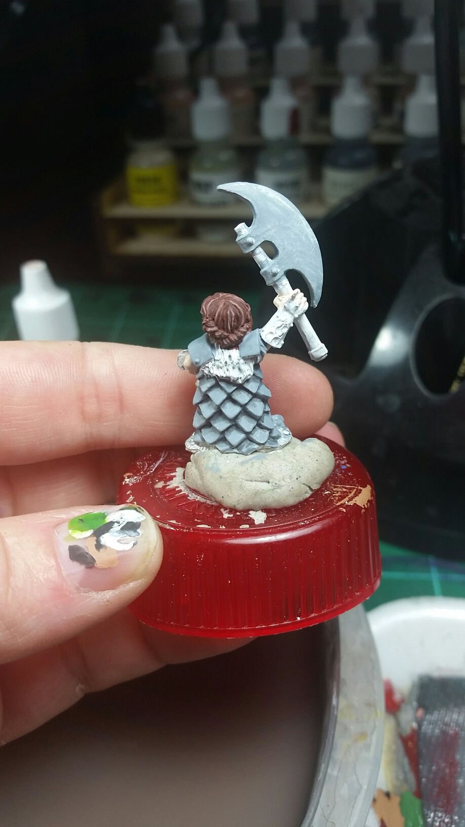 Then I started on a few other minis. My character for the 5th ed game is a Dwarf sorcerer that wears medium armor and wields a battle axe. Yeah! So I had to find a suitable mini.
