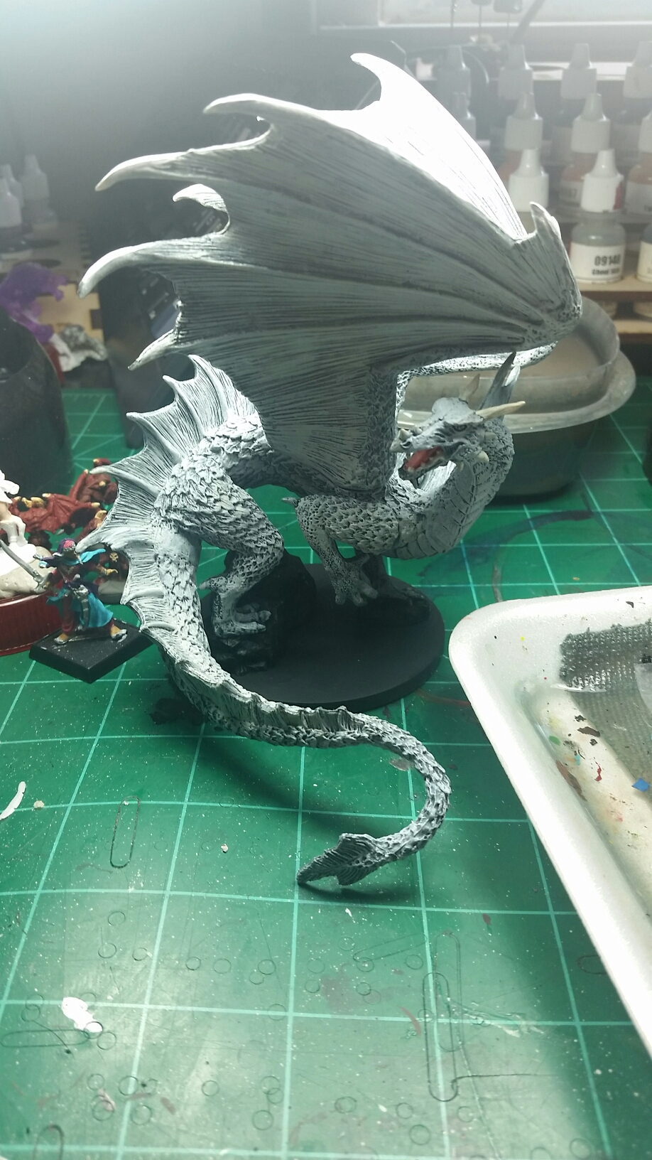 Oh, and I finished up the white dragon to where he’s gonna be for now. Gotta finish up his base another time.