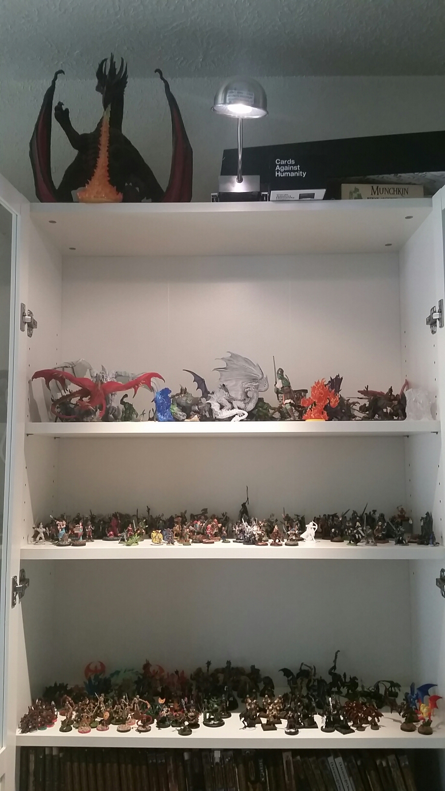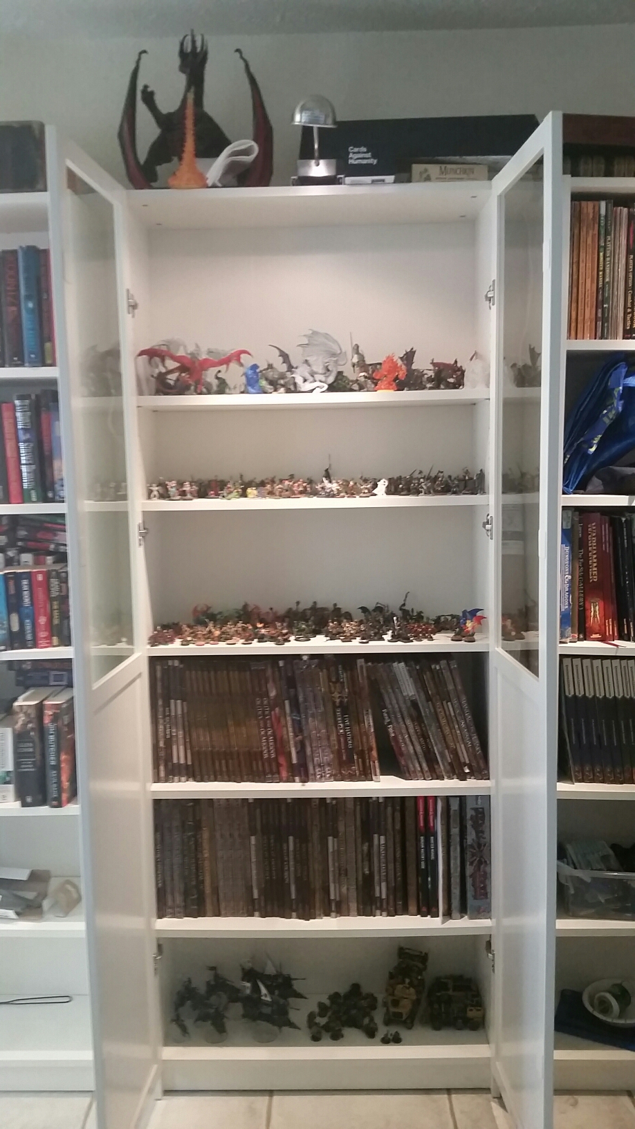 Hen I rearranged the cabinets in the living room. Yes, we are the people that have all our nerdiness out for everyone to see. Our giant kitchen table is in the living room so we can play d&d every Sunday. Judge away!