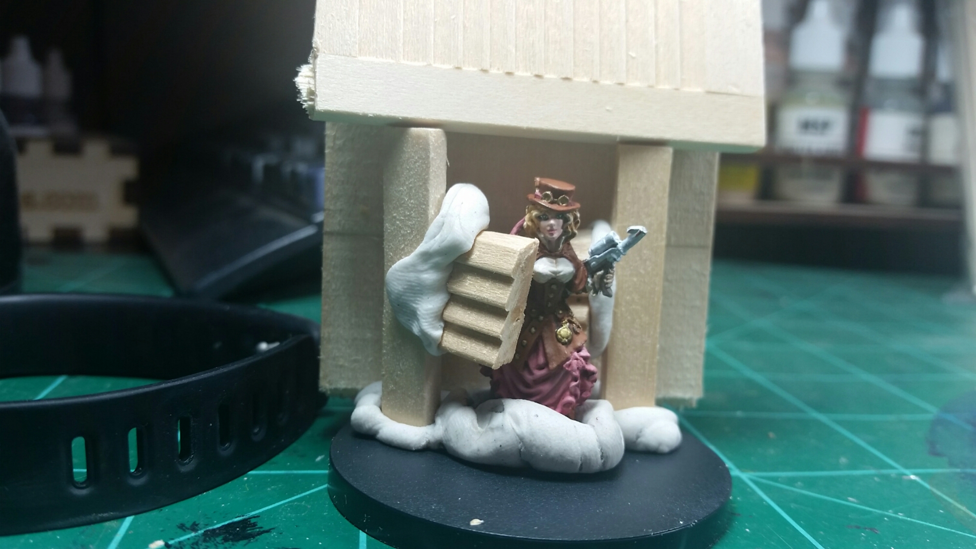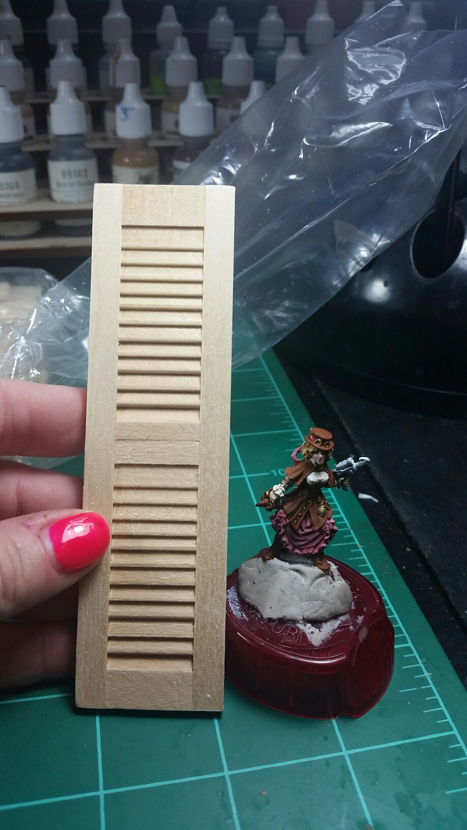 So, I’m still working on my exchange girl. I am calling her painting done until I get her base constructed. What u want is for her to be walking out of a set of saloon doors. So I went to hobby lobby and this is what I found!