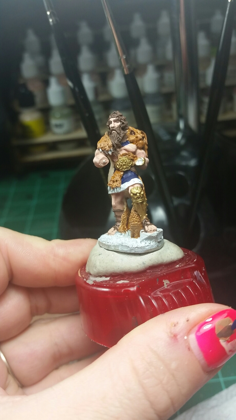 I love him. I’ve gotta add his arms, his quiver, and the lion’s tail, but he’s coming along nicely! Hopefully I can paint again tonight.