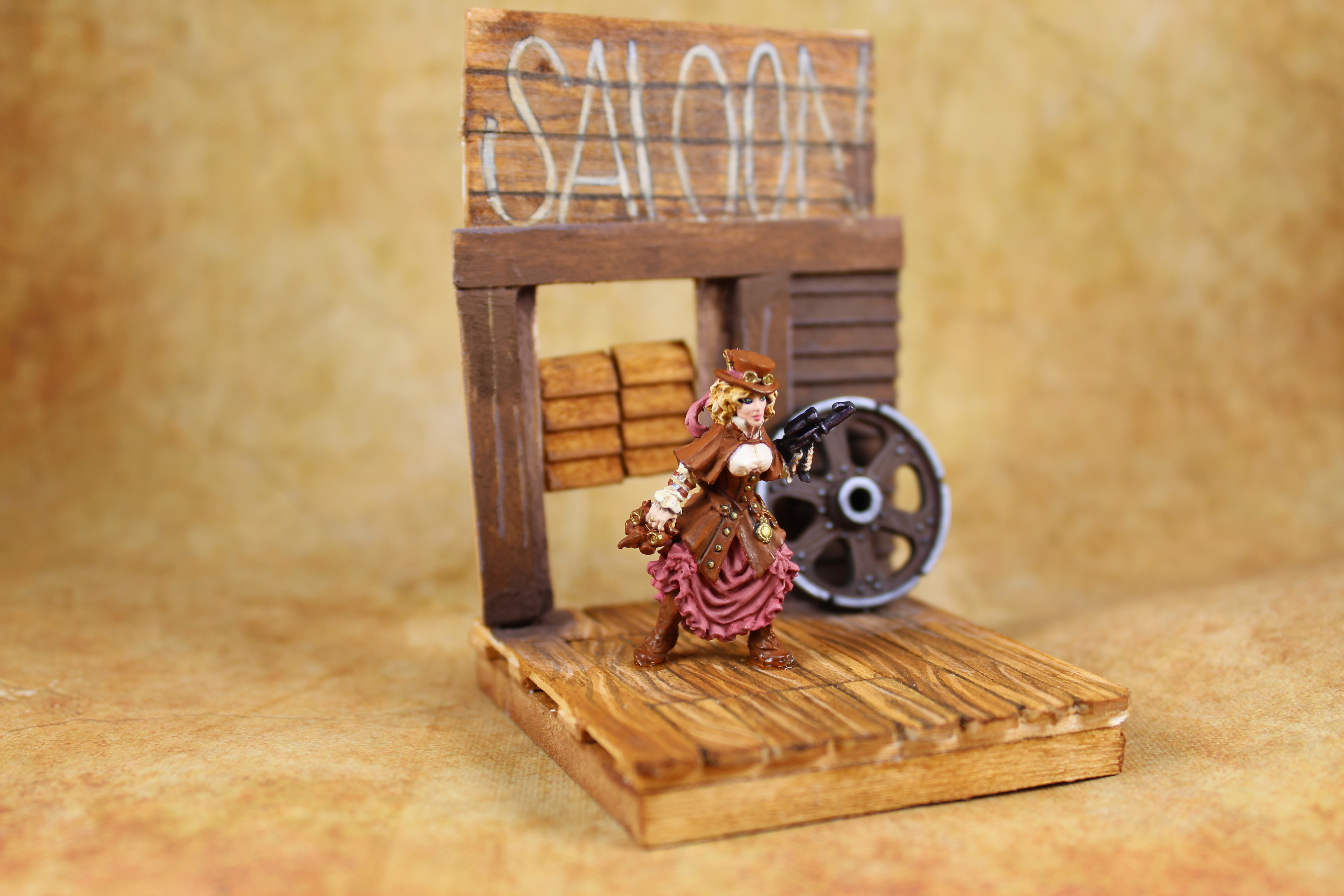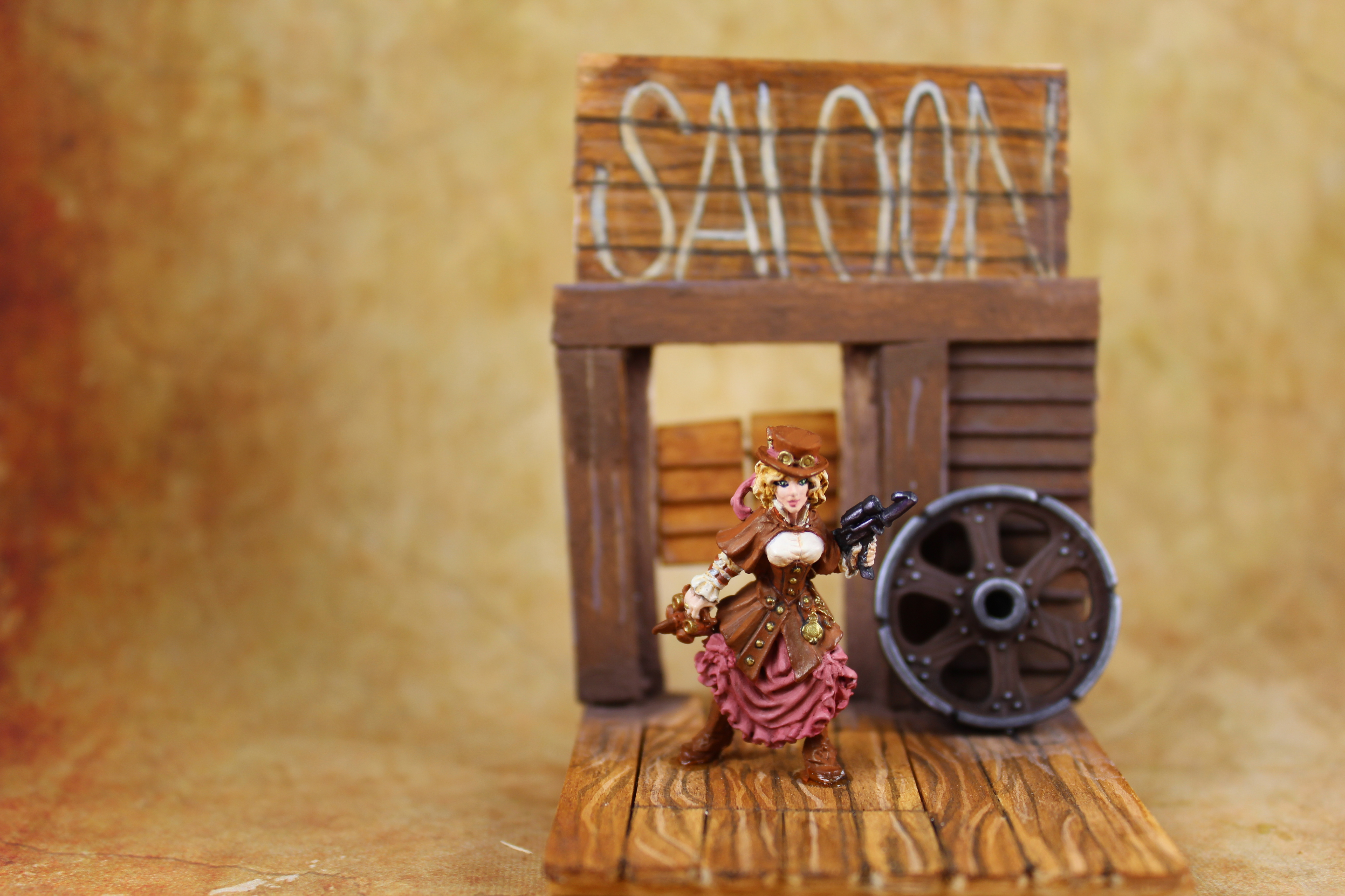 I think her little dilapidated saloon works well. And I got to use my Hangar18 backdrops that I love so much!!!