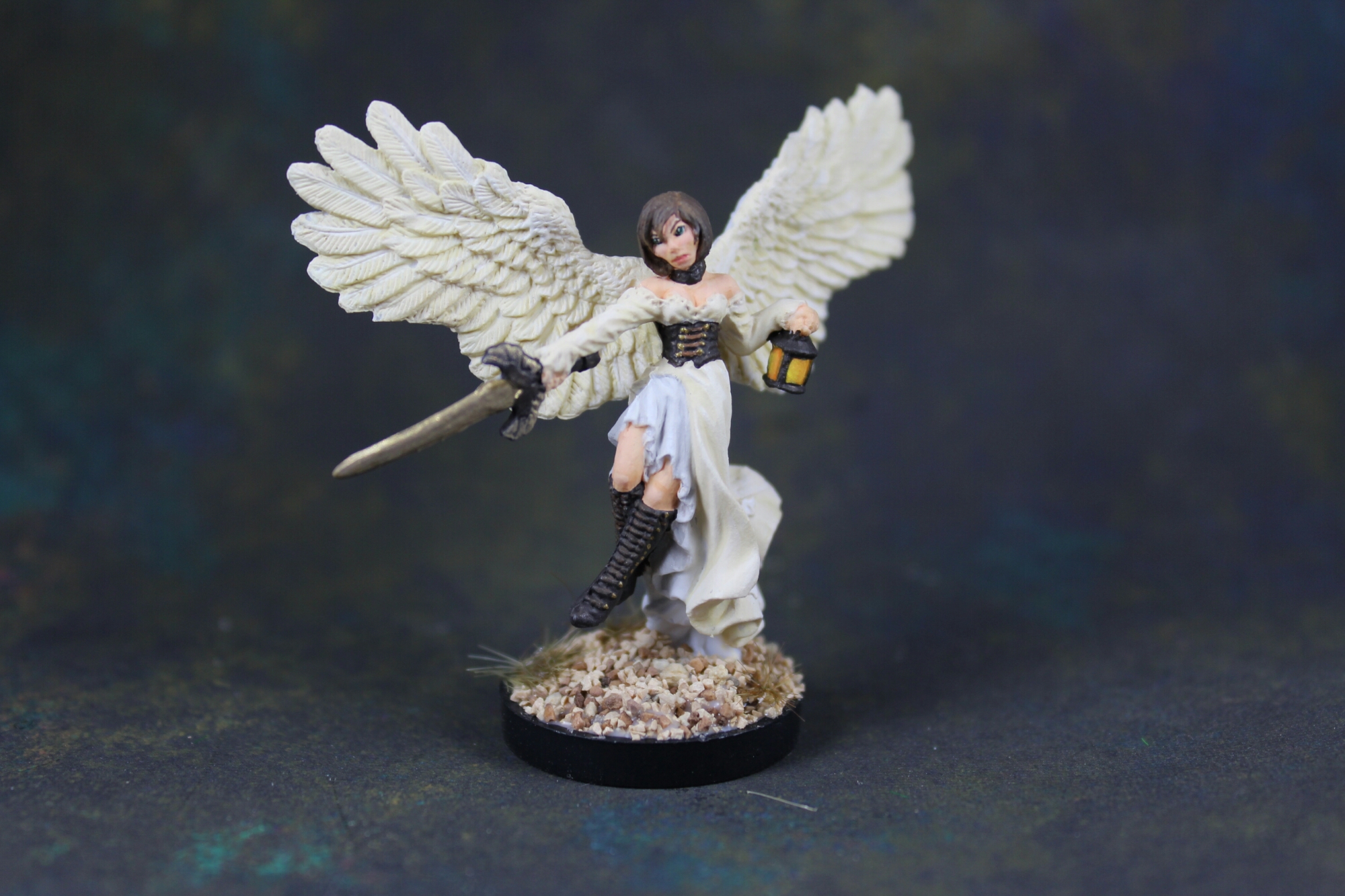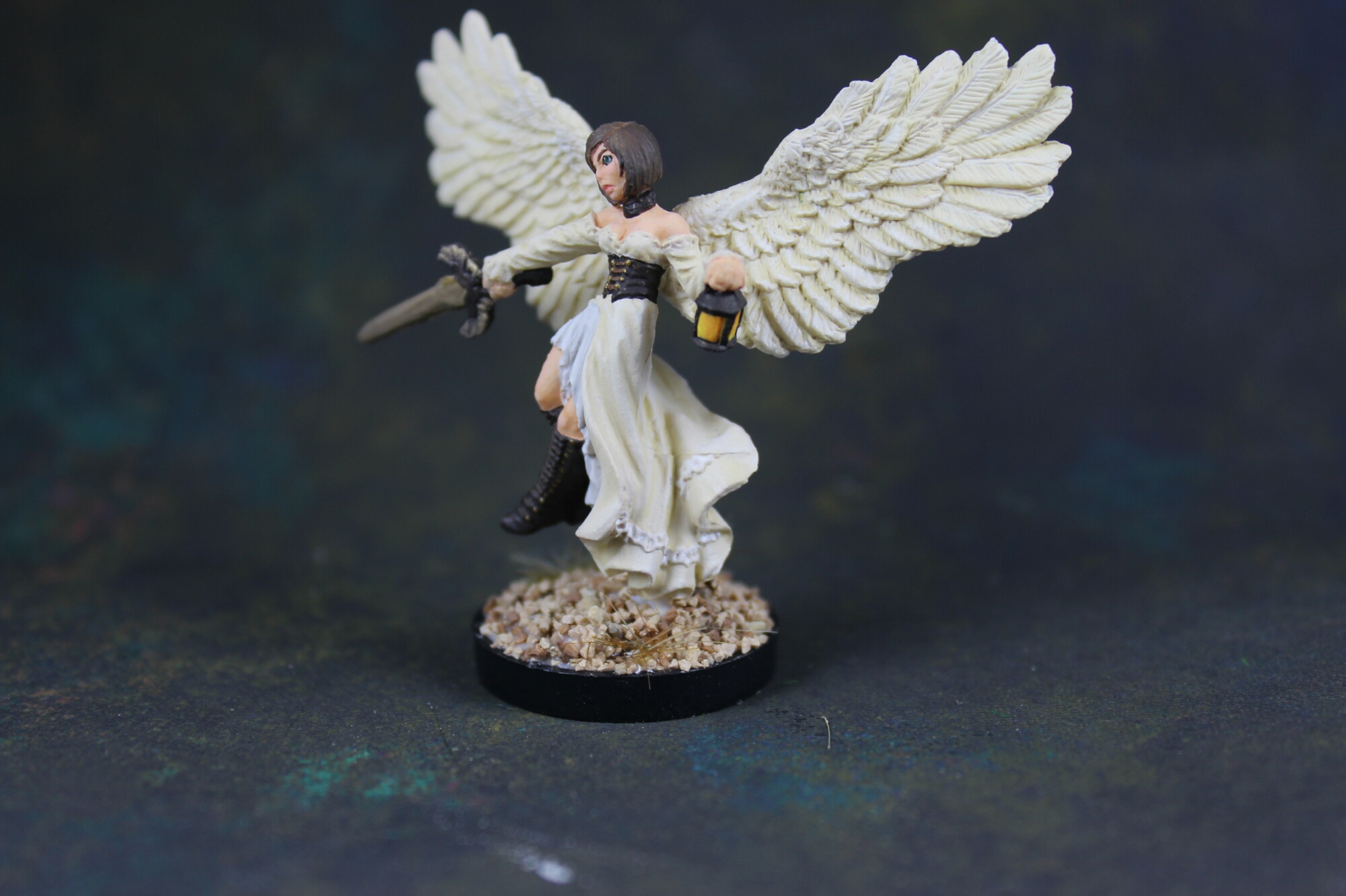 My mom loves angels so I ordered the pretty ones from reaper and painted one up last night. I started the other one, but her face has a mold lime right through the middle that I managed to miss… So I’m gonna have to fix that.
