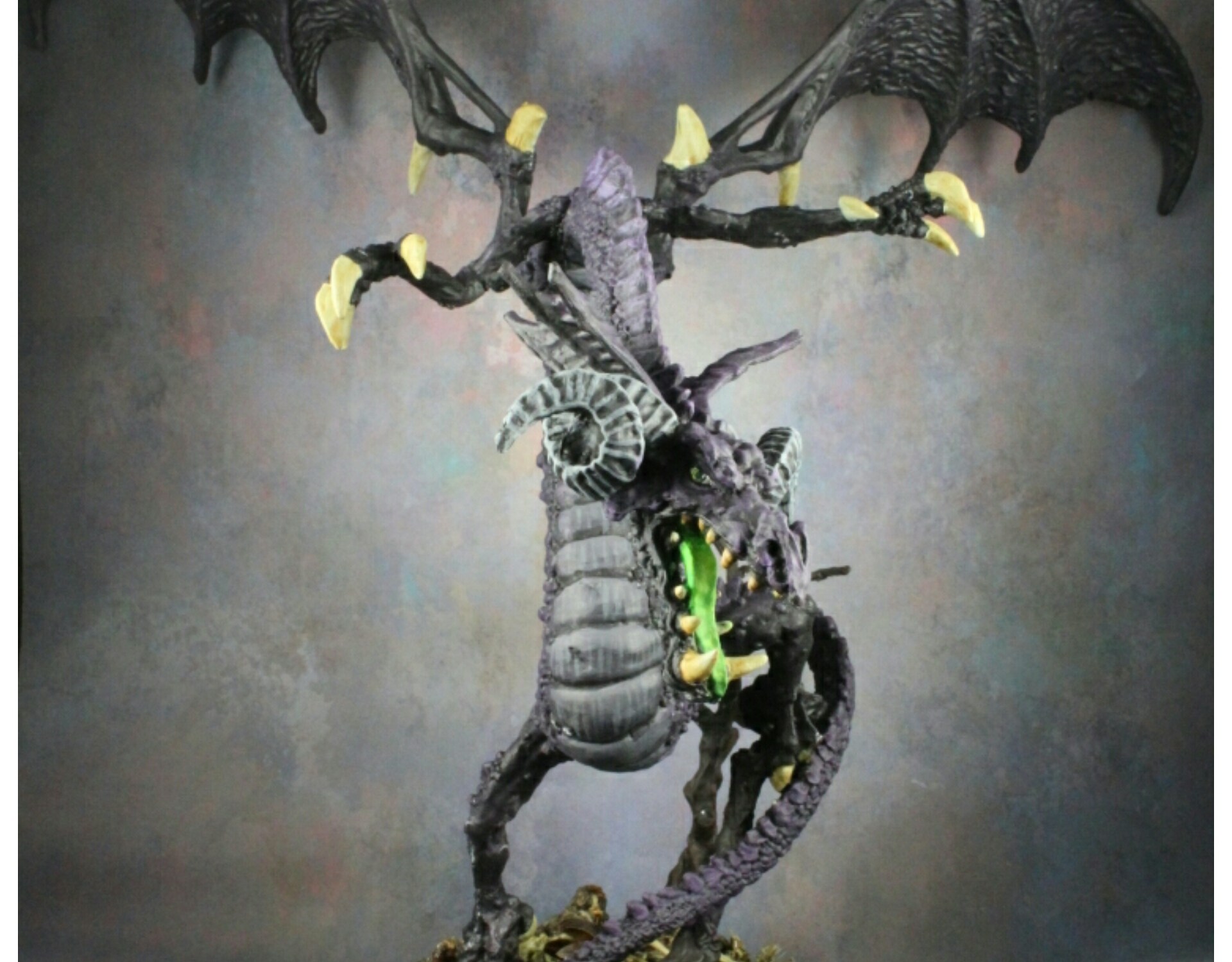 I love this guy. I decided to make him a black dragon, and they live in swamps and spit acid. so he does too! I decided to go with a purple-ish tint to him since all pure black would never work.