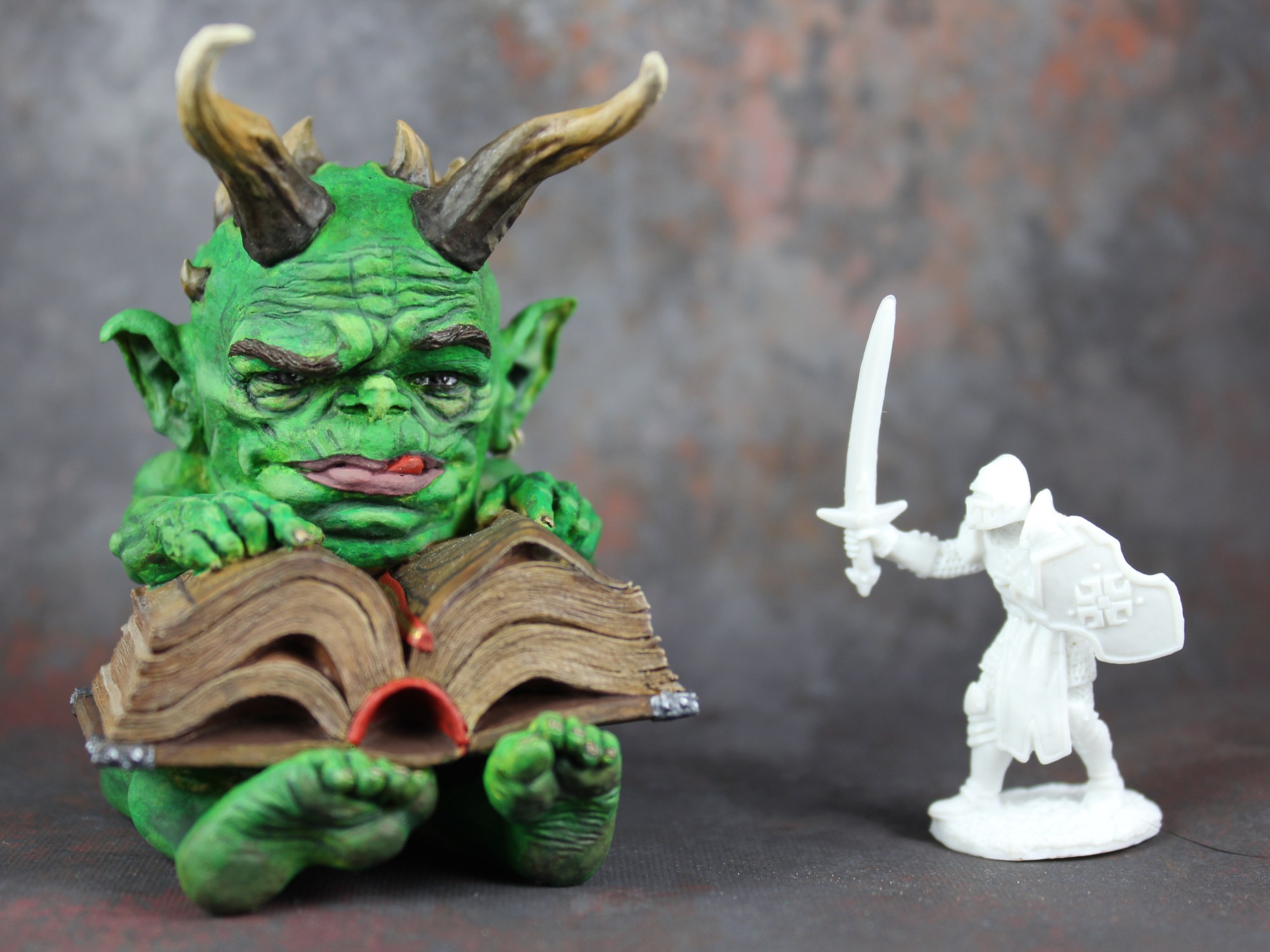 I posted him on the forums a couple of weeks ago, and got some good feedback. So I took it and tried to do my best to highlight more and add more shadows, and do all that. I think it turned out even better than I had planned. I’ve decided I’m calling him done, and I’m going to keep working on his workshop now. There were requests for scale images, so I included Sir Forscale in these to give you an idea of how big he is.
