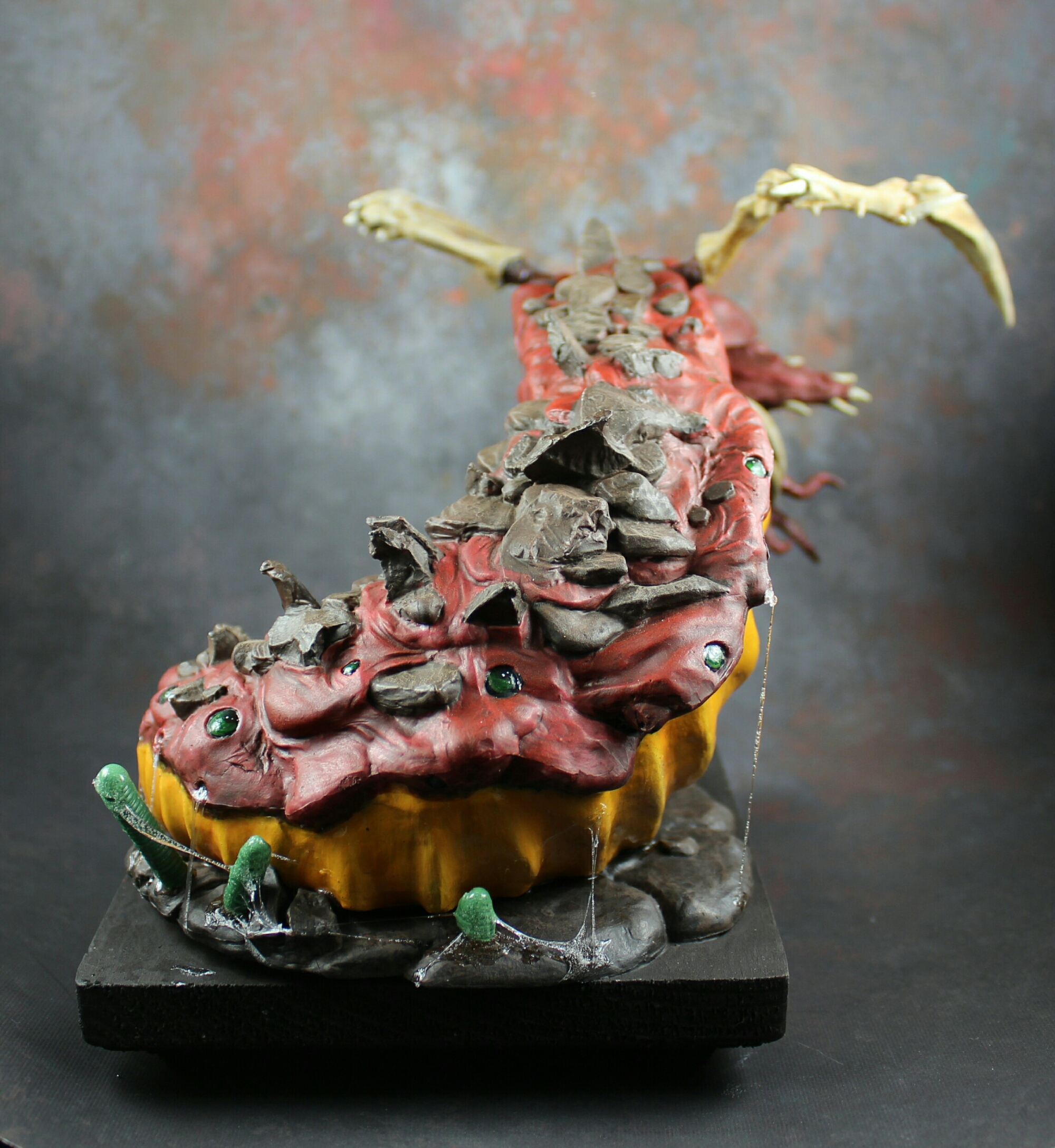 Gross back that looks like a lava floe. I wanted him to look like he could just lay down and you might lose him in the rocks.