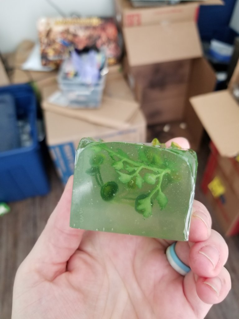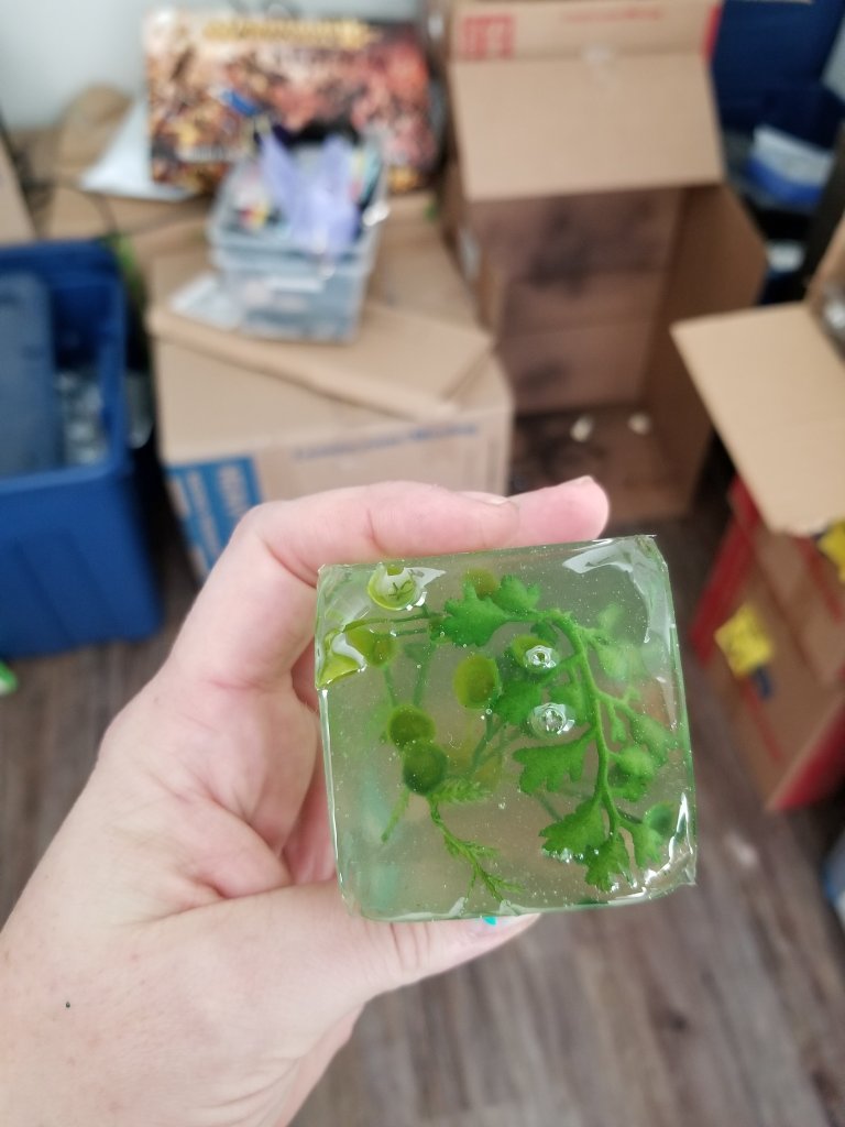 cube mold, little bit of color, BIG bubbles on the corners. I’m not sure why it did that!