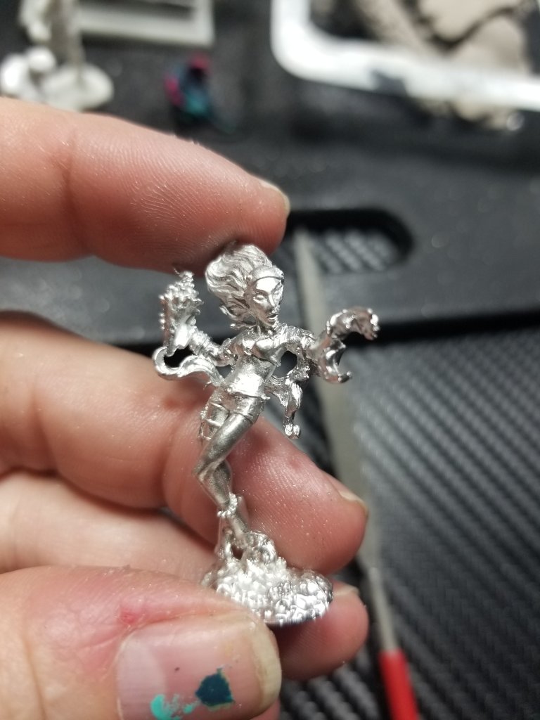 I didn’t take pictures of either of them when I started, but this guy had a sword. No longer. Lol. And I bent his arm, so I learned some stuff from that. I’ll end up having to sculpt some fingers on him, so that should be an interesting experiment.