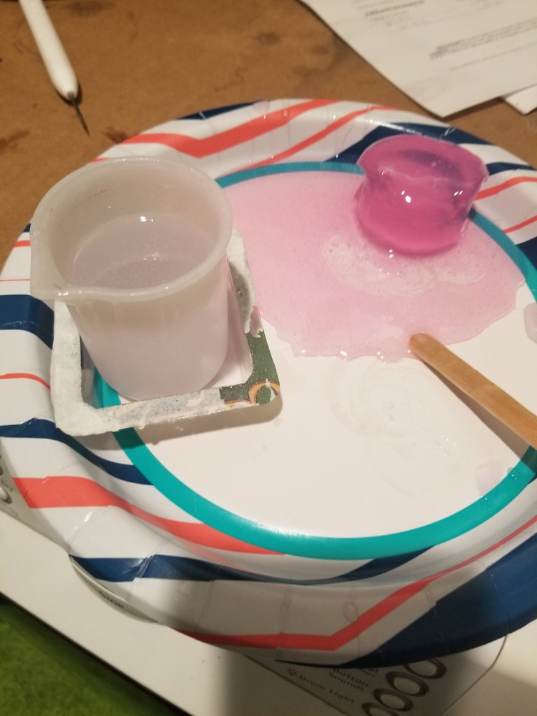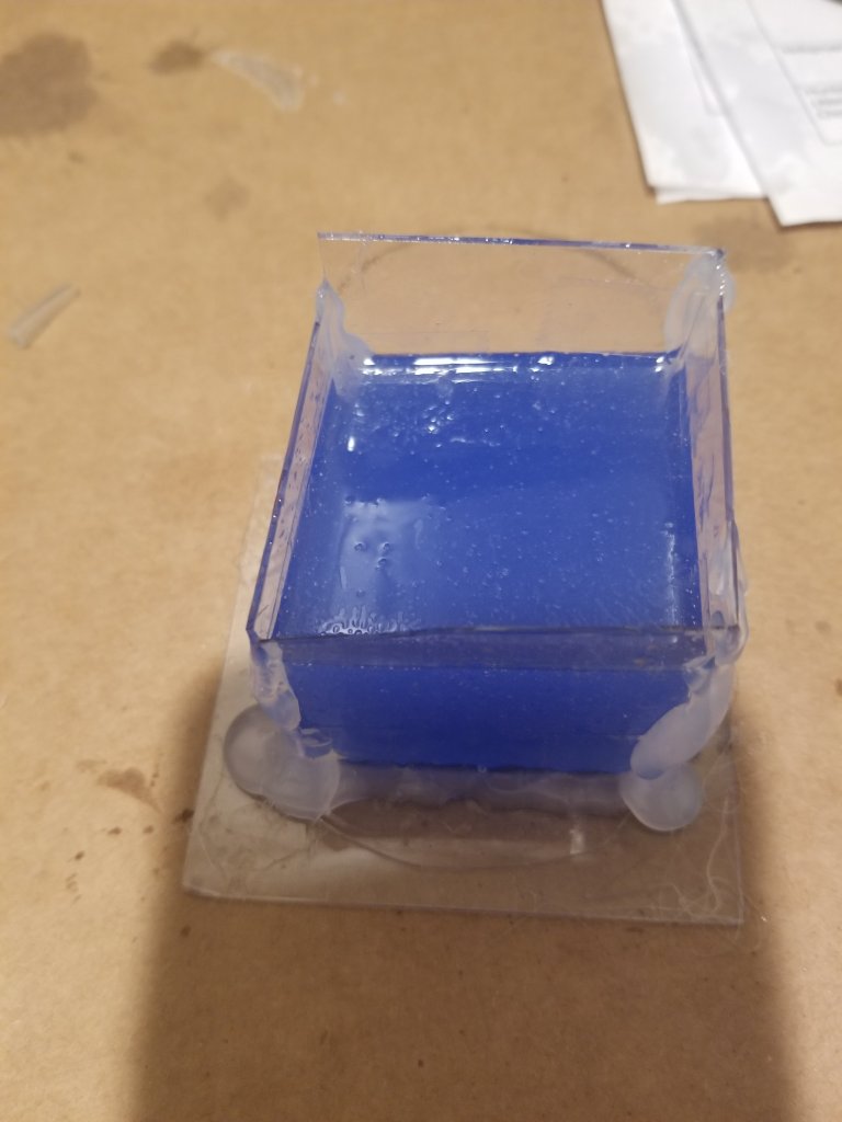 Second was my fault because I forgot how much I put of the first reagent, and guessed on the second. So it hardened all the way, except for one spot on the bottom. And it was bubble central.