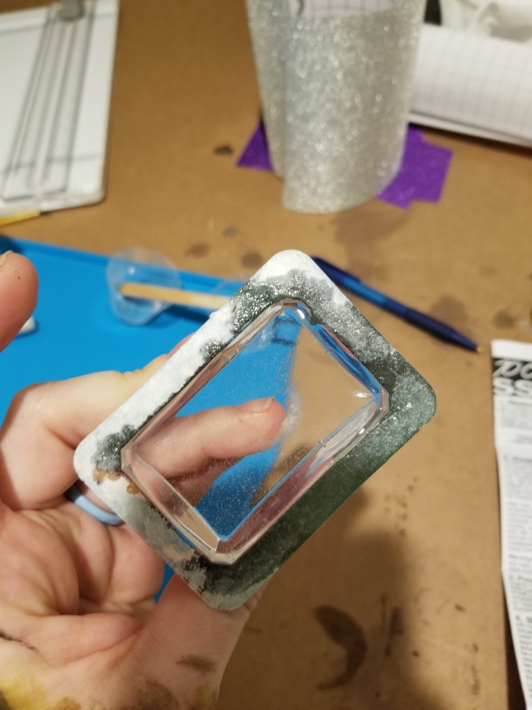 Today my attempt will be on a cheap imitation of my final project. I Gabe a lump of air dry clay with my mud mixture and a plant on it that I’m going to pour over to see how it goes. I will probably do it in one large pour to see how this resin does.