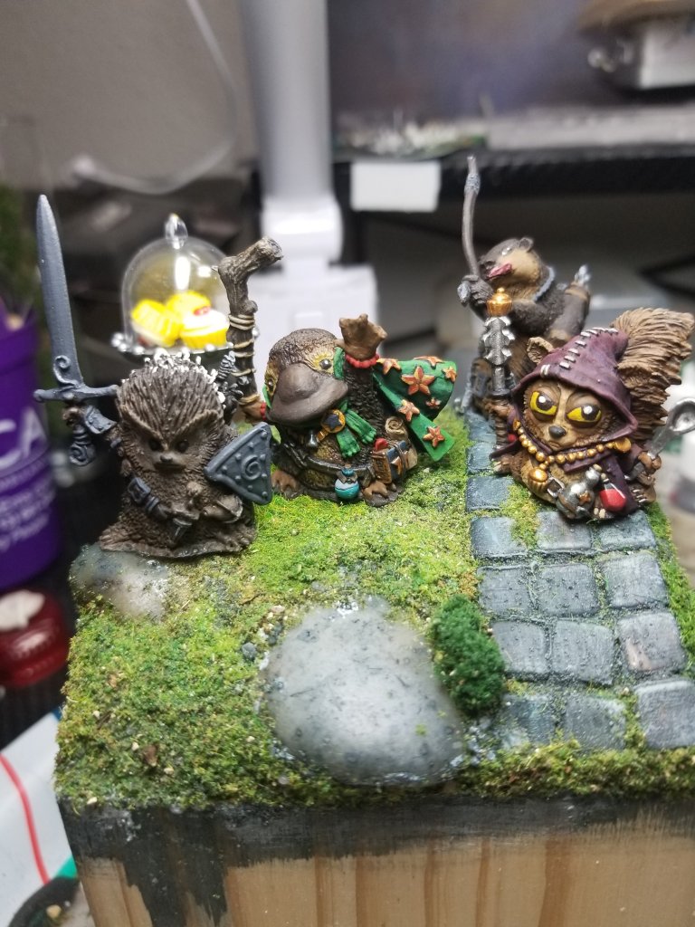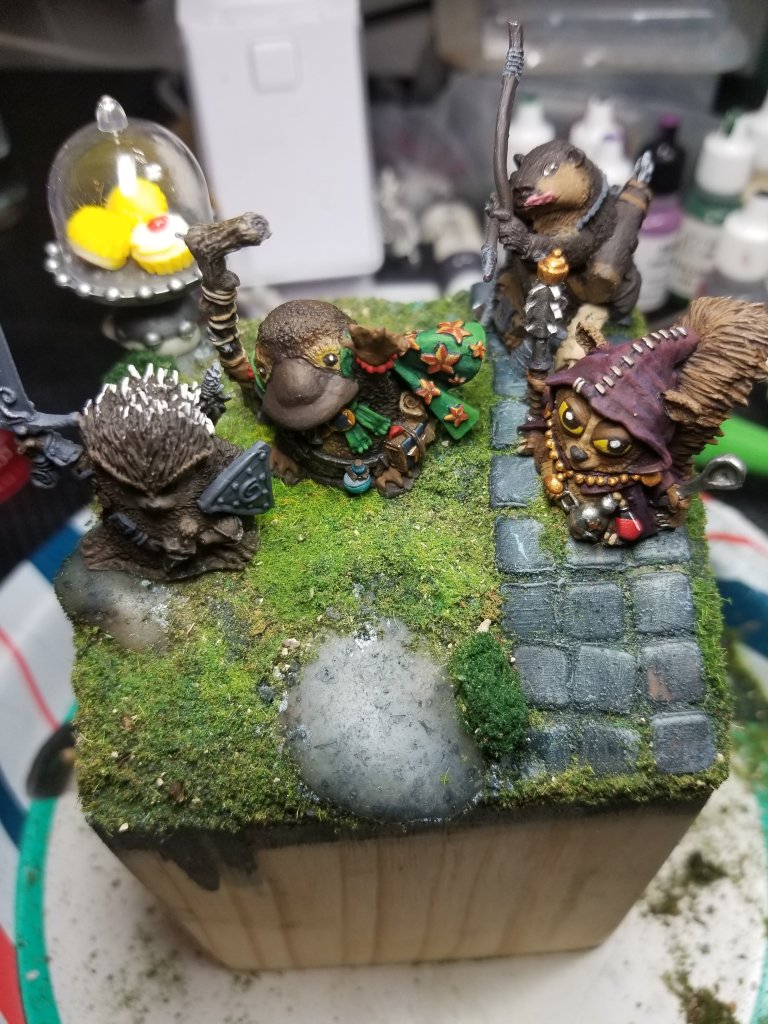 Then I got an hour or so to work on it, and it turned green! This layer is drying, it’s by no means done. But I am pretty happy with the cobblestone road.