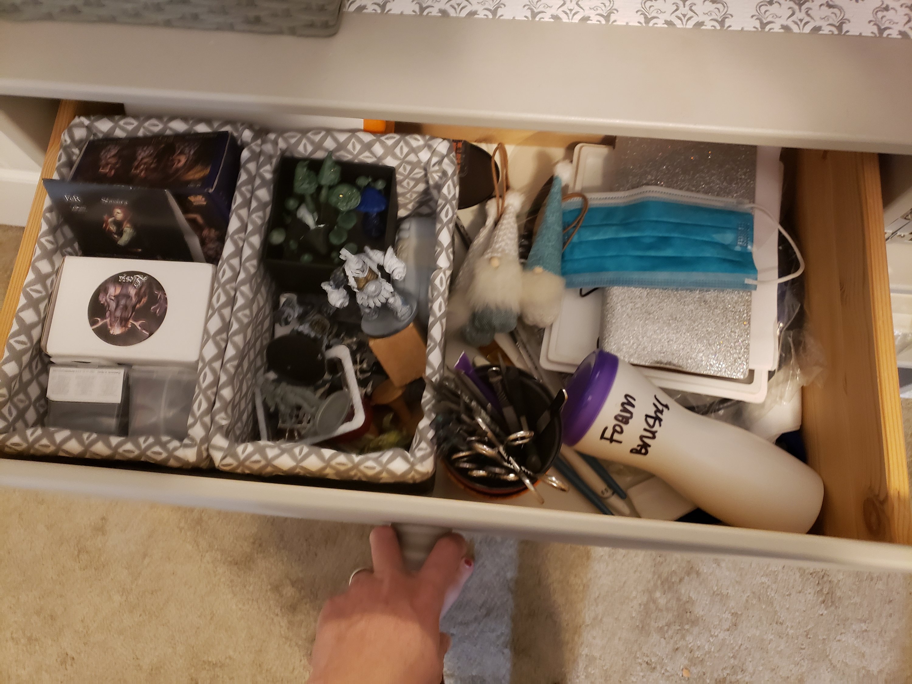 Top drawer is busts and misc. Things I want to paint sooner rather than later, fancy stuff. 😁