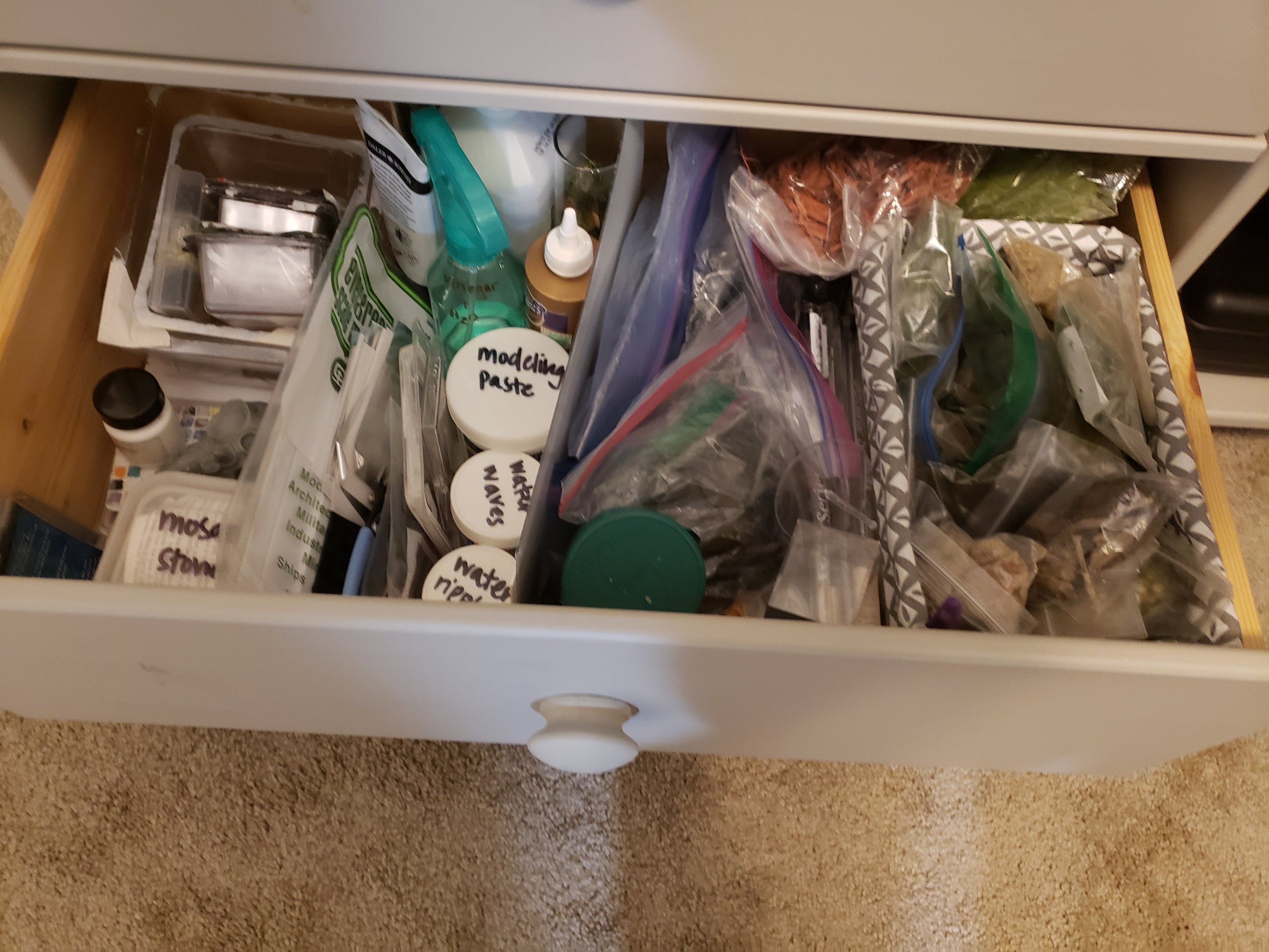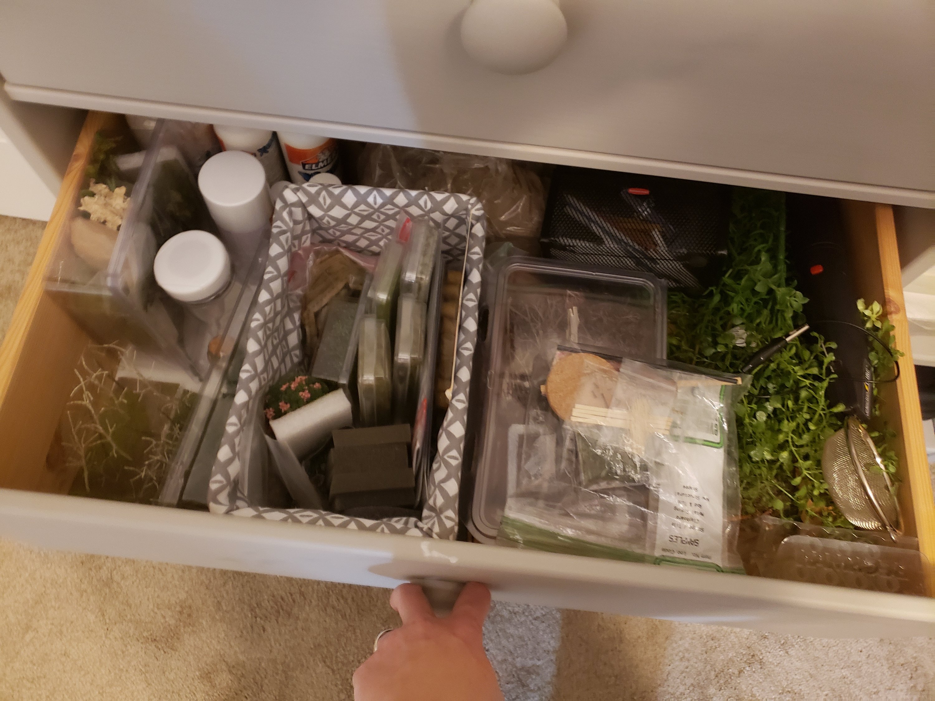 Second drawer is all basing “stuff”. Trees, rocks, bark pieces, aquarium plants, mouse bones, leaves, leaf litter, ad nauseum.