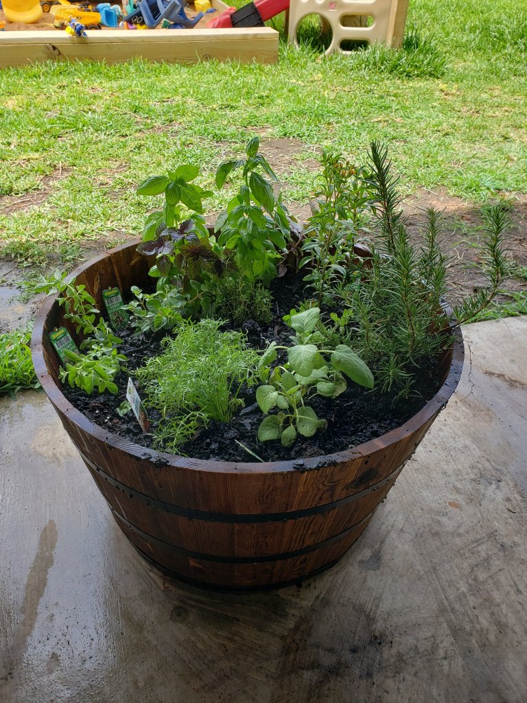The herb garden is something we’ve kicked around for a long time, but I’ve never had a green thumb. Somehow in the last year, I have developed one! So, herb garden it is! We have rosemary, thyme, basil, tarragon, sage marjoram, and cilantro!