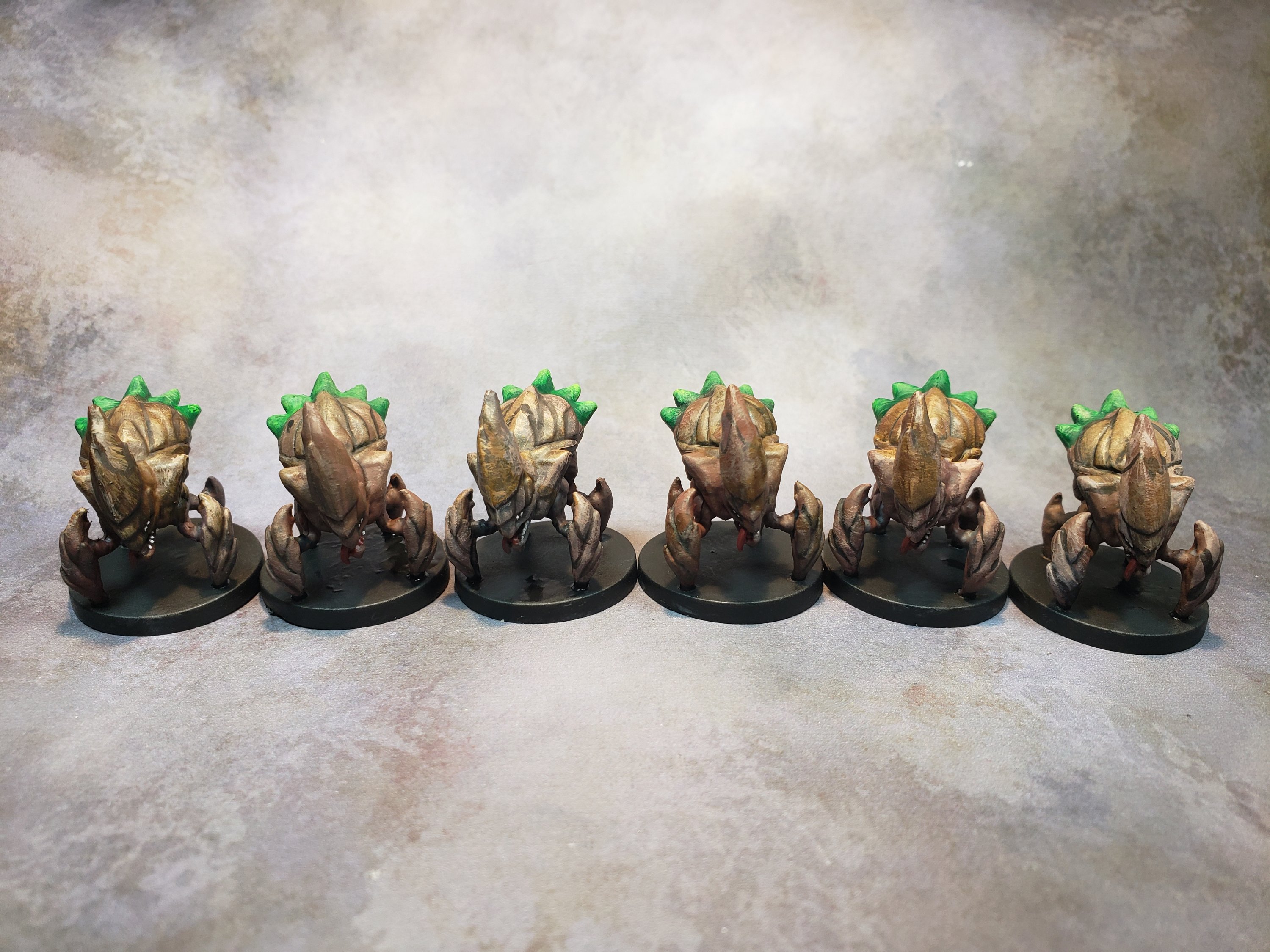 Anyways, we finally got to try it out today! After playing for a few hours that we really enjoyed, we decided to call it for the night. But I couldn’t leave all the wonderful minis naked! So I grabbed a few that I could batch paint and chunked some paint on them. After about an hour’s worth of cleaning, and a other of painting, I had 6 painted cave sickles!