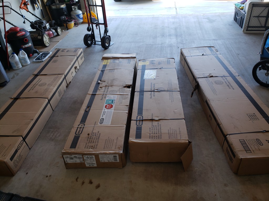 We also got another cool set of boxes this week… This is our new swingset for the Tiny Overlord!!! It’s a cedar swingset with a fort and everything. I might be as excited as him. Maybe more? 🙂