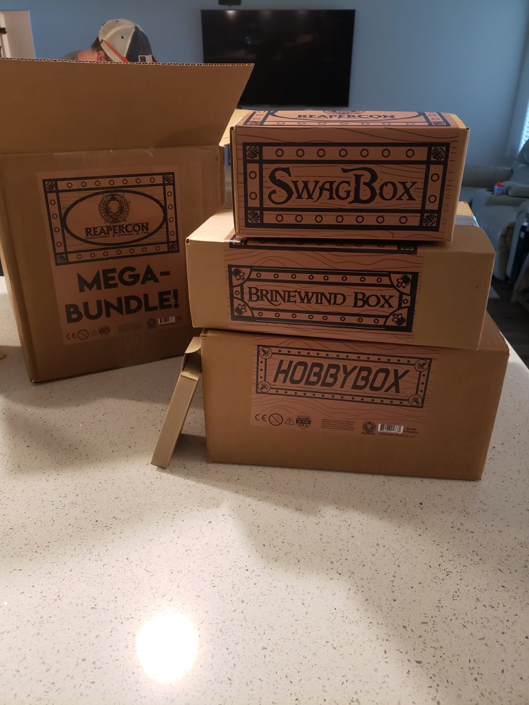 I also received all my Reaperconline stuff. Reapercon was (obviously) canceled, so they’re doing it all online. If you’re unfamiliar, you should check it out. They are offering all the classes for free, and they’re some pretty awesome classes. Check it out here.