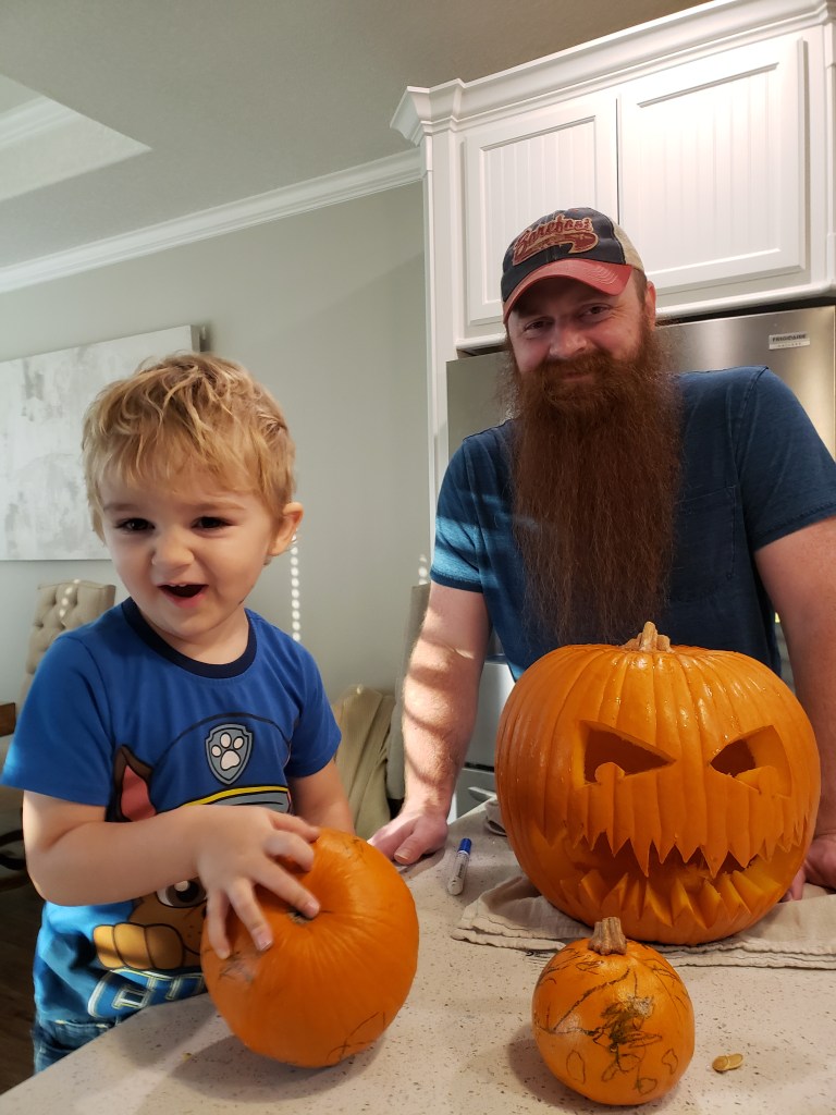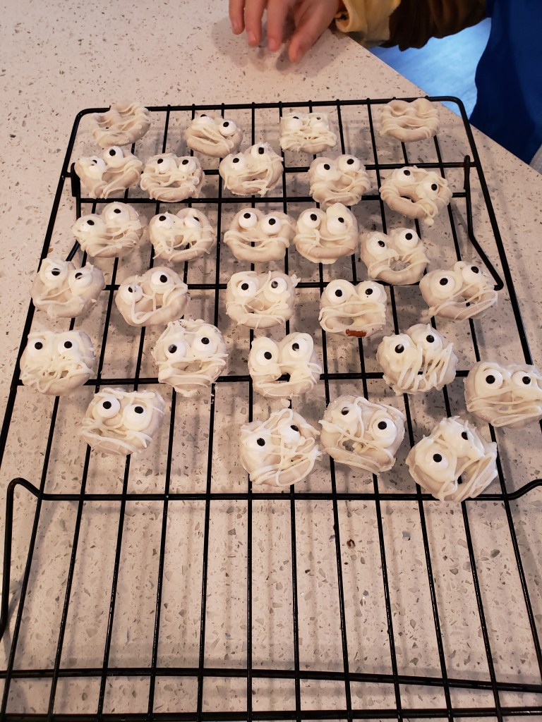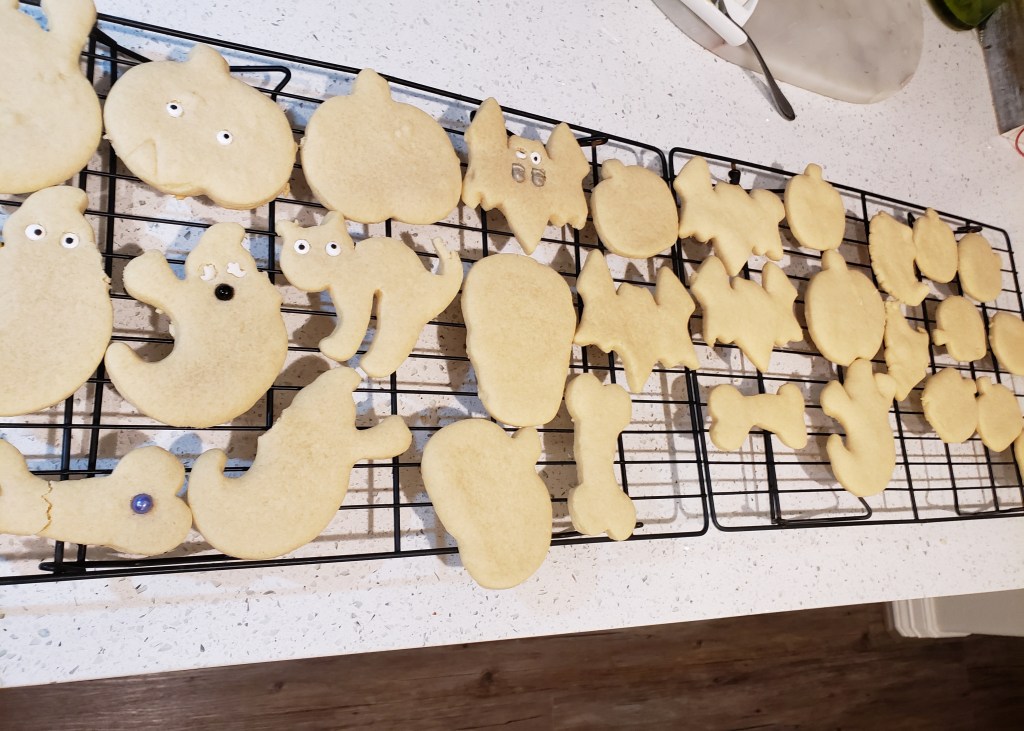 We’ve been doing a lot of other things in the time I haven’t been painting though! Lots of baking with my Tiny Overlord! First is a yellow cake with a pumpkin cheesecake filling and pumpkin pie cream cheese icing. I made it for my friend, and she said it was a big hit! A peanut butter and jelly ice cream pie that has a crunchy, Ritz cracker crust that was absolutely amazing. And halloween cookies with the boy. He loves baking!