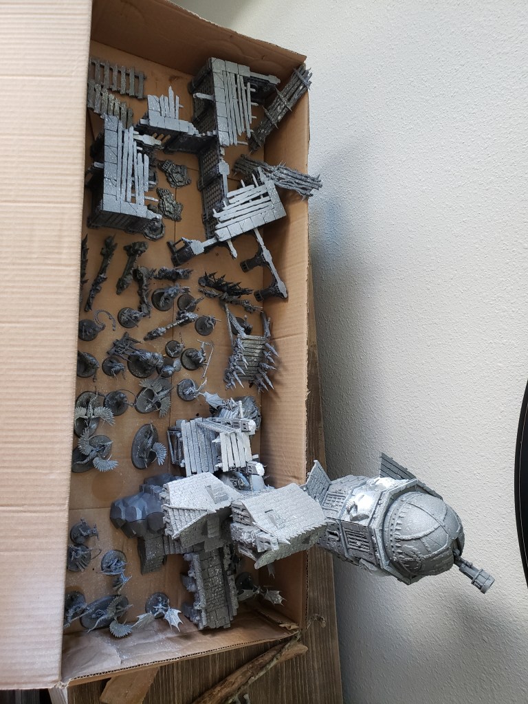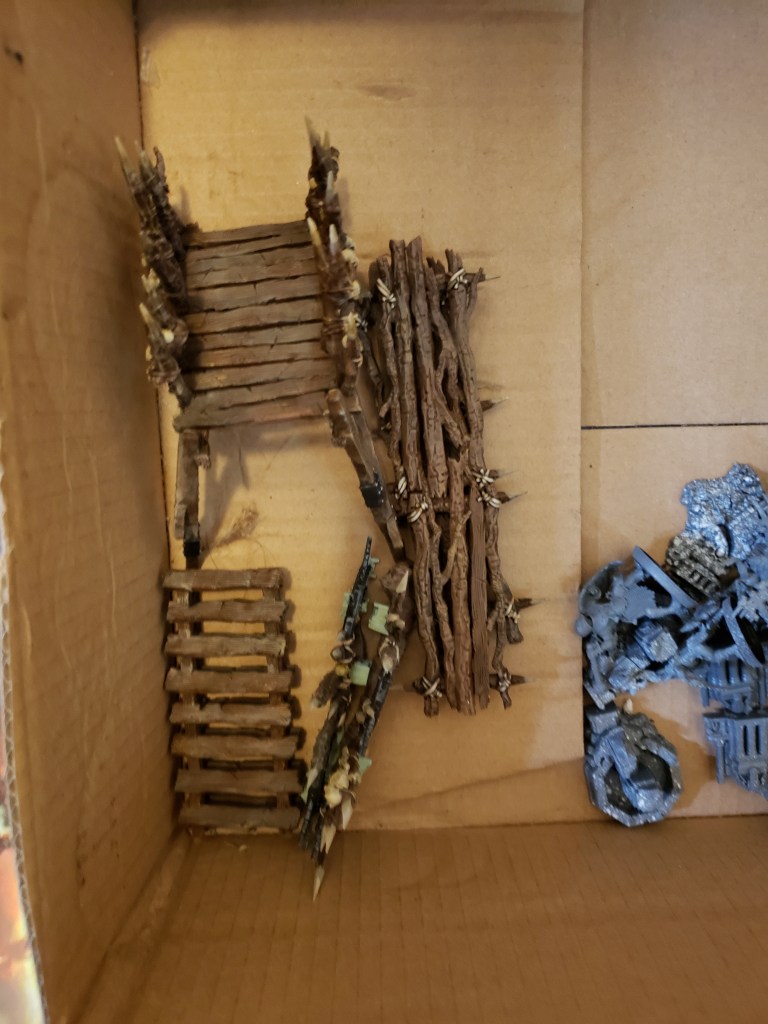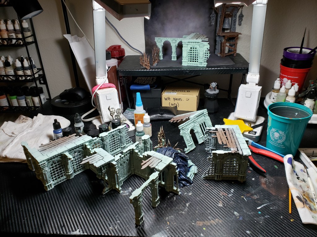 I haven’t been doing a ton of painting lately, but I have gotten a few things done! I finished up a nighthaunt guy, repainted a Hulk to be blue (everything must be blue in the Tiny Overlord’s home), a gnome sign, and some more terrain for warcry!
