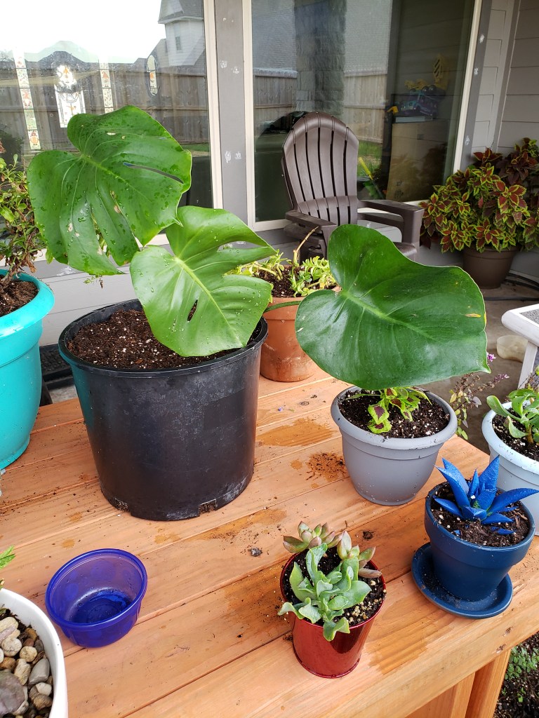 I’ve also continued to work on my green thumb! Got a Monstera cutting and a big planter box done! I’ve got about 30405 succulents going now, so I’m gonna have to start finding them new homes. lol