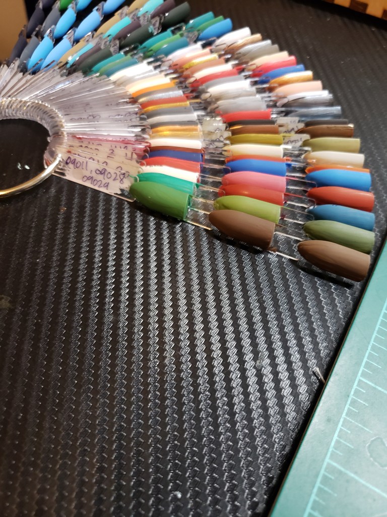 So, it’s super cool and fun. I went ahead and did the swatches in any color combination, but ordered the paints by SKU. Its a different way than I’ve ever done, so I’m interested to see if I like it better that way. I have always grouped my paints by color, but I was running out of room. Now that I’m not worried about the paint groups mixing, I can fit a lot more in the same space.