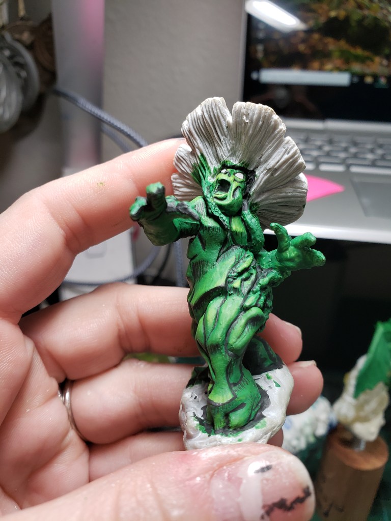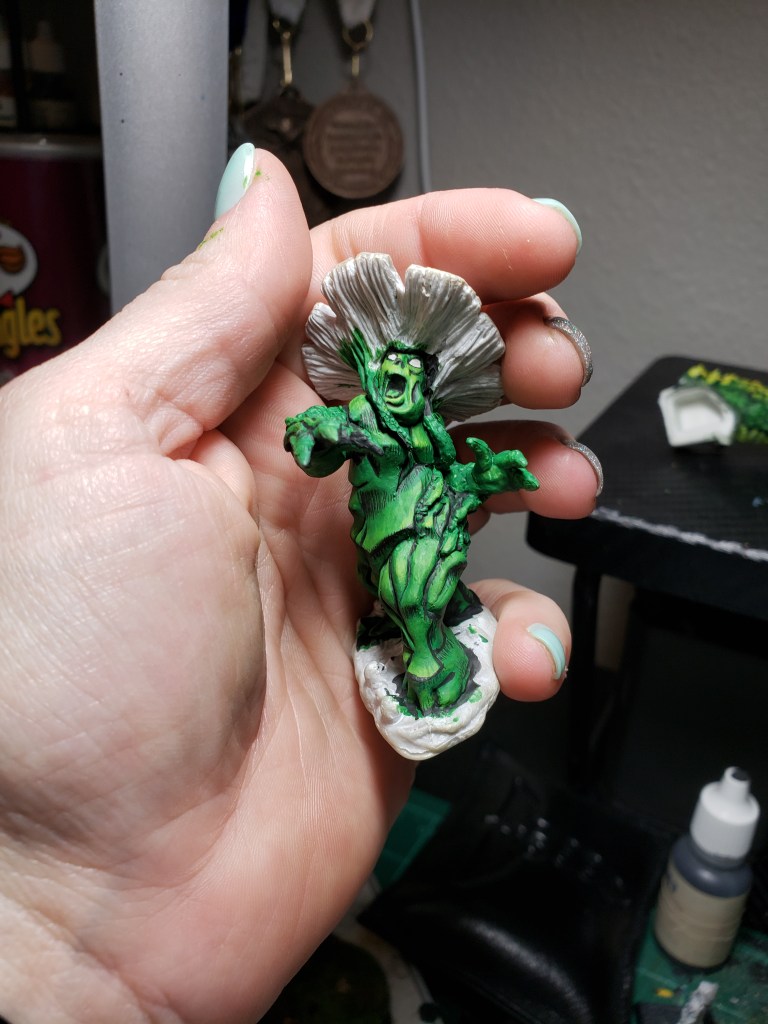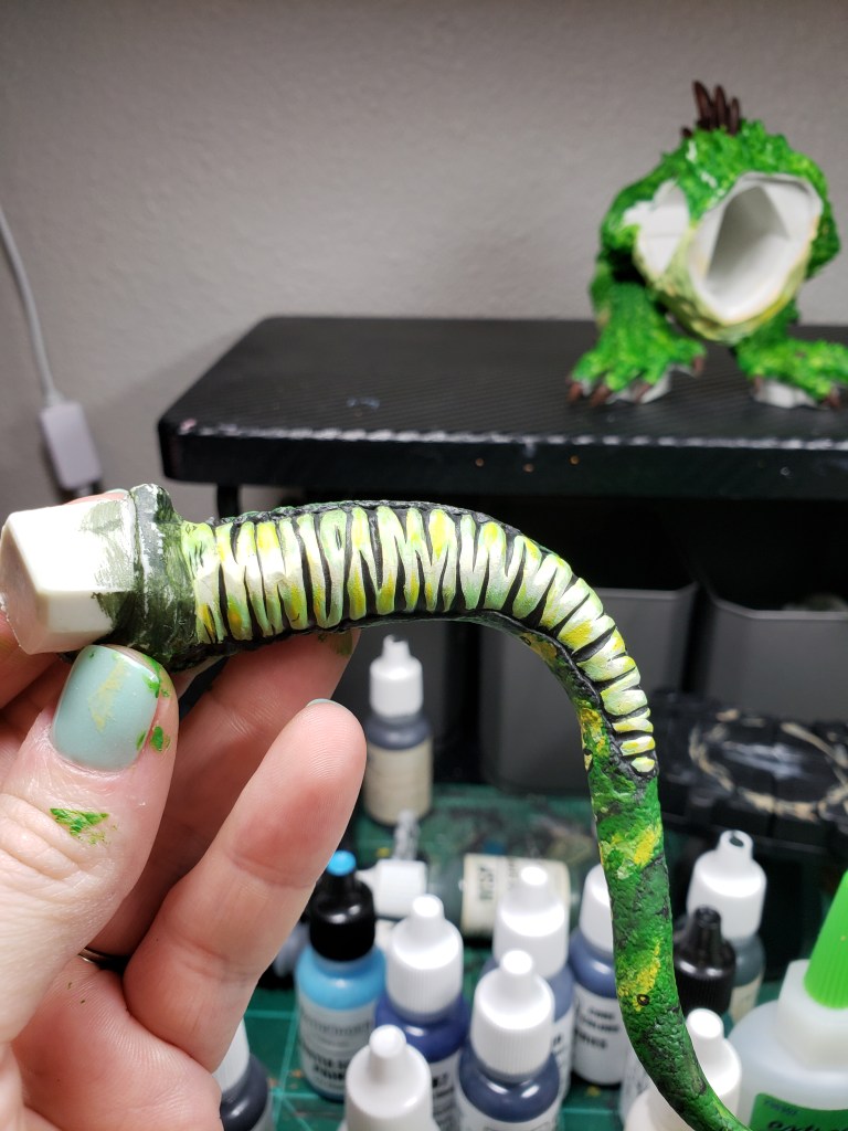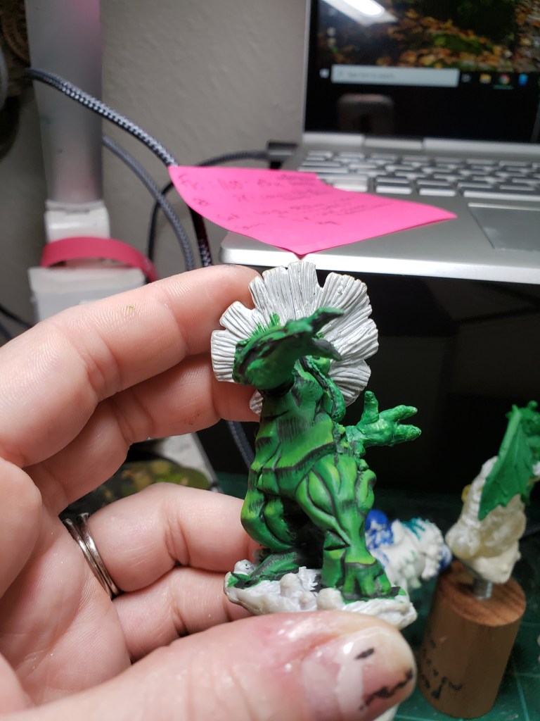 Then I did Rhonda Bender’s scale class. But I got completely derailed about halfway through, so Rocky just got a basecoat, wash, and drybrush. He needs a lot more work. But I love Spruce Green, so he makes me happy.