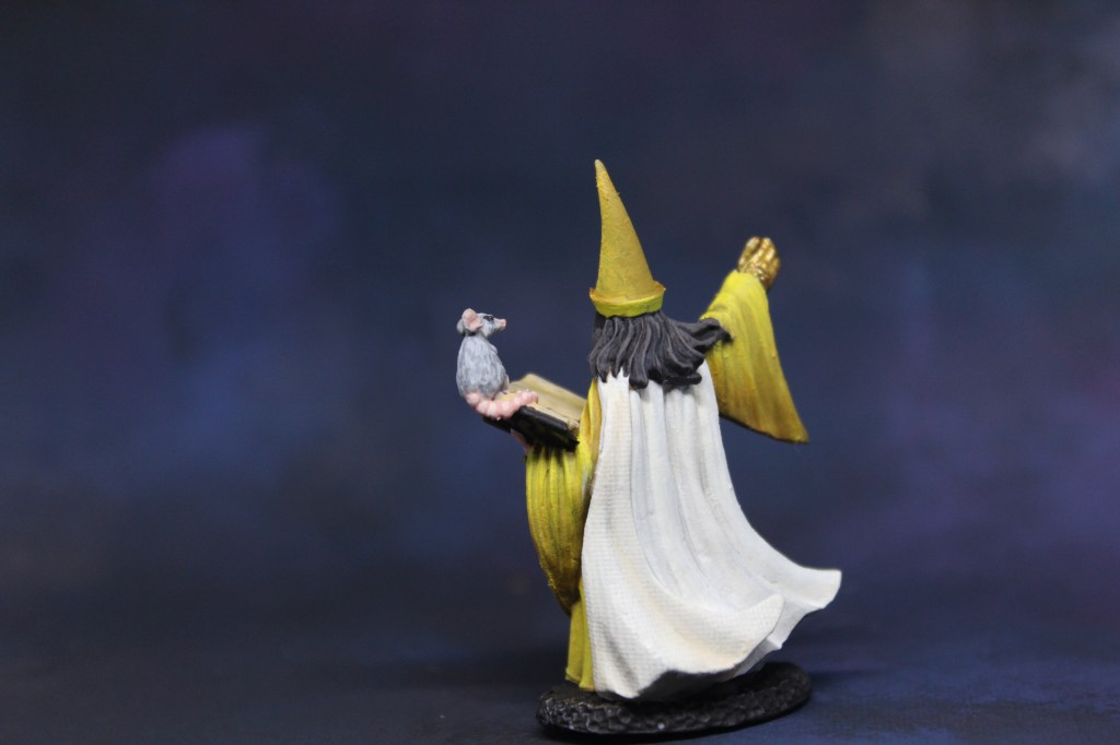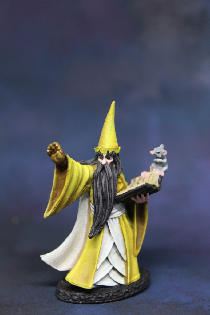 Last, but not least, my March duo mini with MaxStyles. We decided to challenge each other to colors we’re not super comfy with, and ended up both deciding on yellow (and I decided to add white in there cause I’m a sucker for punishment). 🙂 I’m pretty happy with how it turned out, I definitely learned a few things along the way. This was the first Bones USA mini that had some pretty gnarly mold lines. I ordered 2, but they both had pretty bad ones. They also suffer from the original bones problem that they don’t sand well, so if you can’t just cut it off with a scalpel, you have to kind of sand it in opposite directions until it peels off…So he has a gold right hand instead of a regular one. This guy has the best eyebrows ever, and I love the little mouse. I may paint another one up to a more competition quality later. We shall see.