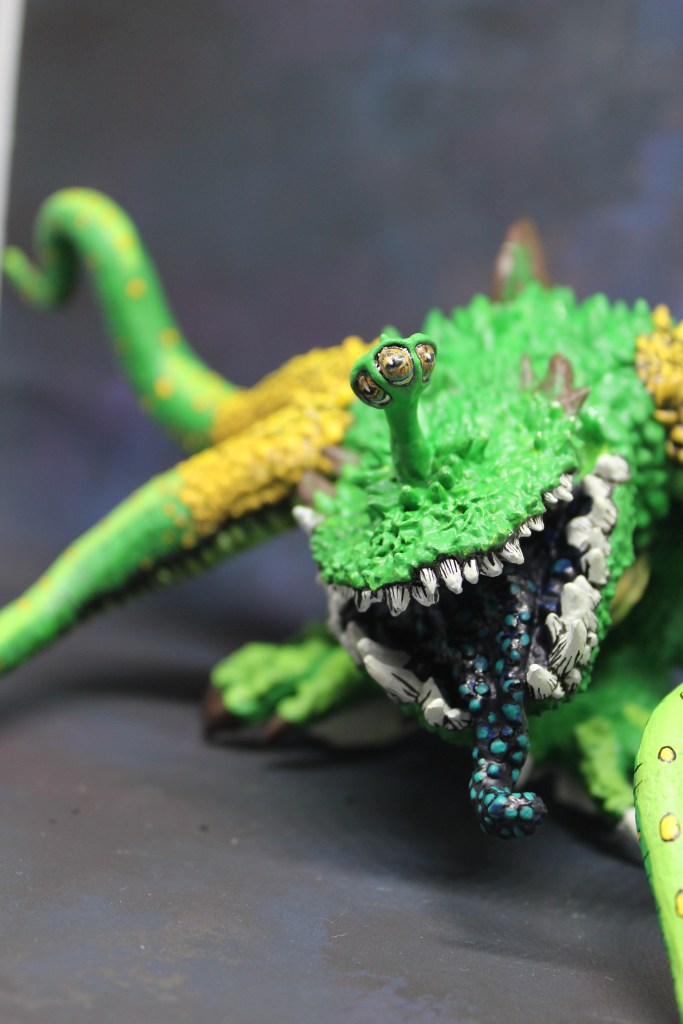 I don’t remember what I posted last, and I can’t be bothered to look, so just look at more pictures of his greeniness! I did his eyes and more lining and gap filling.