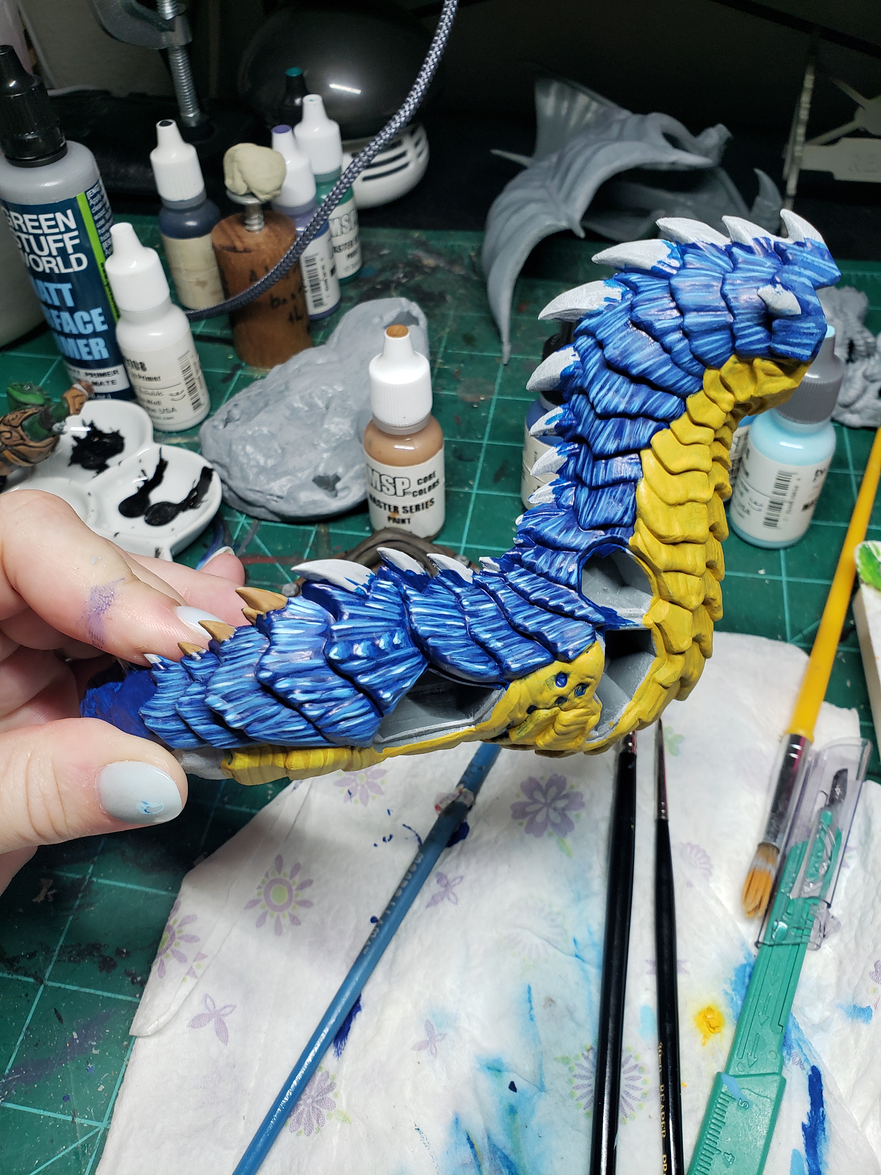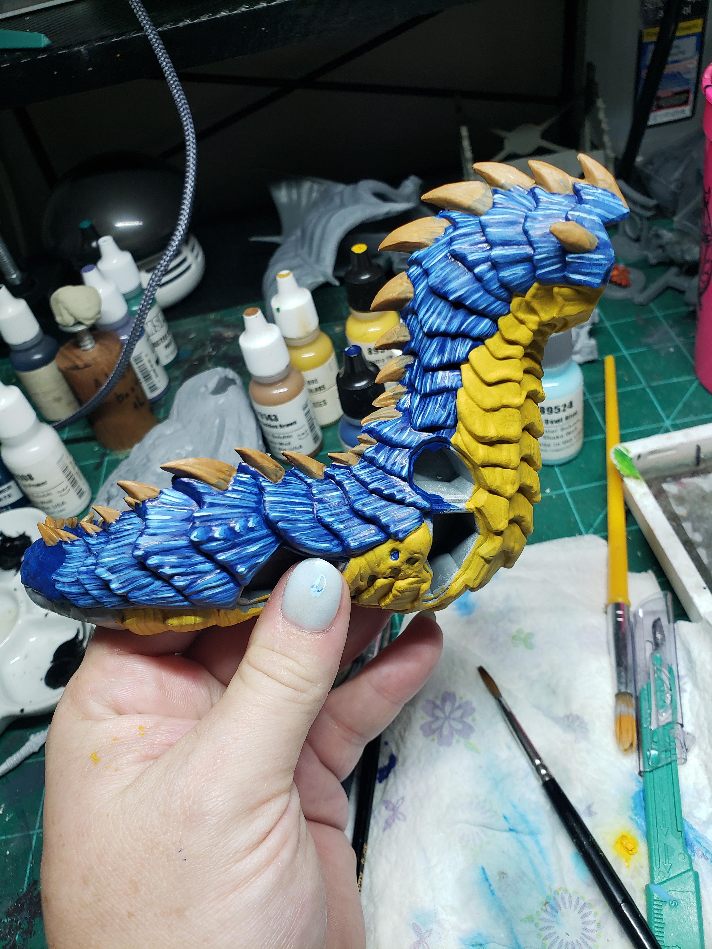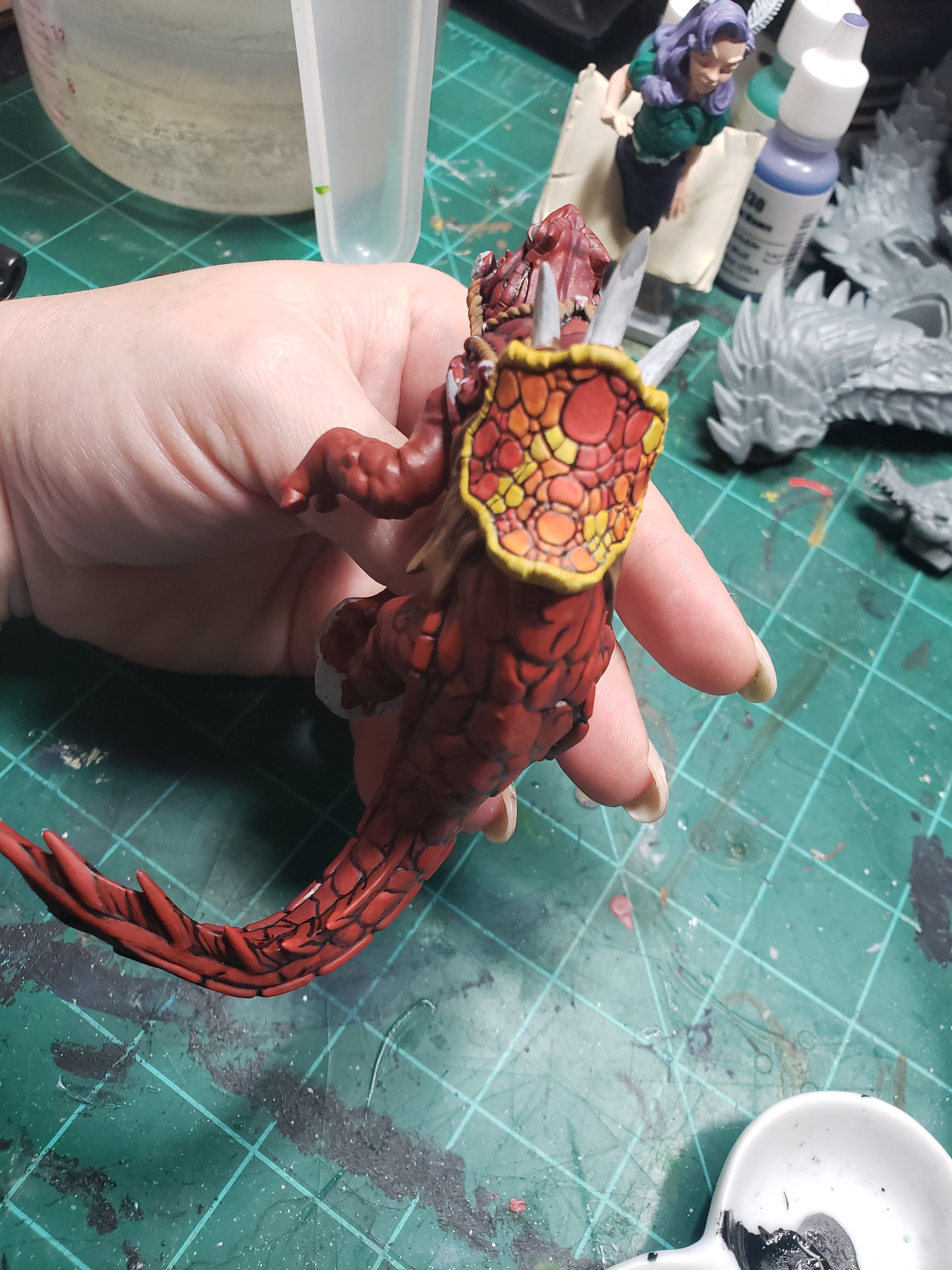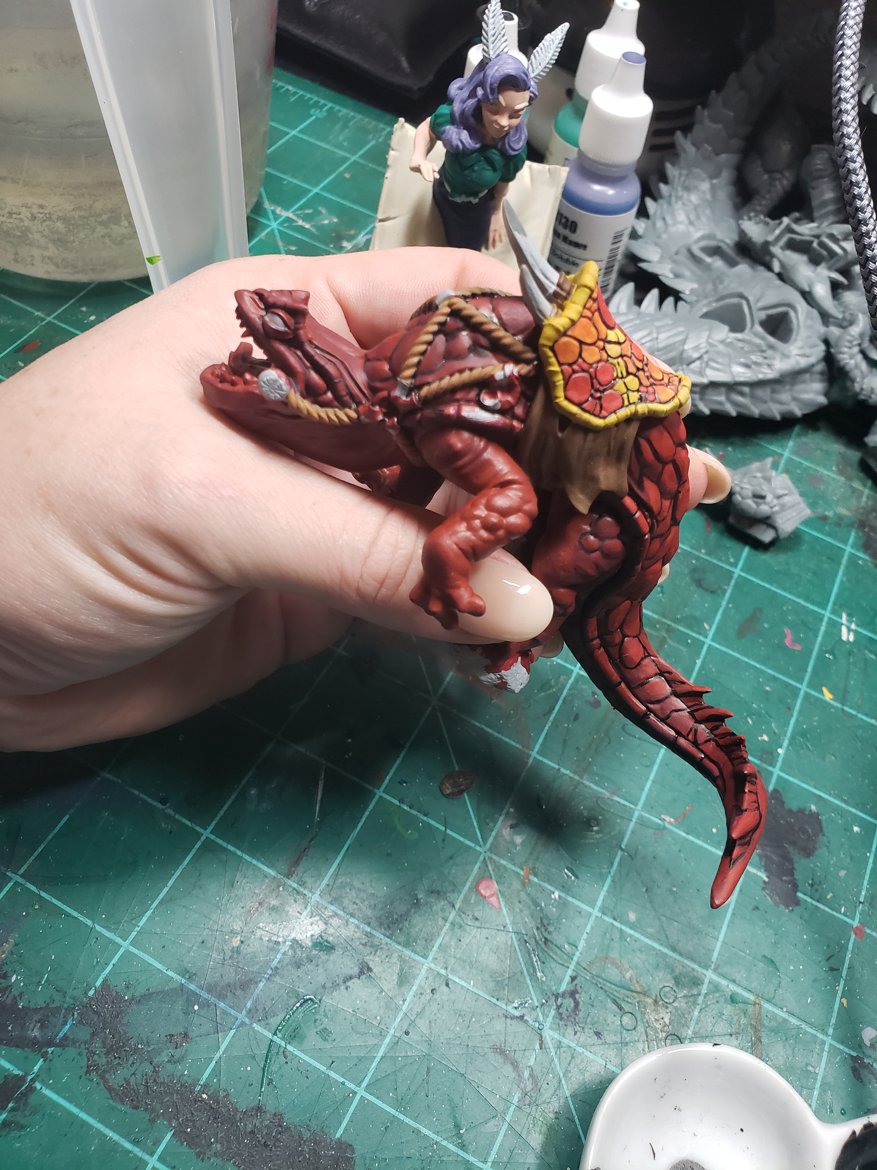 This guy is super fun! I bought all 3 of them, and had the printers make them like 159% bigger or something. 🙂 I wanted big salamanders! I’m working on this one being bright red. I haven’t decided if I’m going to keep the red saddle or go with another color… just not sure if that’s gonna give enough contrast.