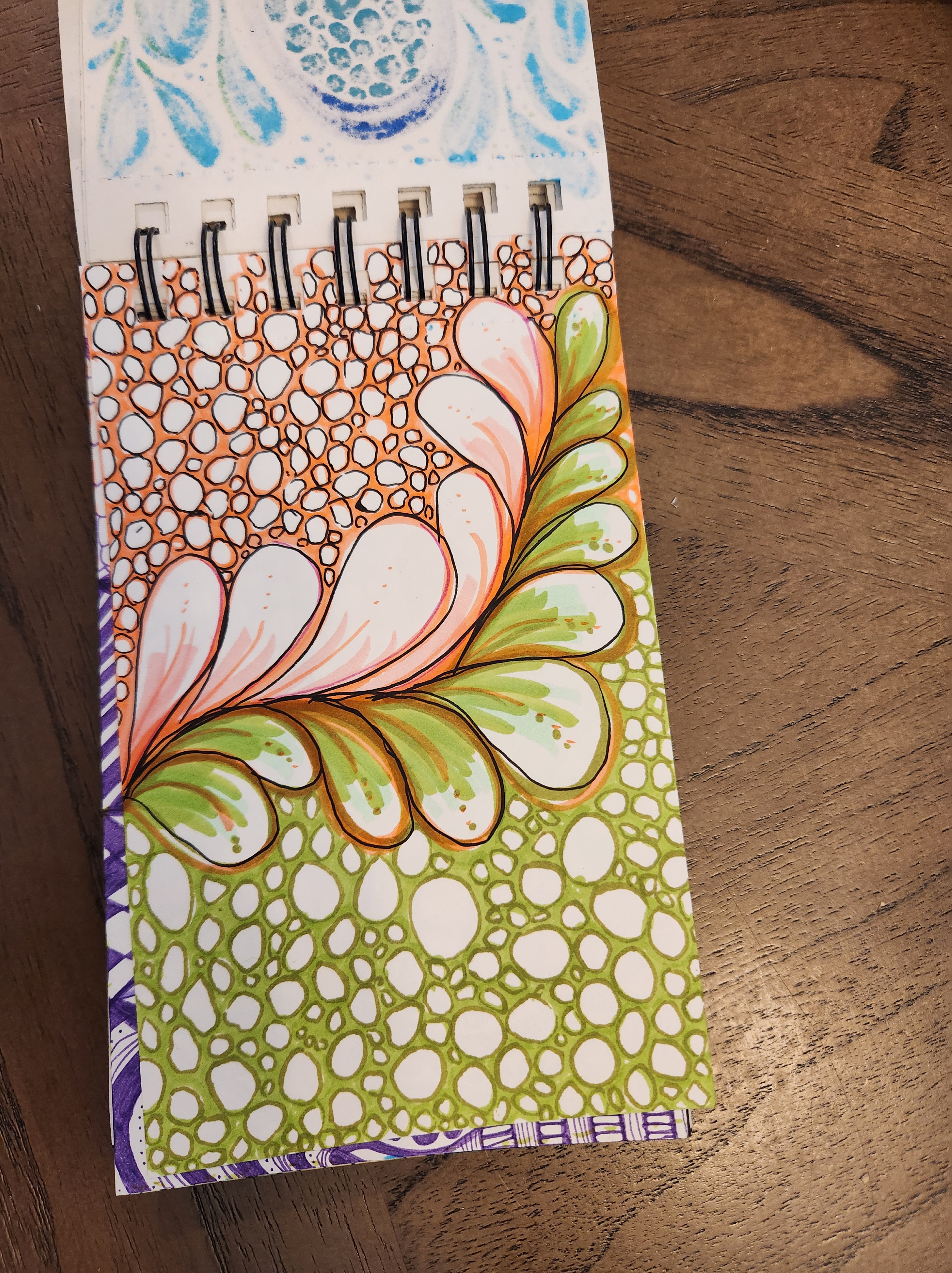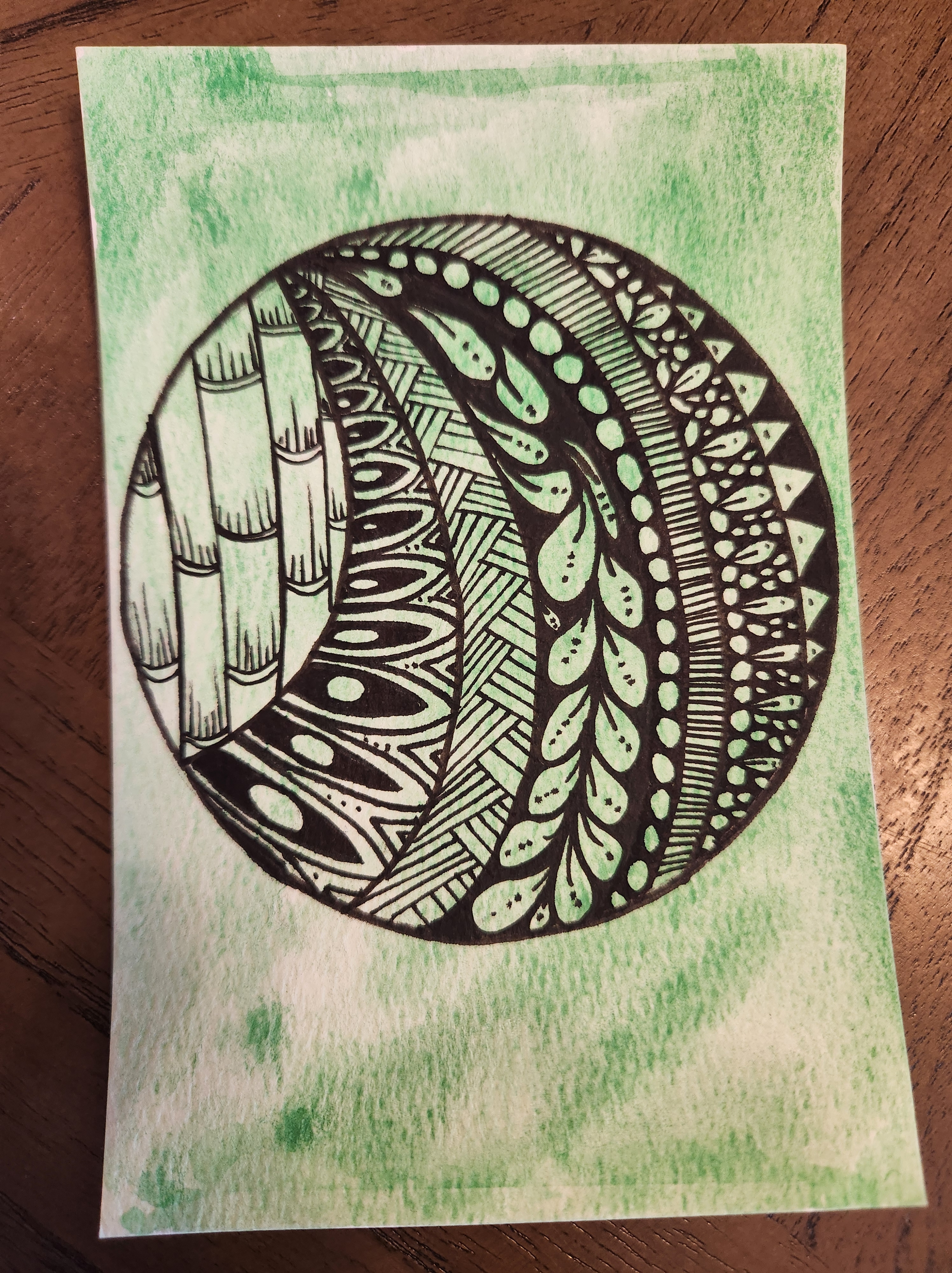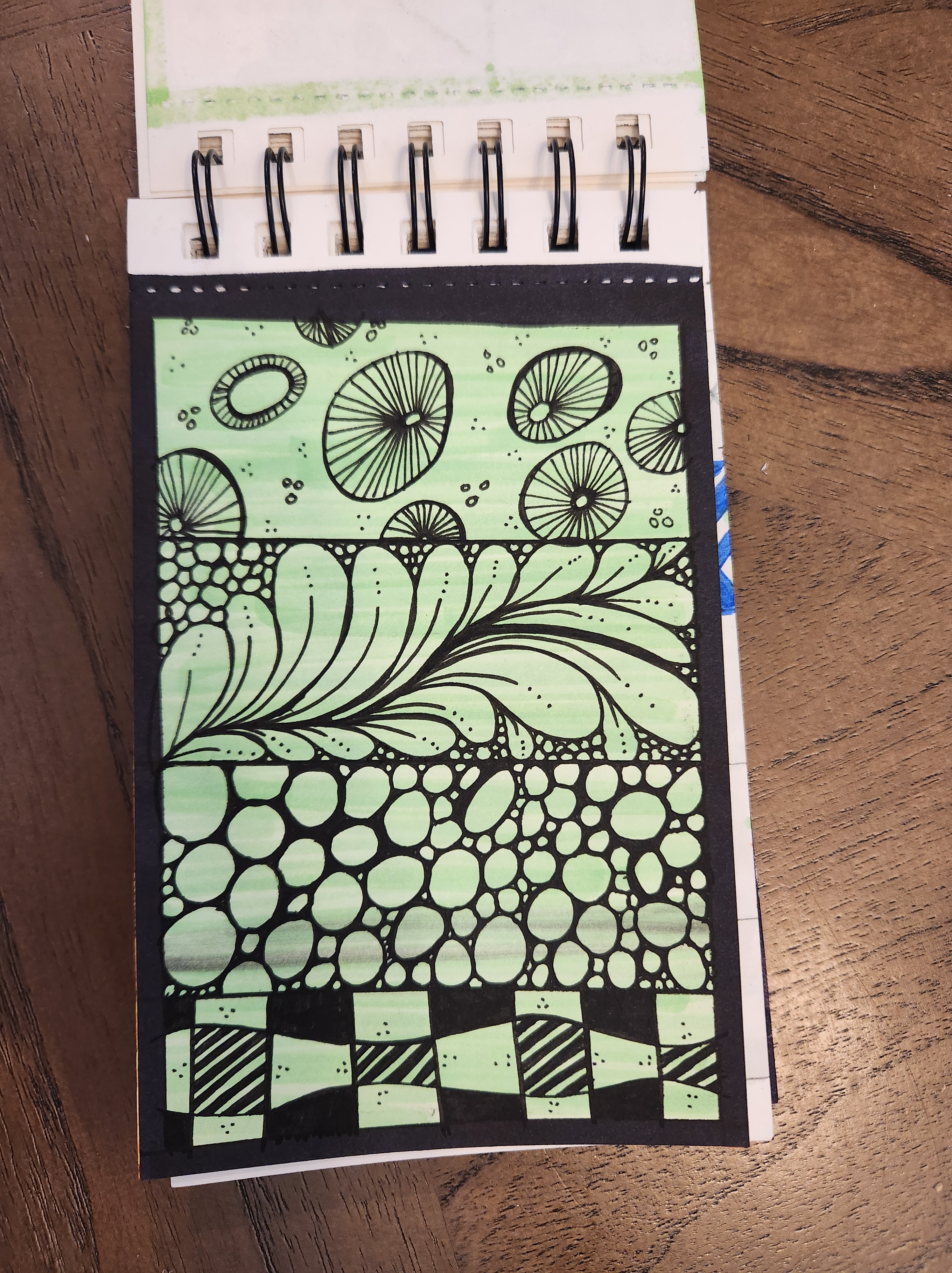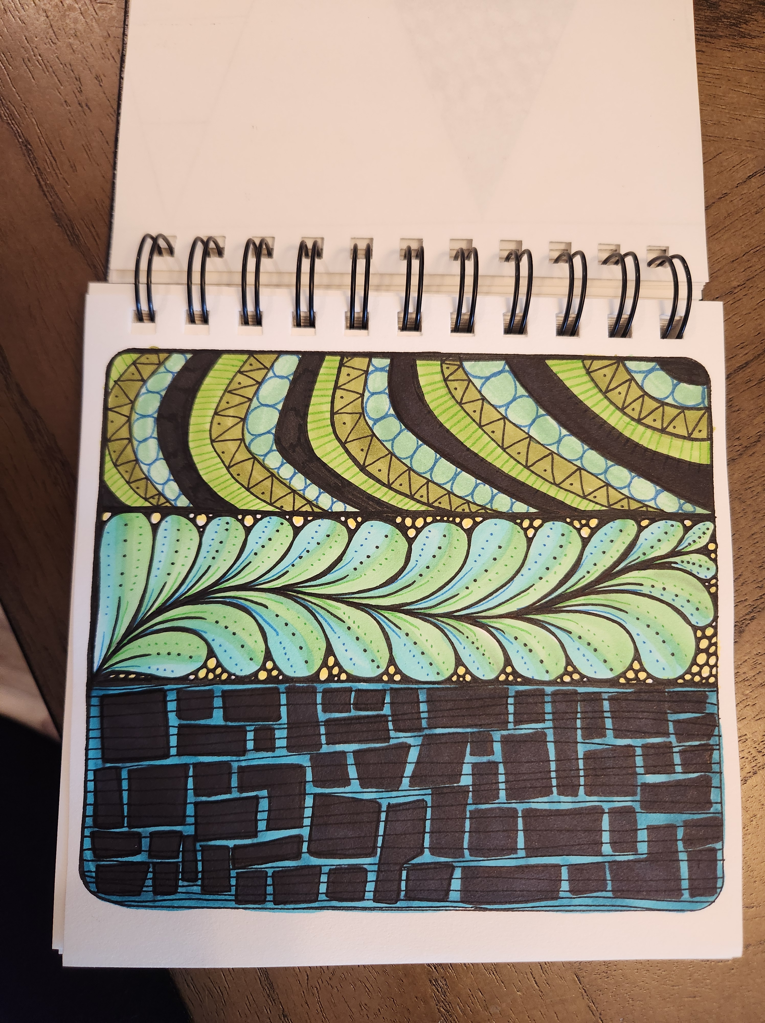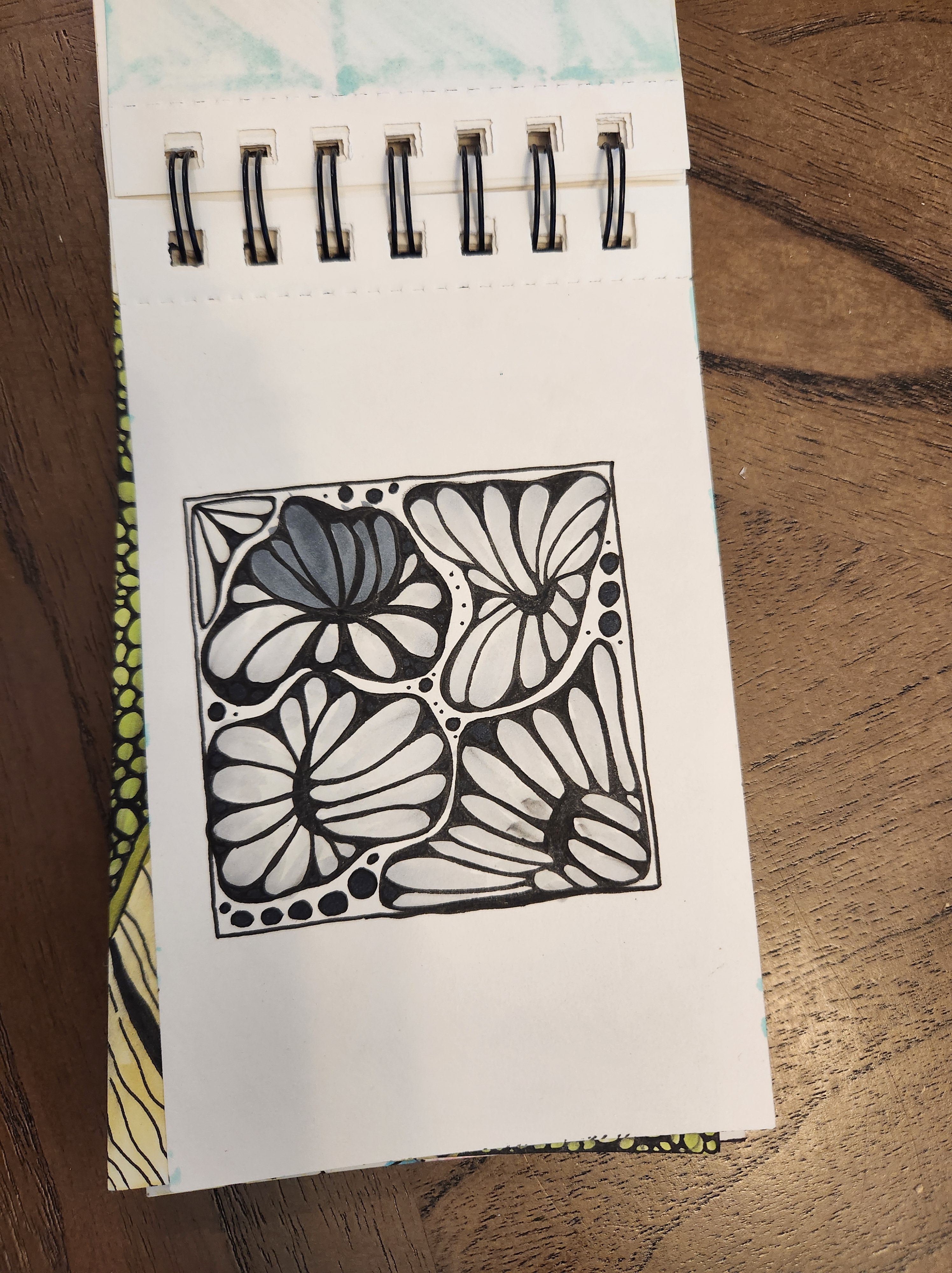 It is a lot, a LOT of pictures. So I hope you’re ready for some serious zentangles. Lol. I do recommend those by the way, as they gave me kind of a free form space to start from. I also really like Tombow fudenosuke brush pens the best of everything I tried. I had a bunch of micron pens laying around so I used them at first, but I did change quickly.