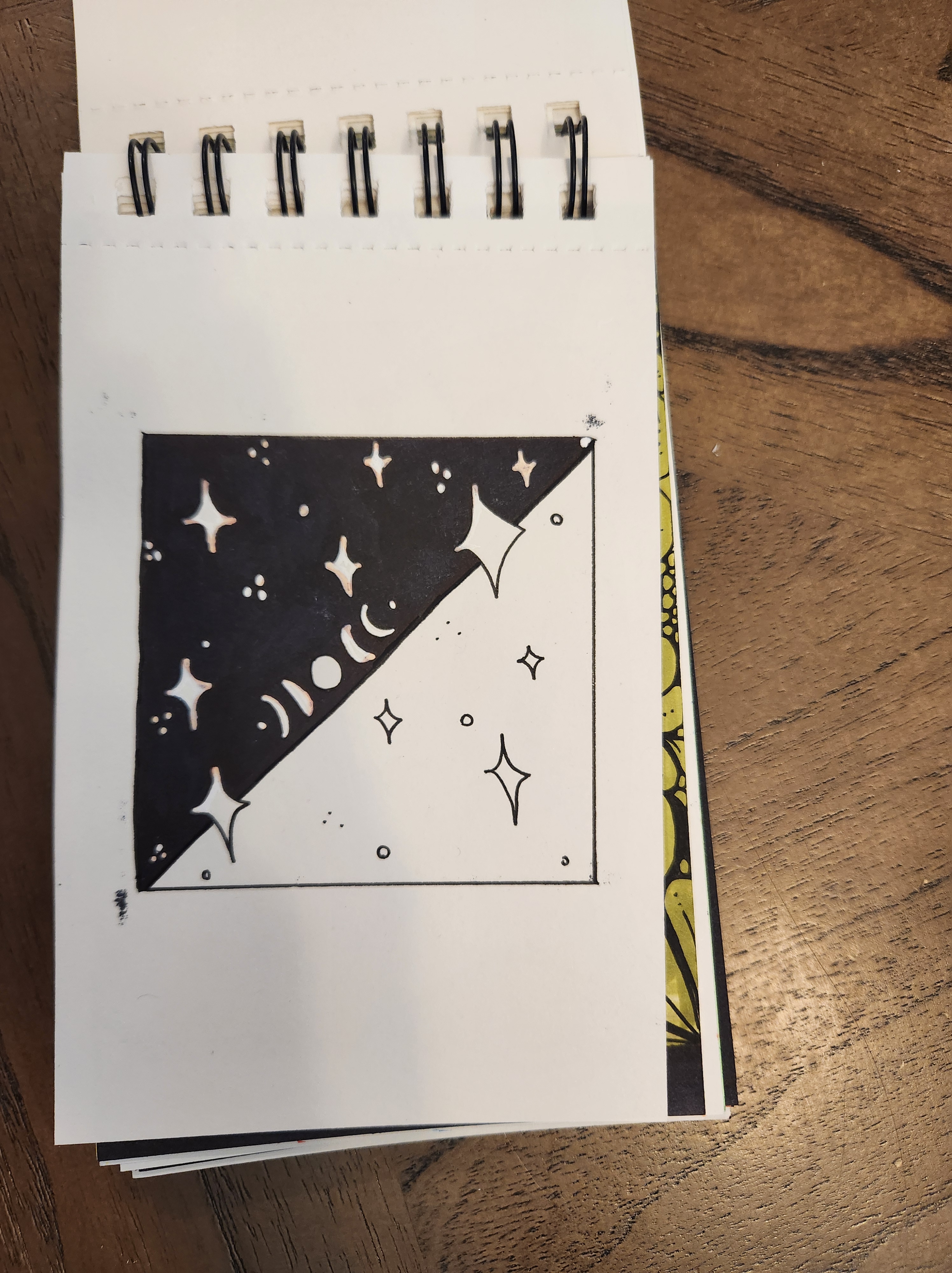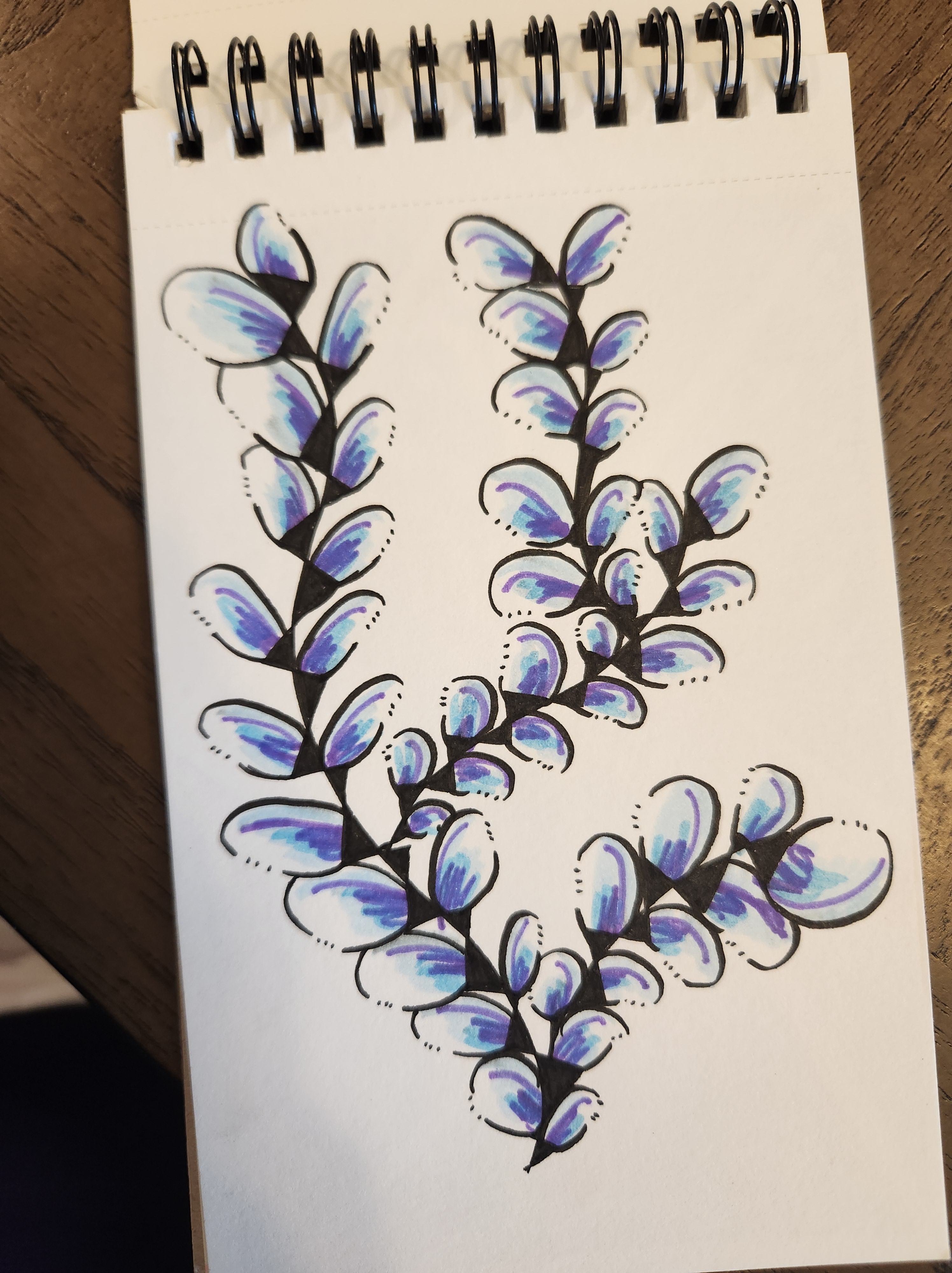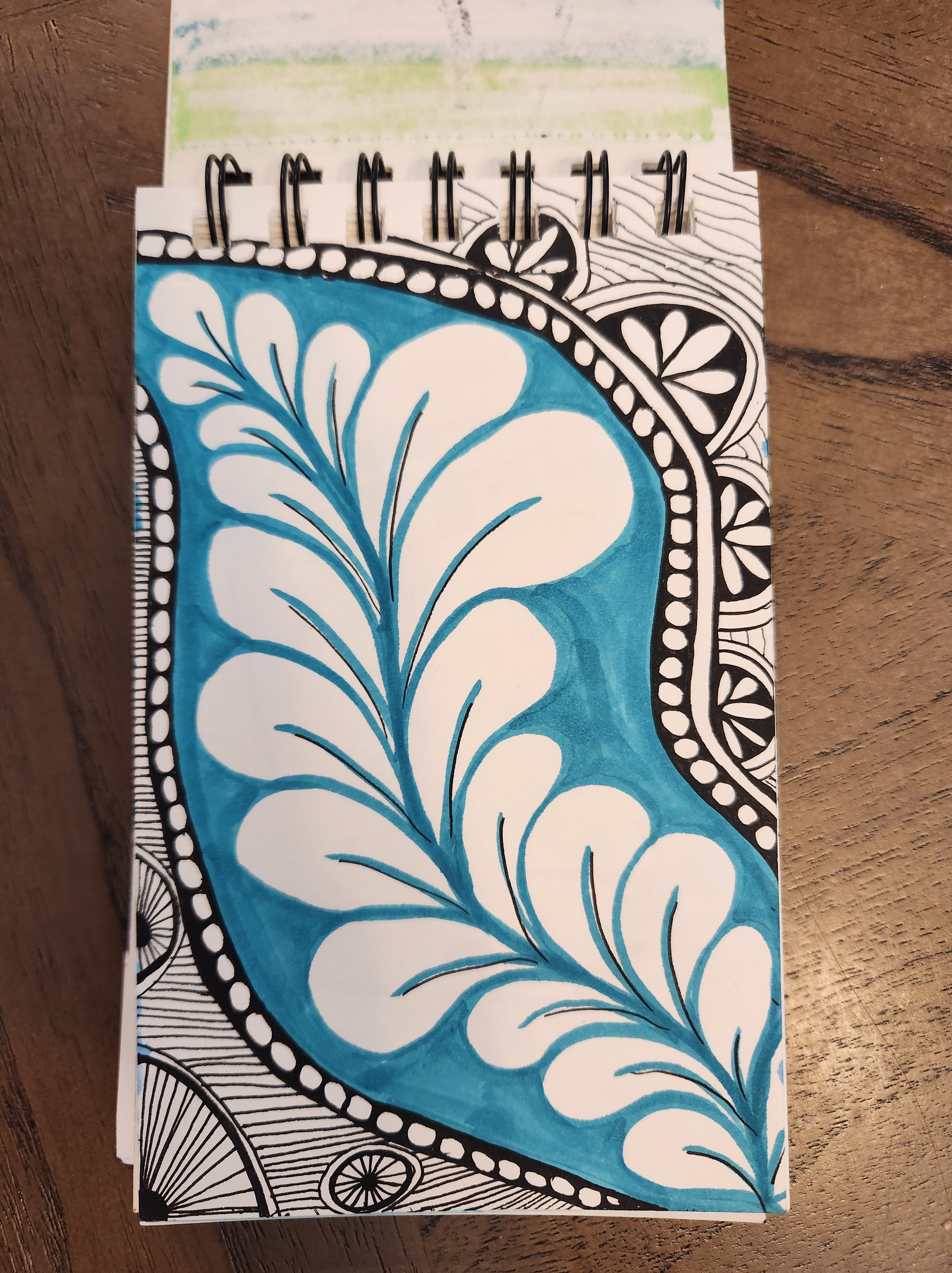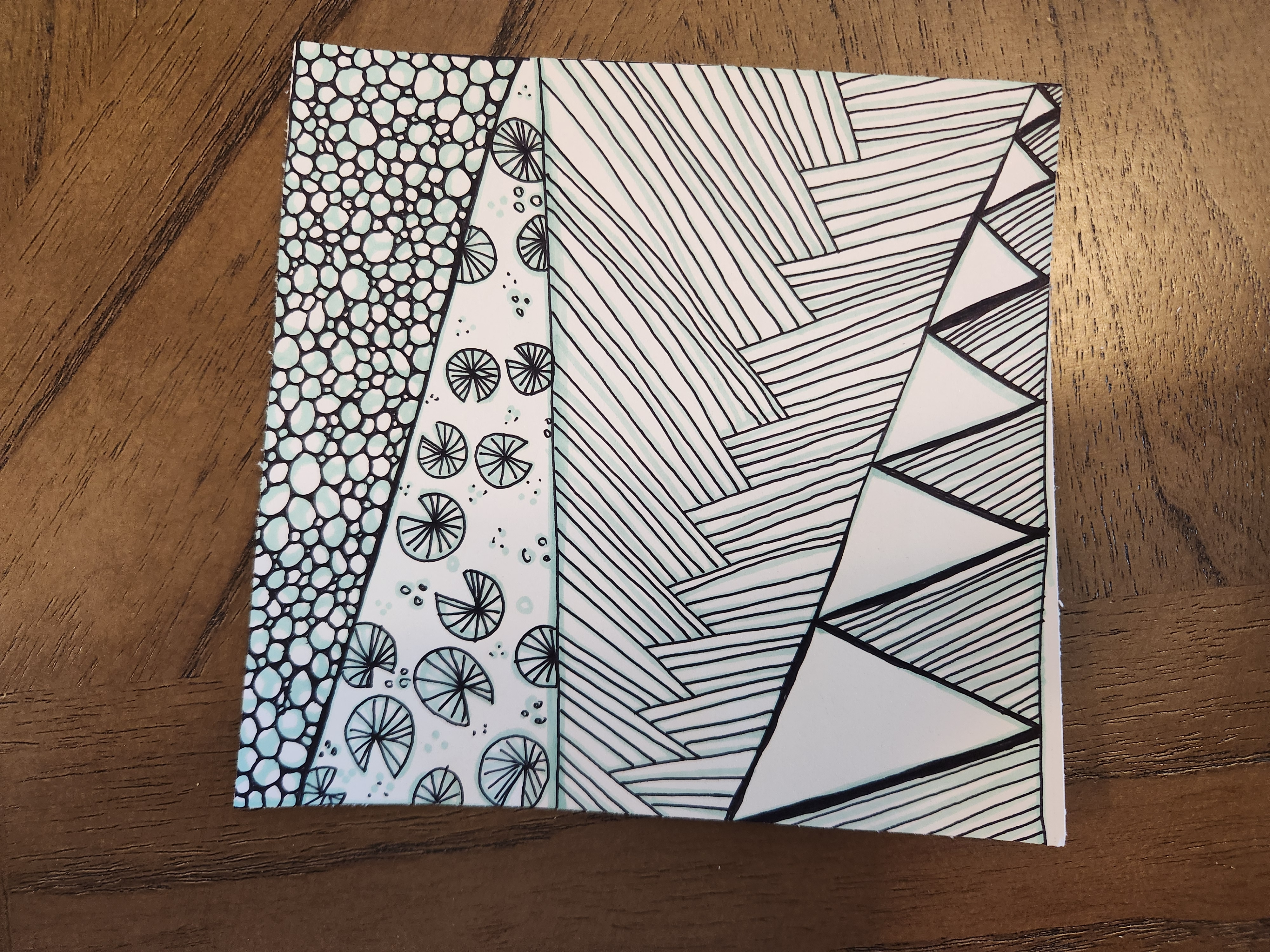 It is a lot, a LOT of pictures. So I hope you’re ready for some serious zentangles. Lol. I do recommend those by the way, as they gave me kind of a free form space to start from. I also really like Tombow fudenosuke brush pens the best of everything I tried. I had a bunch of micron pens laying around so I used them at first, but I did change quickly.