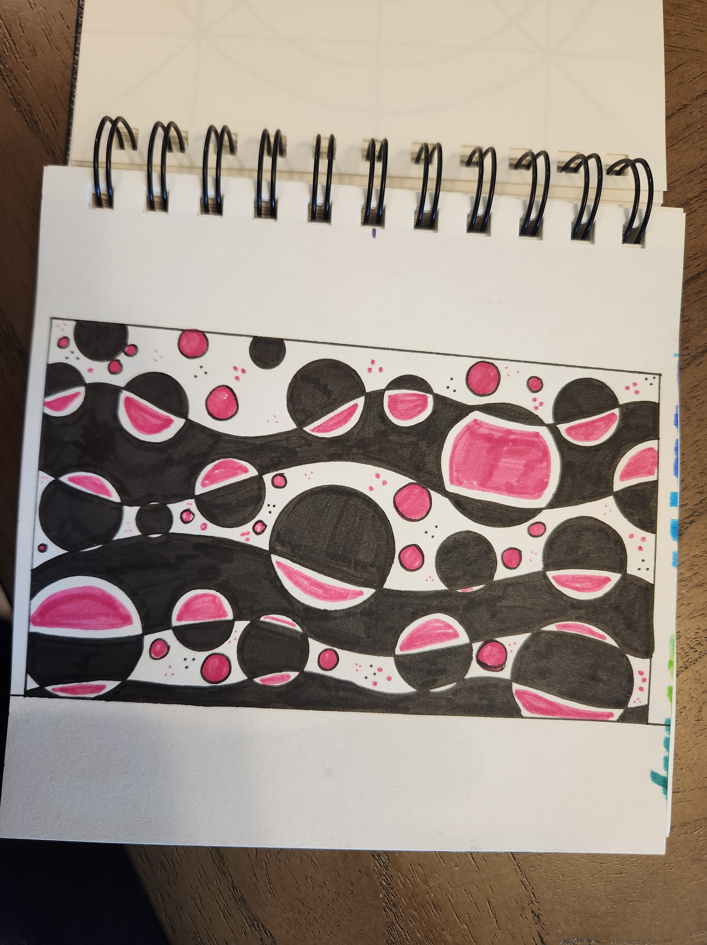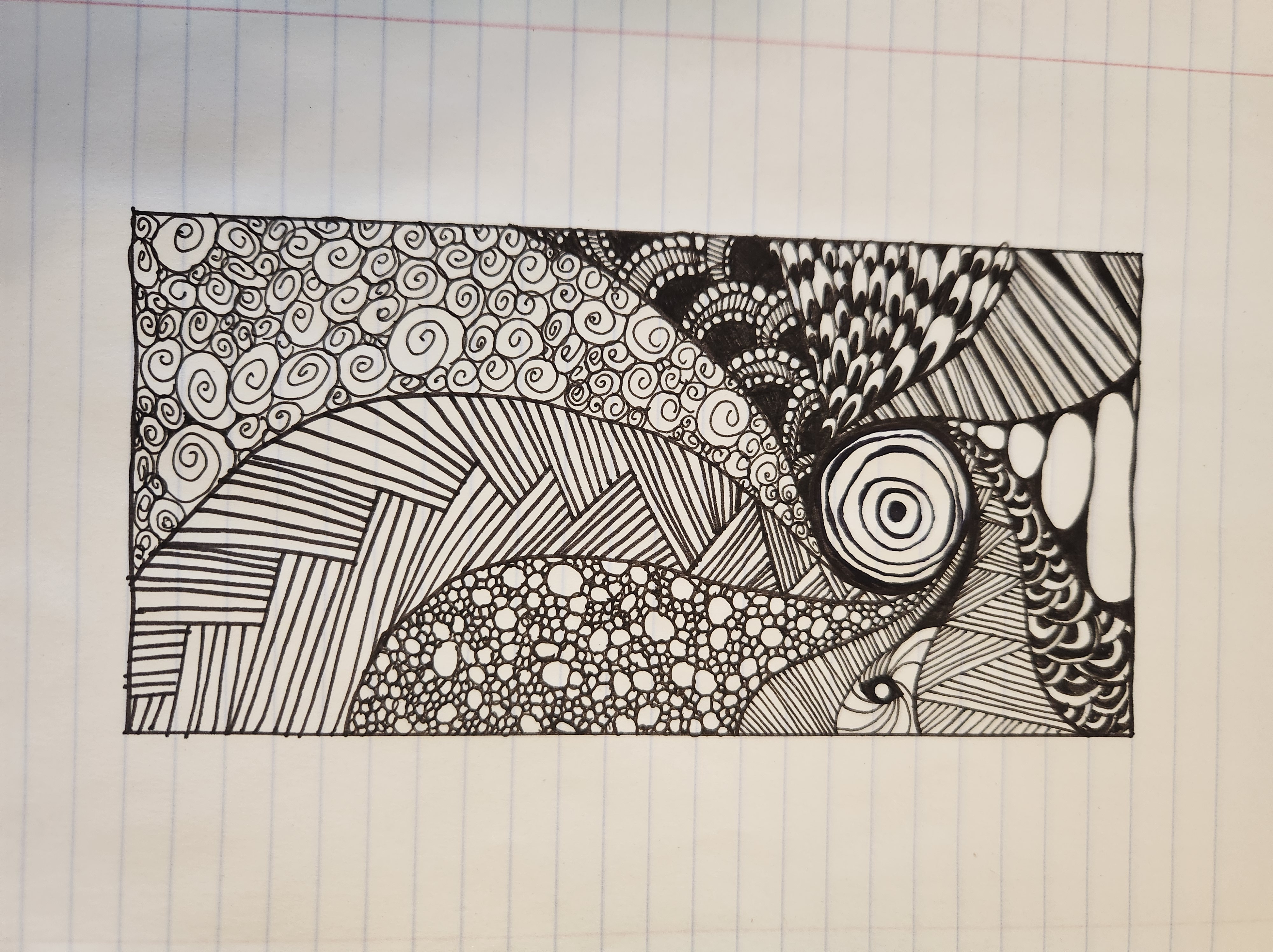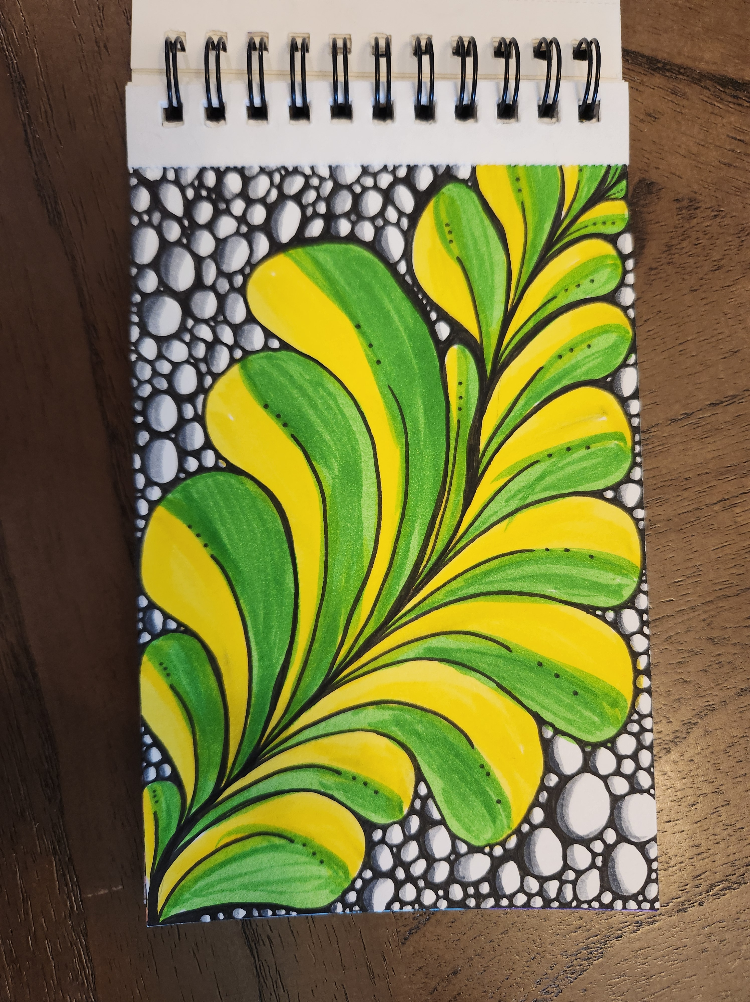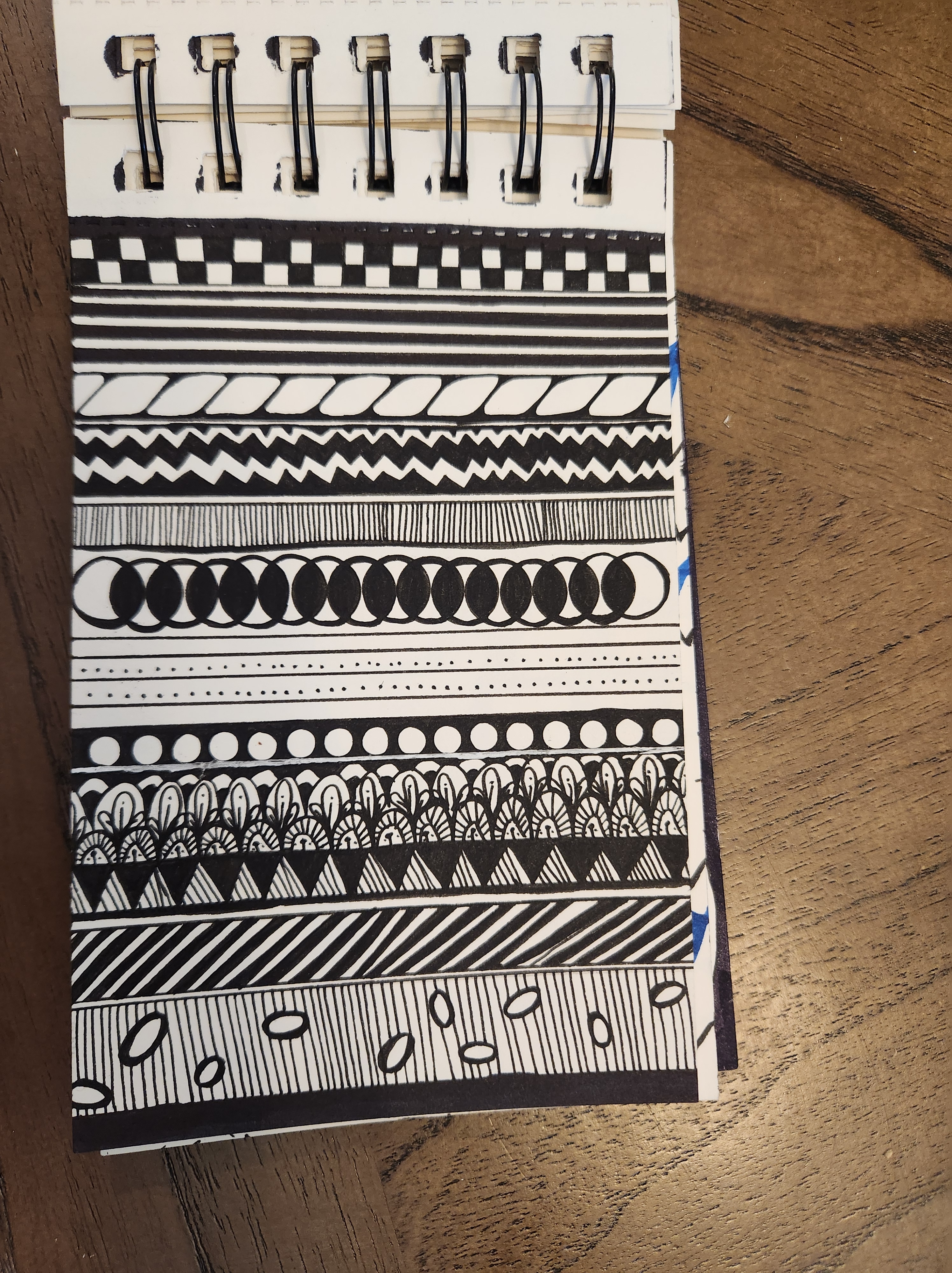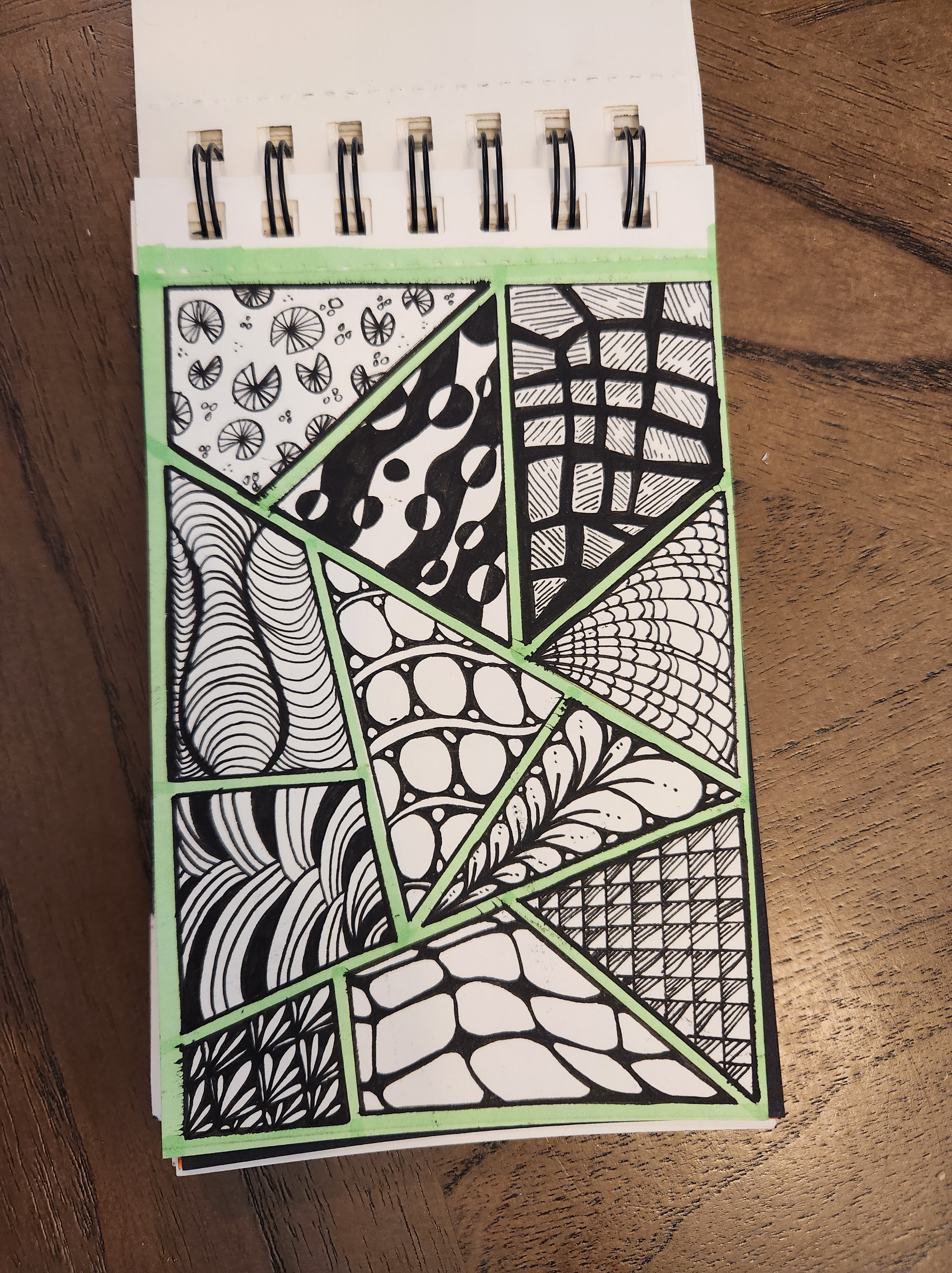 It is a lot, a LOT of pictures. So I hope you’re ready for some serious zentangles. Lol. I do recommend those by the way, as they gave me kind of a free form space to start from. I also really like Tombow fudenosuke brush pens the best of everything I tried. I had a bunch of micron pens laying around so I used them at first, but I did change quickly.