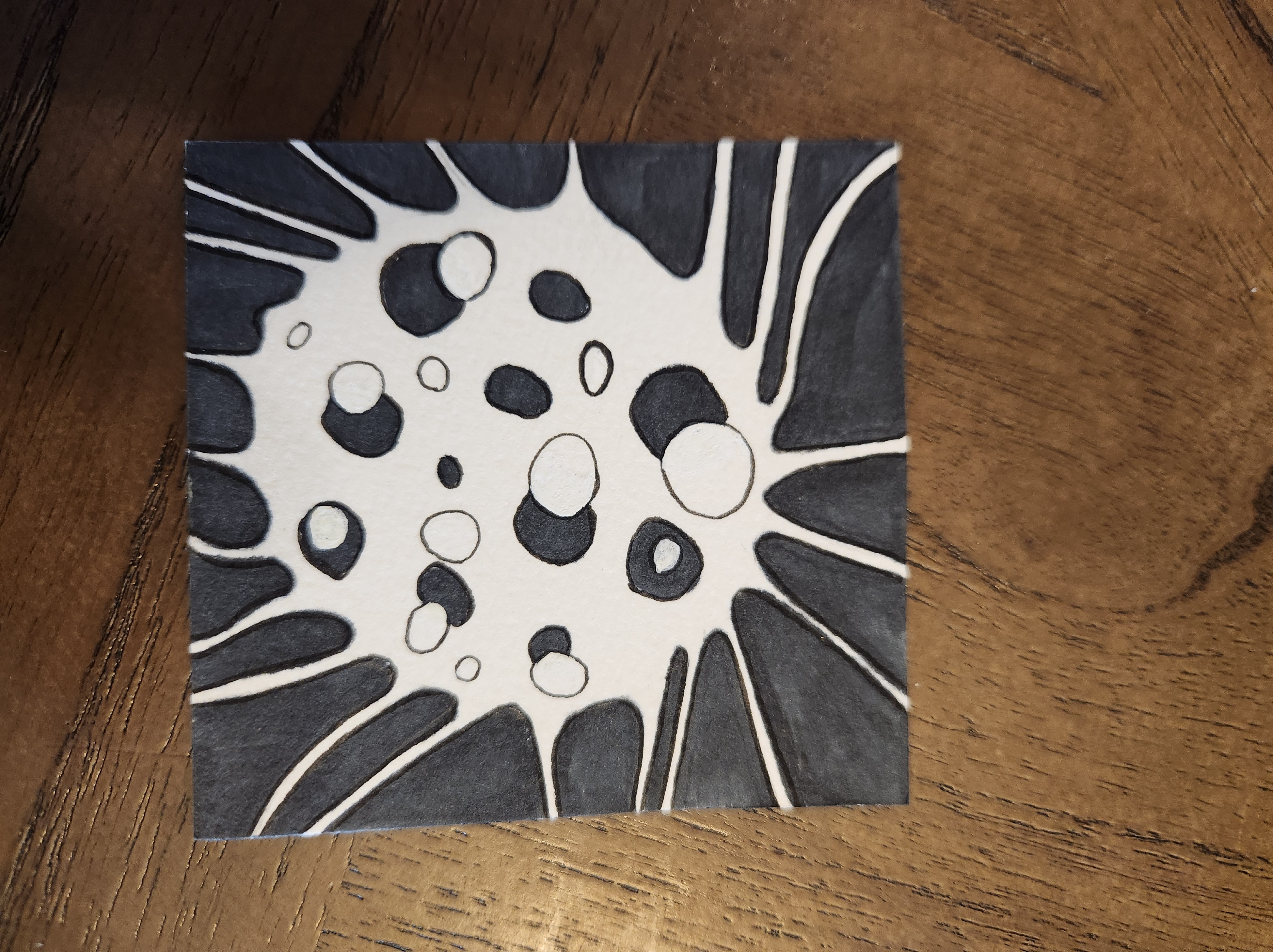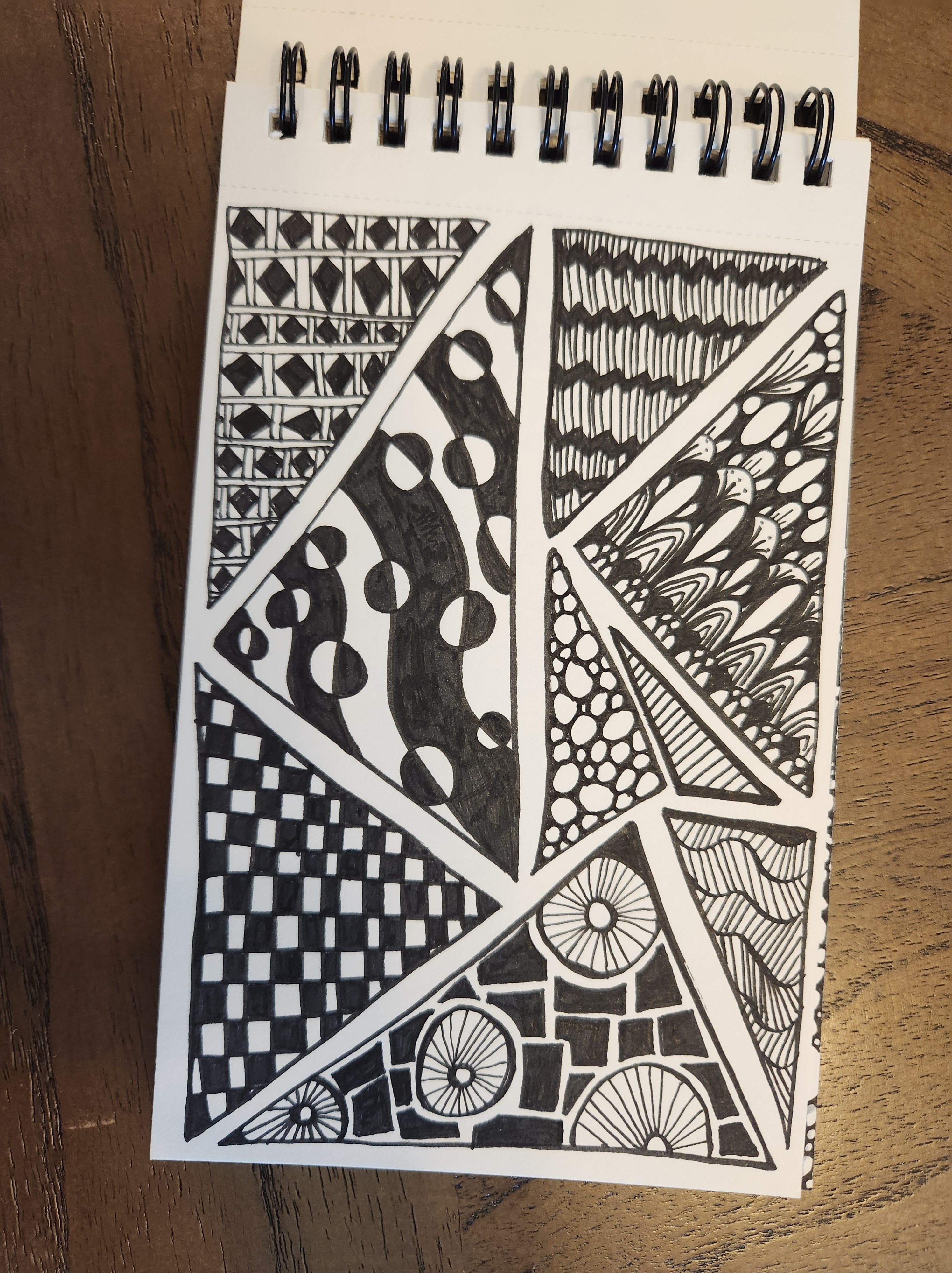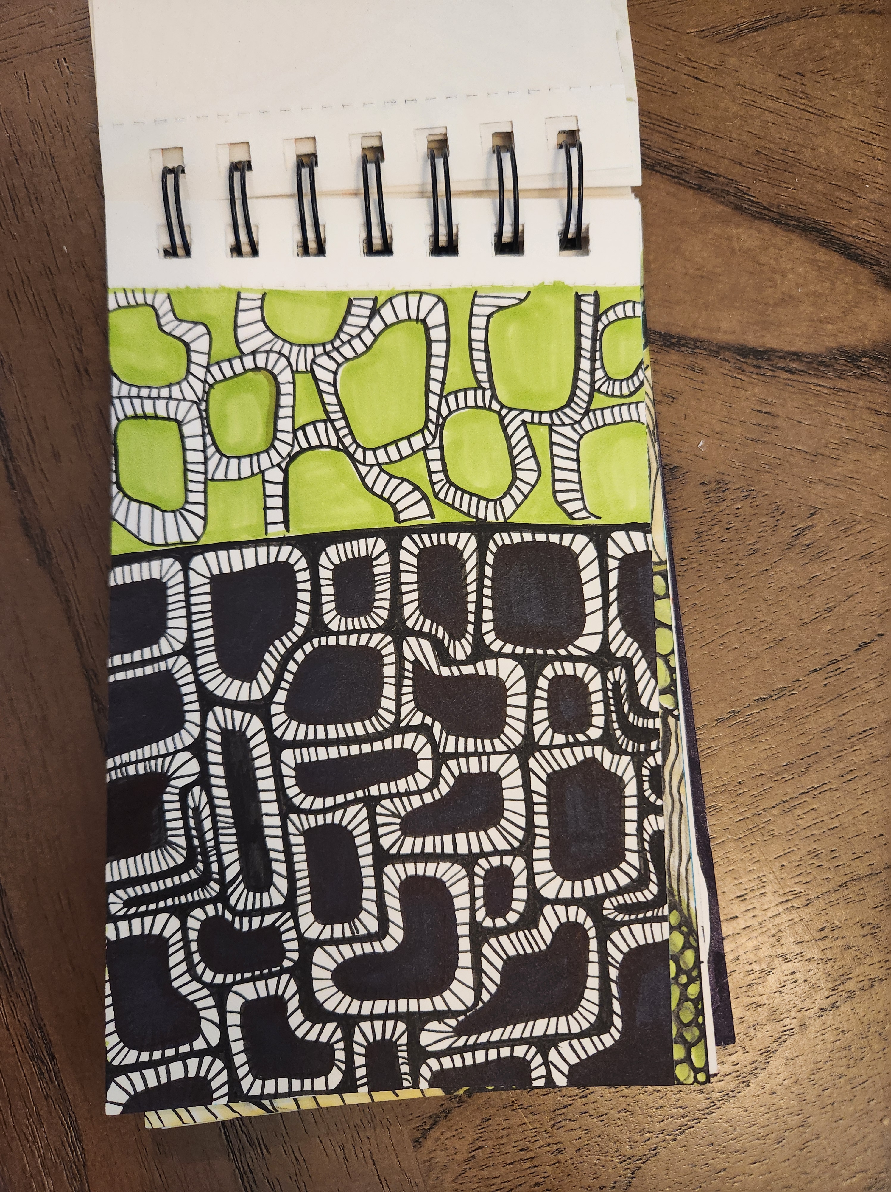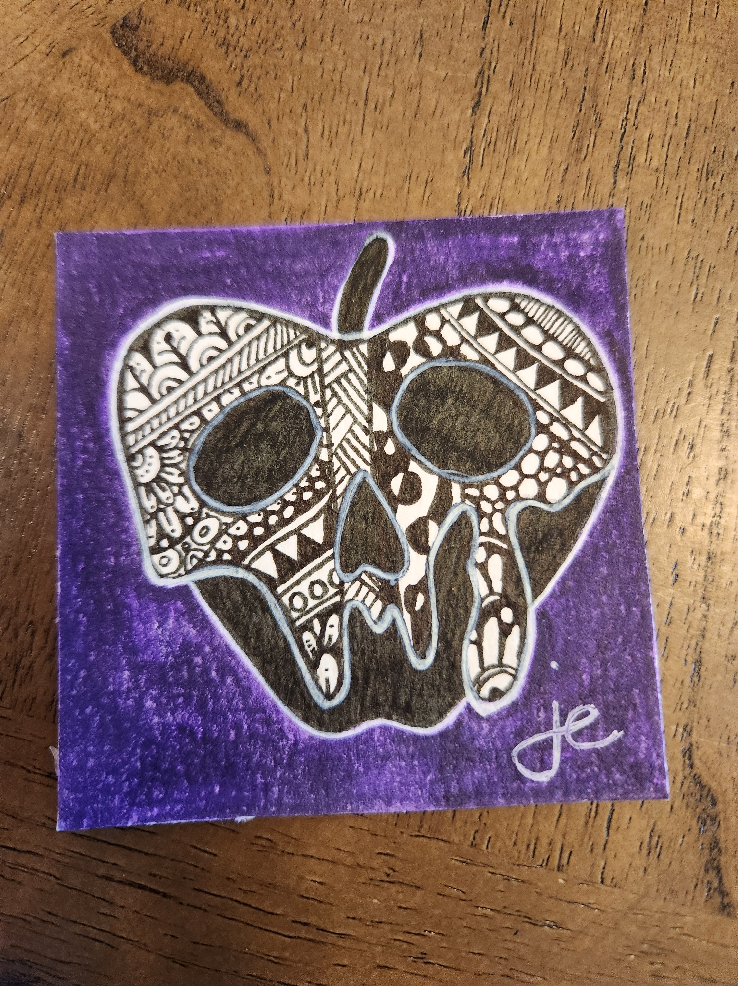 It is a lot, a LOT of pictures. So I hope you’re ready for some serious zentangles. Lol. I do recommend those by the way, as they gave me kind of a free form space to start from. I also really like Tombow fudenosuke brush pens the best of everything I tried. I had a bunch of micron pens laying around so I used them at first, but I did change quickly.