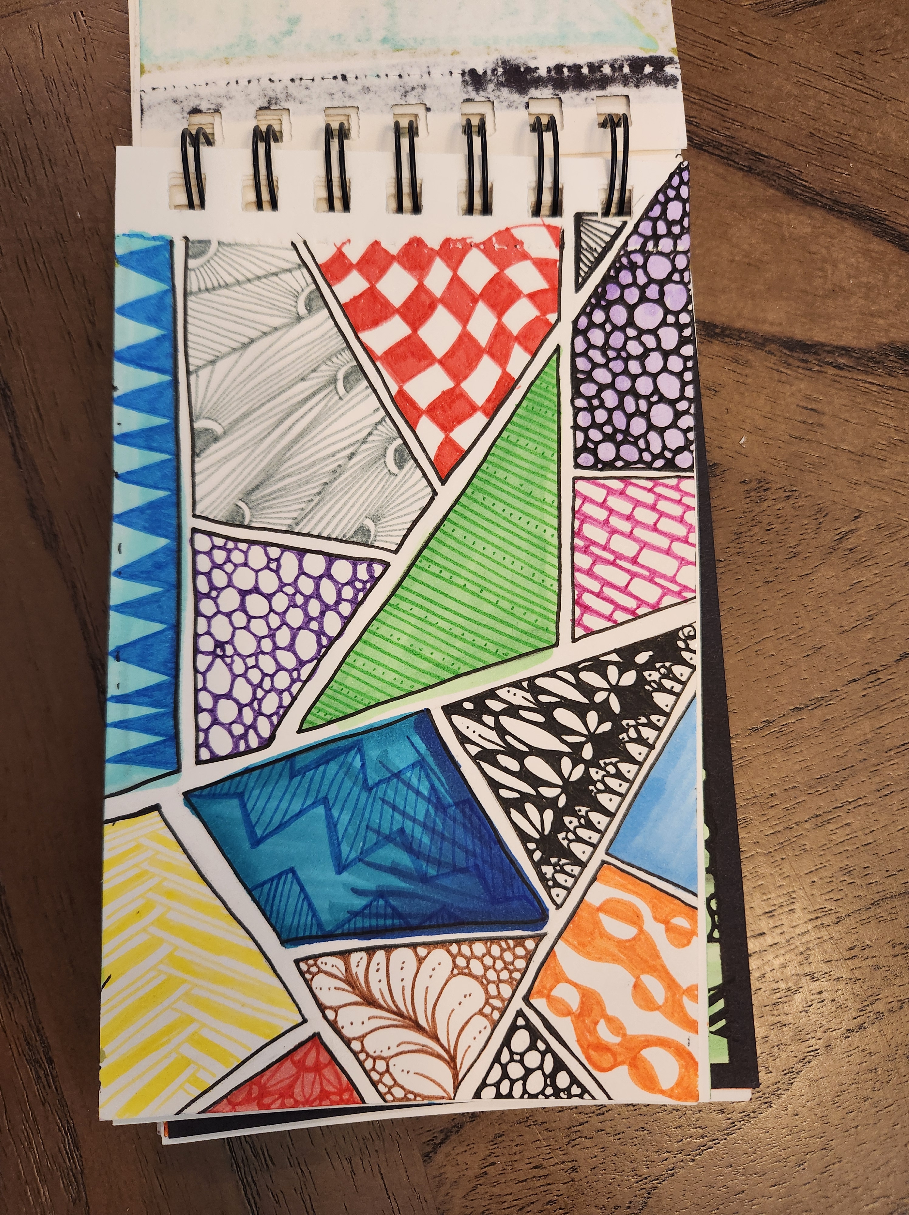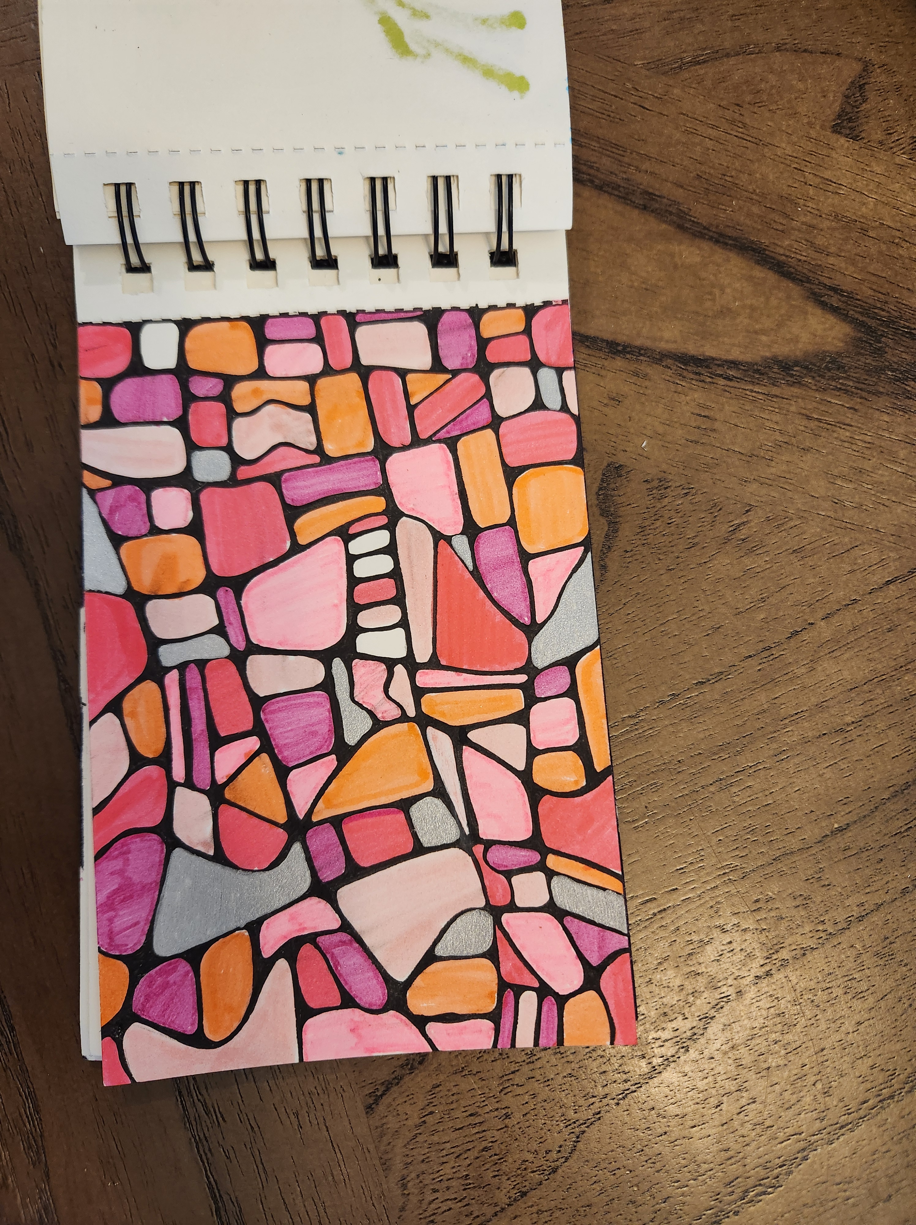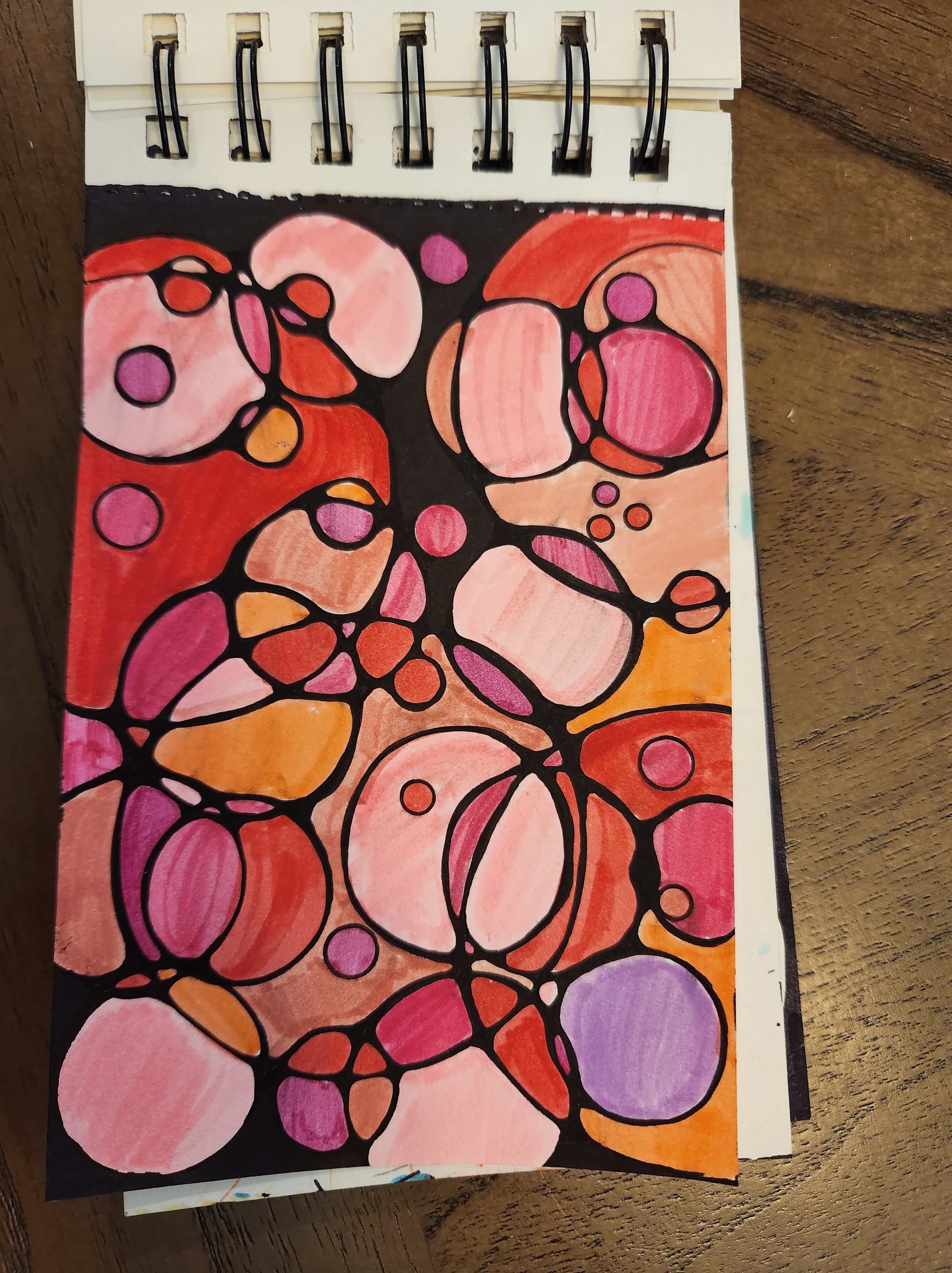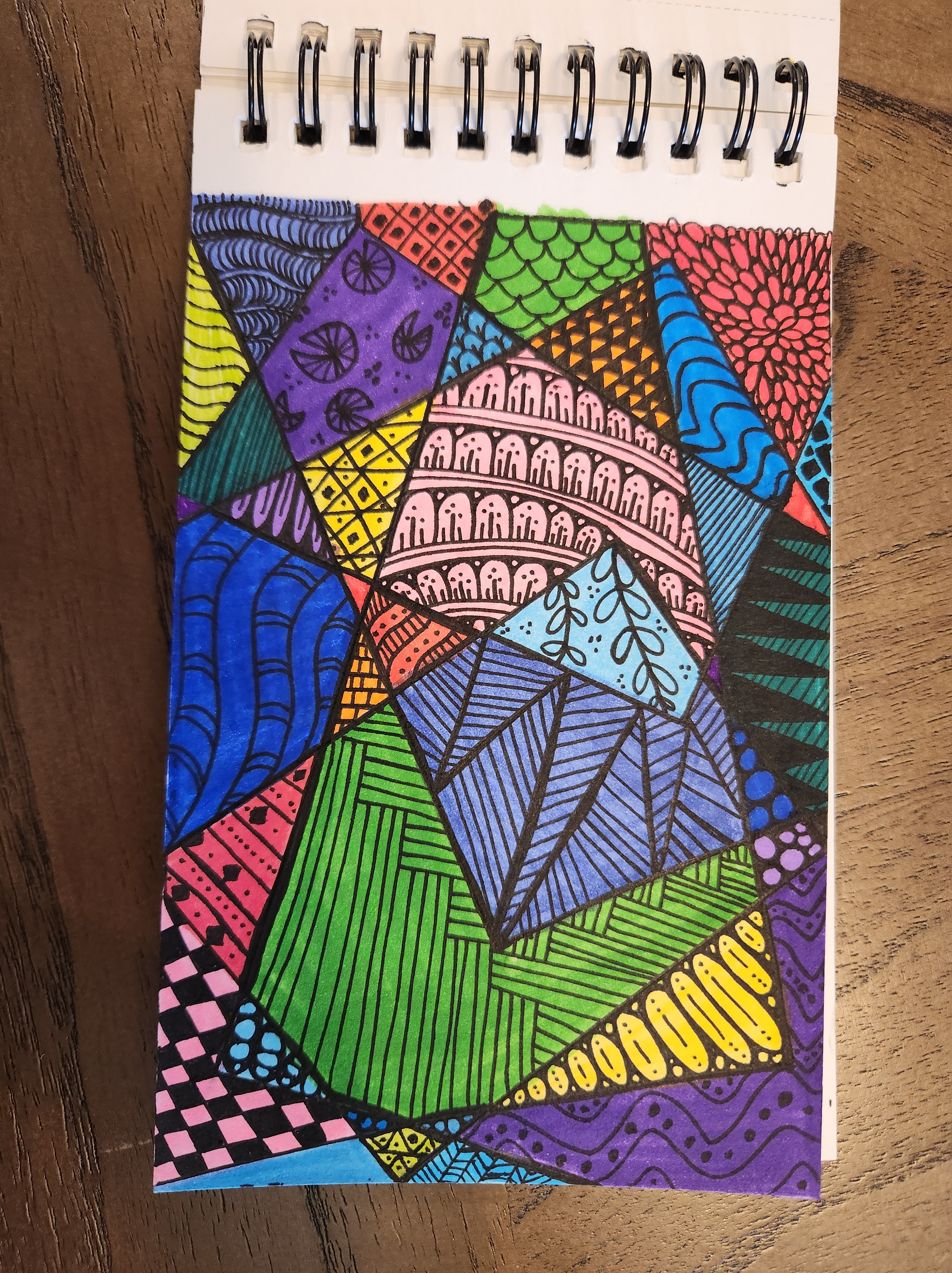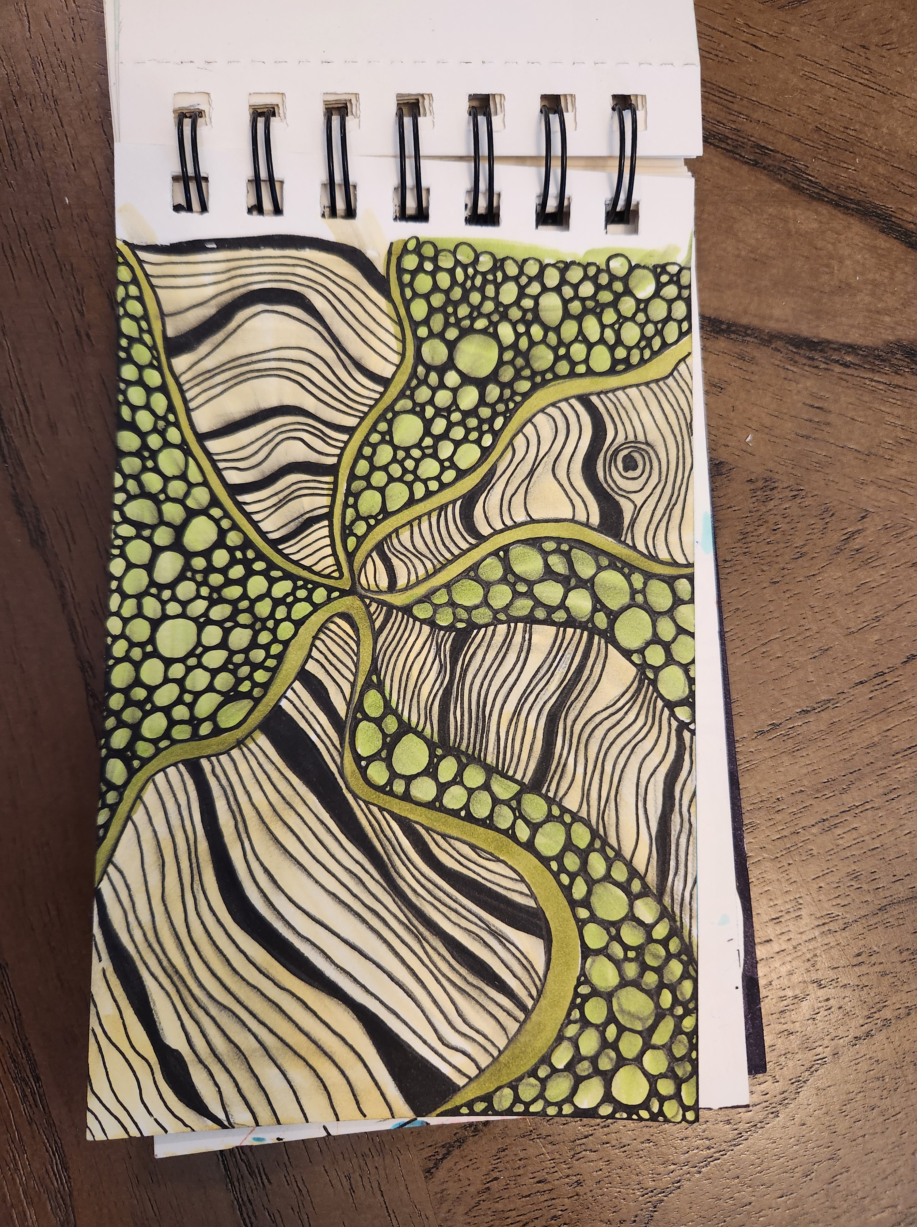It is a lot, a LOT of pictures. So I hope you’re ready for some serious zentangles. Lol. I do recommend those by the way, as they gave me kind of a free form space to start from. I also really like Tombow fudenosuke brush pens the best of everything I tried. I had a bunch of micron pens laying around so I used them at first, but I did change quickly.